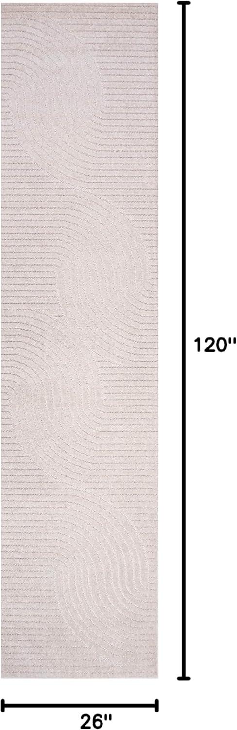 JONATHAN Y Hallie High-Low Curve Ivory/Cream Indoor/Outdoor Area Rug, 8×10, Minimalist, Pet Friendly, Non-Shedding, Stain Resistant, Hose-Washable for Backyard, Patio, Porch (SCN100B-8)(Beige/Cream)