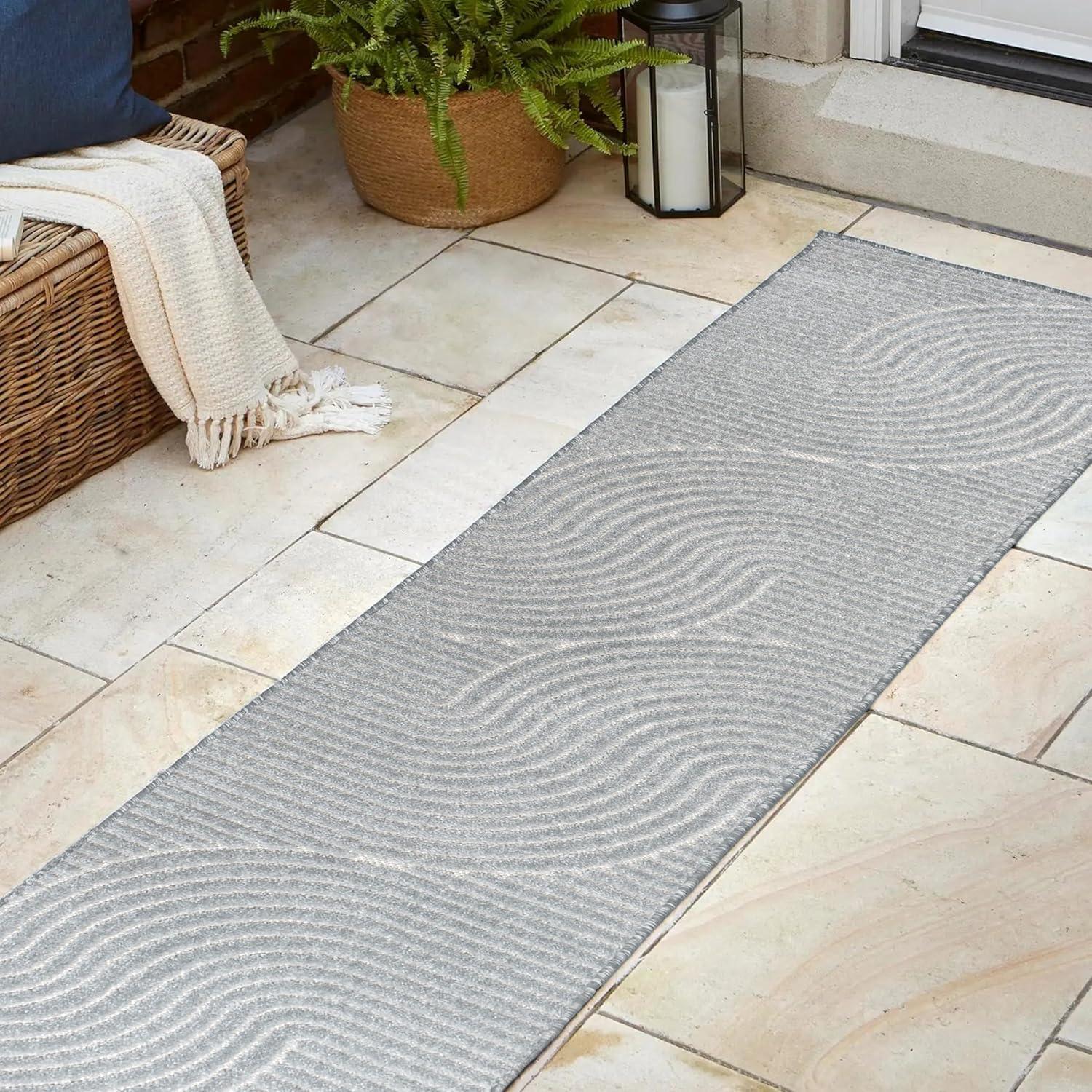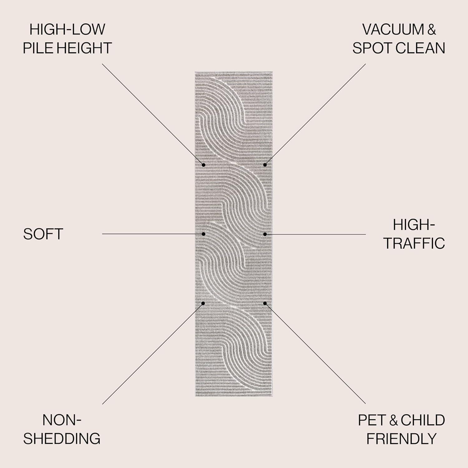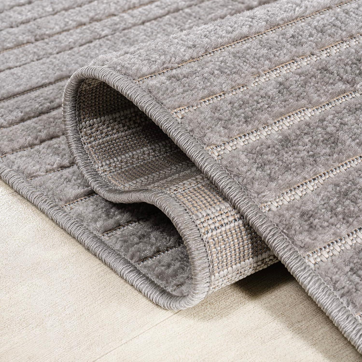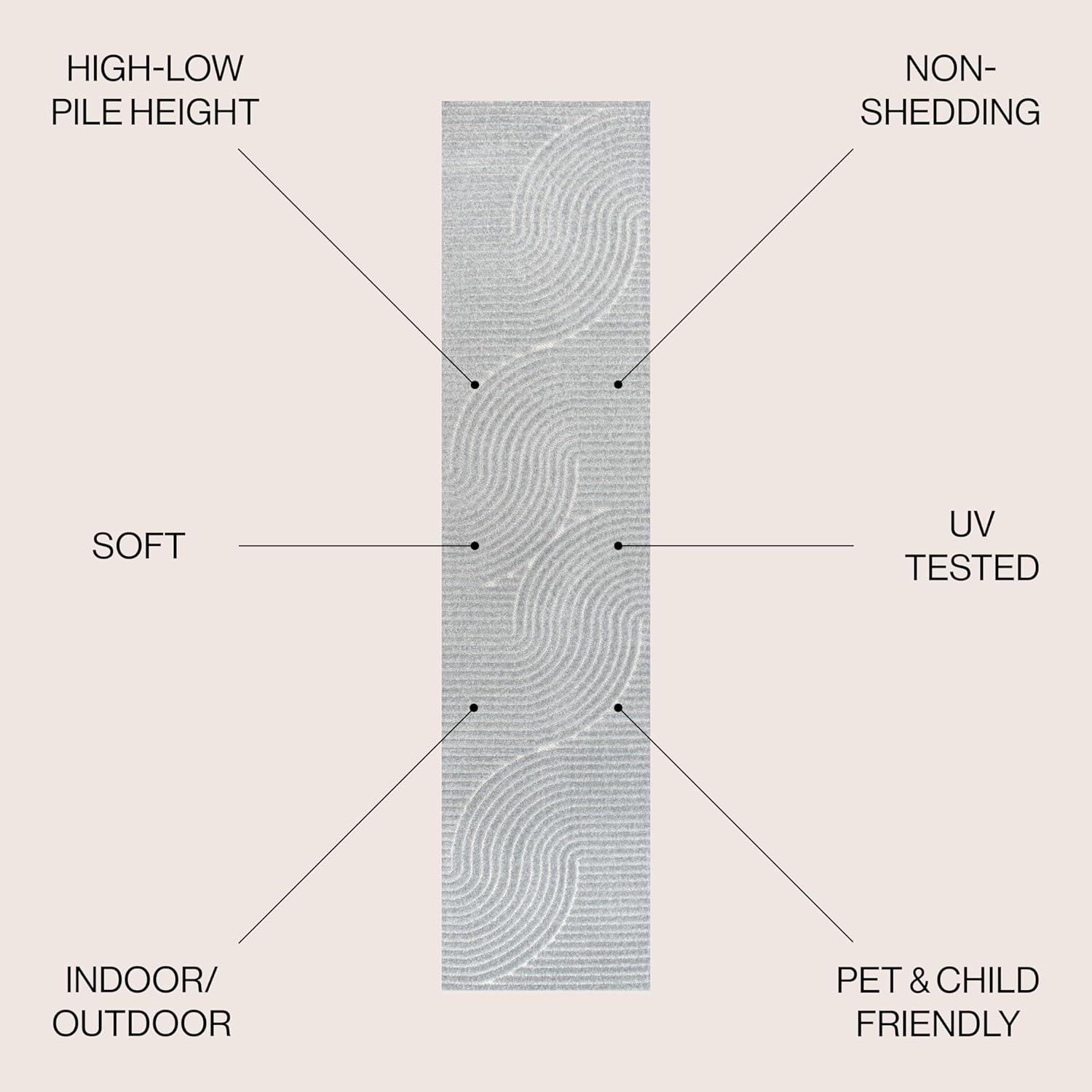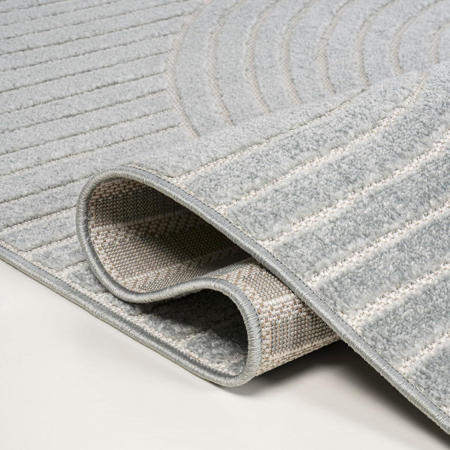 JONATHAN Y Hallie High-Low Curve Ivory/Cream Indoor/Outdoor Area Rug, 8×10, Minimalist, Pet Friendly, Non-Shedding, Stain Resistant, Hose-Washable for Backyard, Patio, Porch (SCN100B-8)(Gray/Ivory)