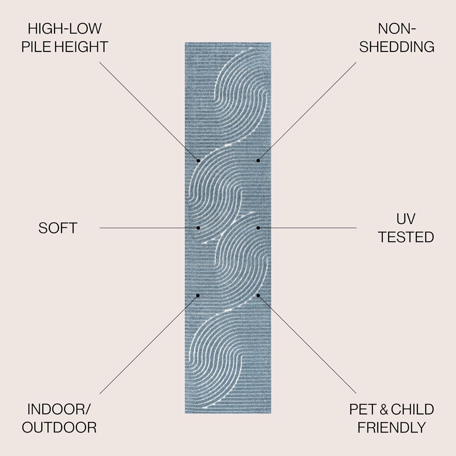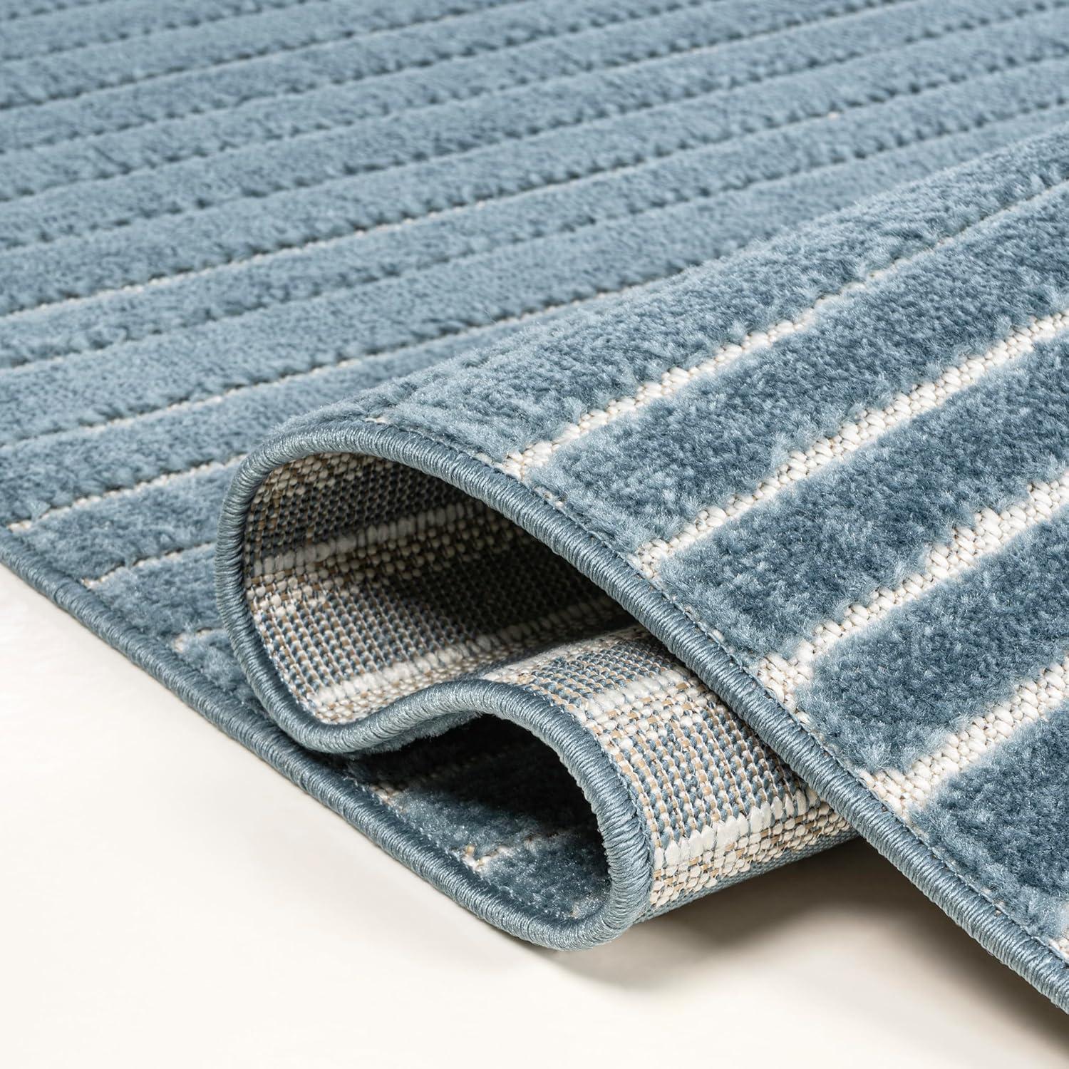 JONATHAN Y Hallie High-Low Curve Ivory/Cream Indoor/Outdoor Area Rug, 8×10, Minimalist, Pet Friendly, Non-Shedding, Stain Resistant, Hose-Washable for Backyard, Patio, Porch (SCN100B-8)(Light Blue/Cream)