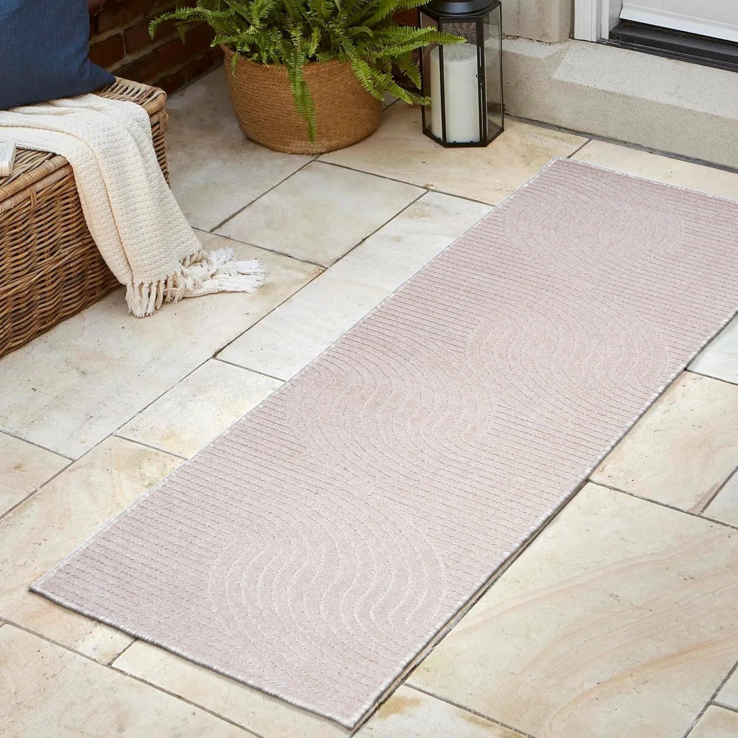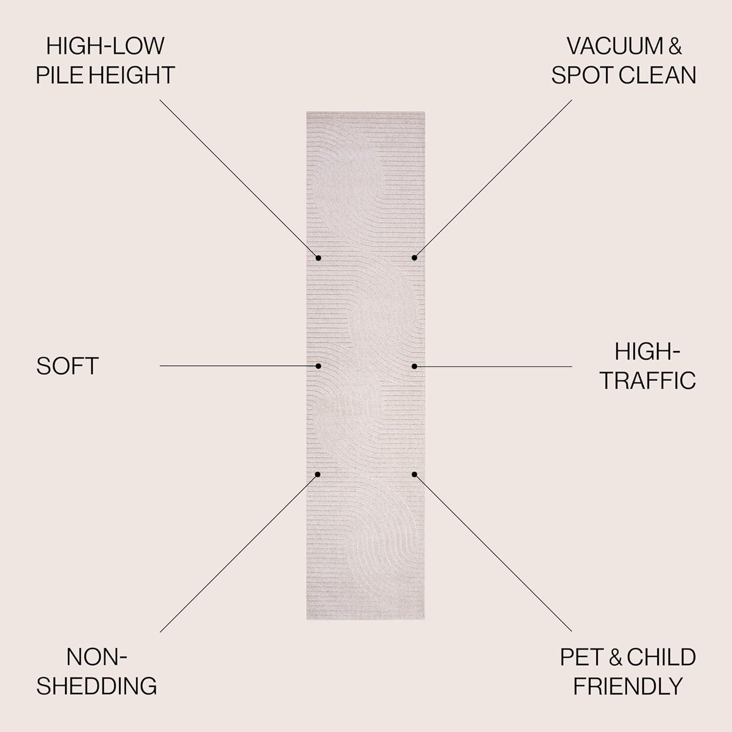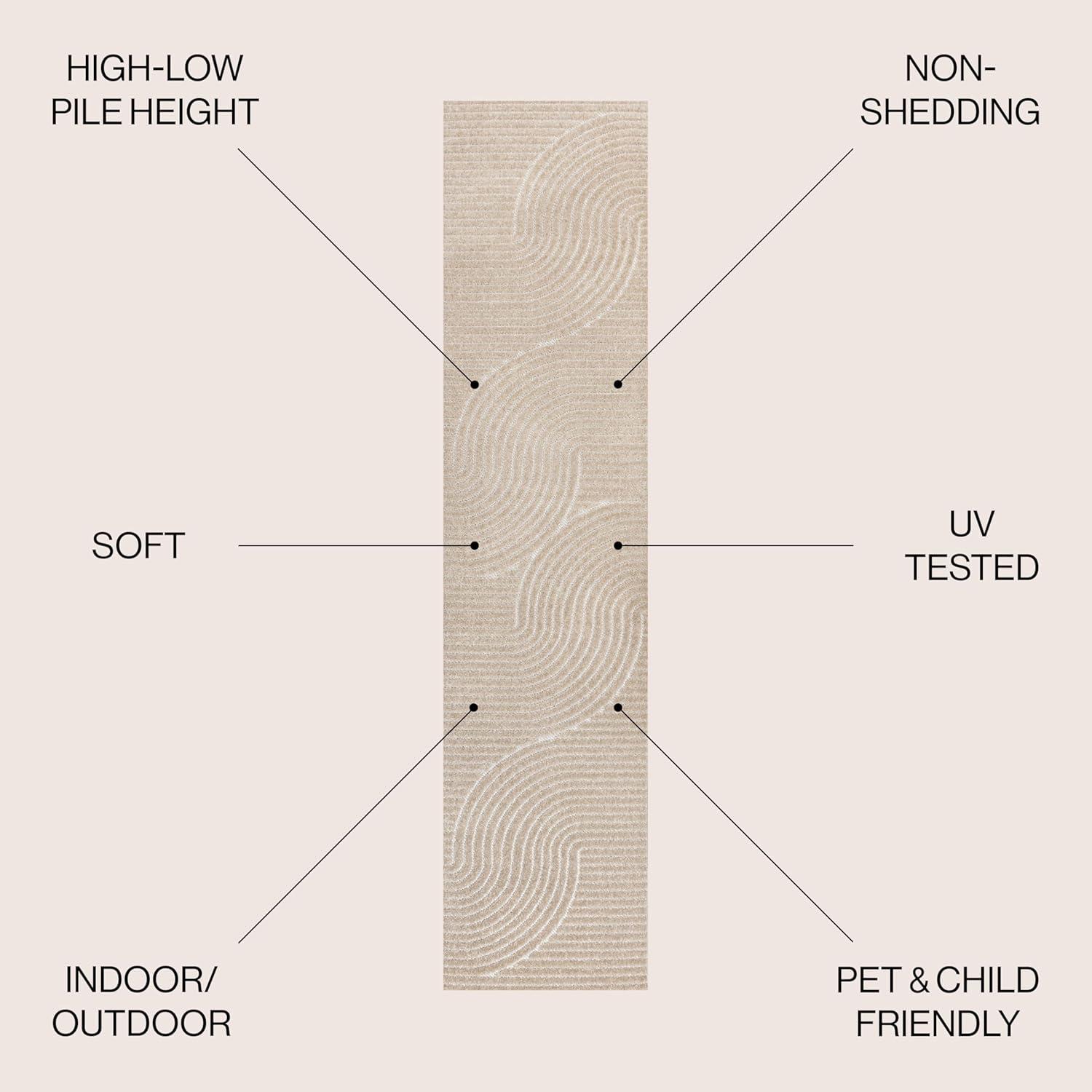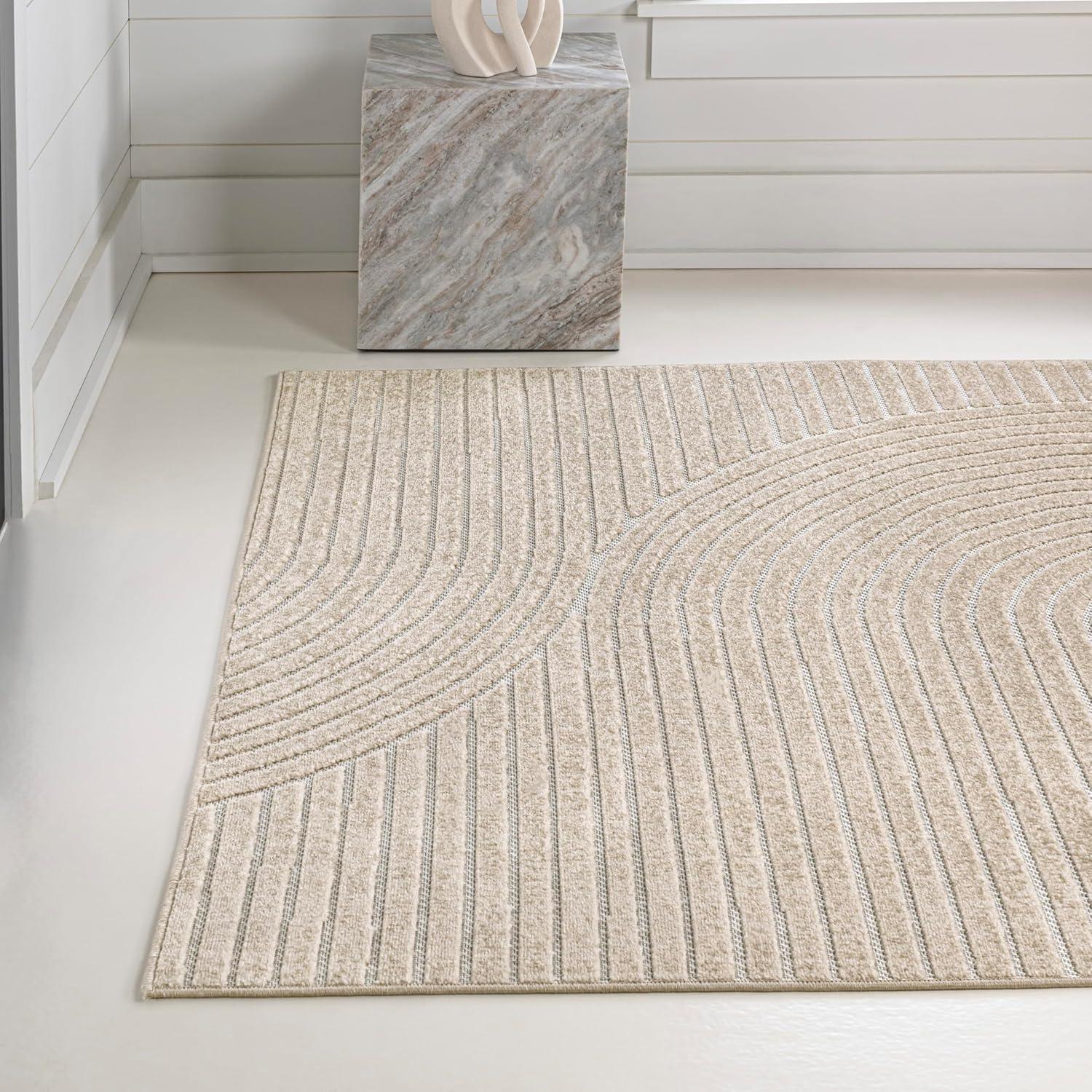 JONATHAN Y Hallie High-Low Curve Ivory/Cream Indoor/Outdoor Area Rug, 8×10, Minimalist, Pet Friendly, Non-Shedding, Stain Resistant, Hose-Washable for Backyard, Patio, Porch (SCN100B-8)(Ivory/Cream)