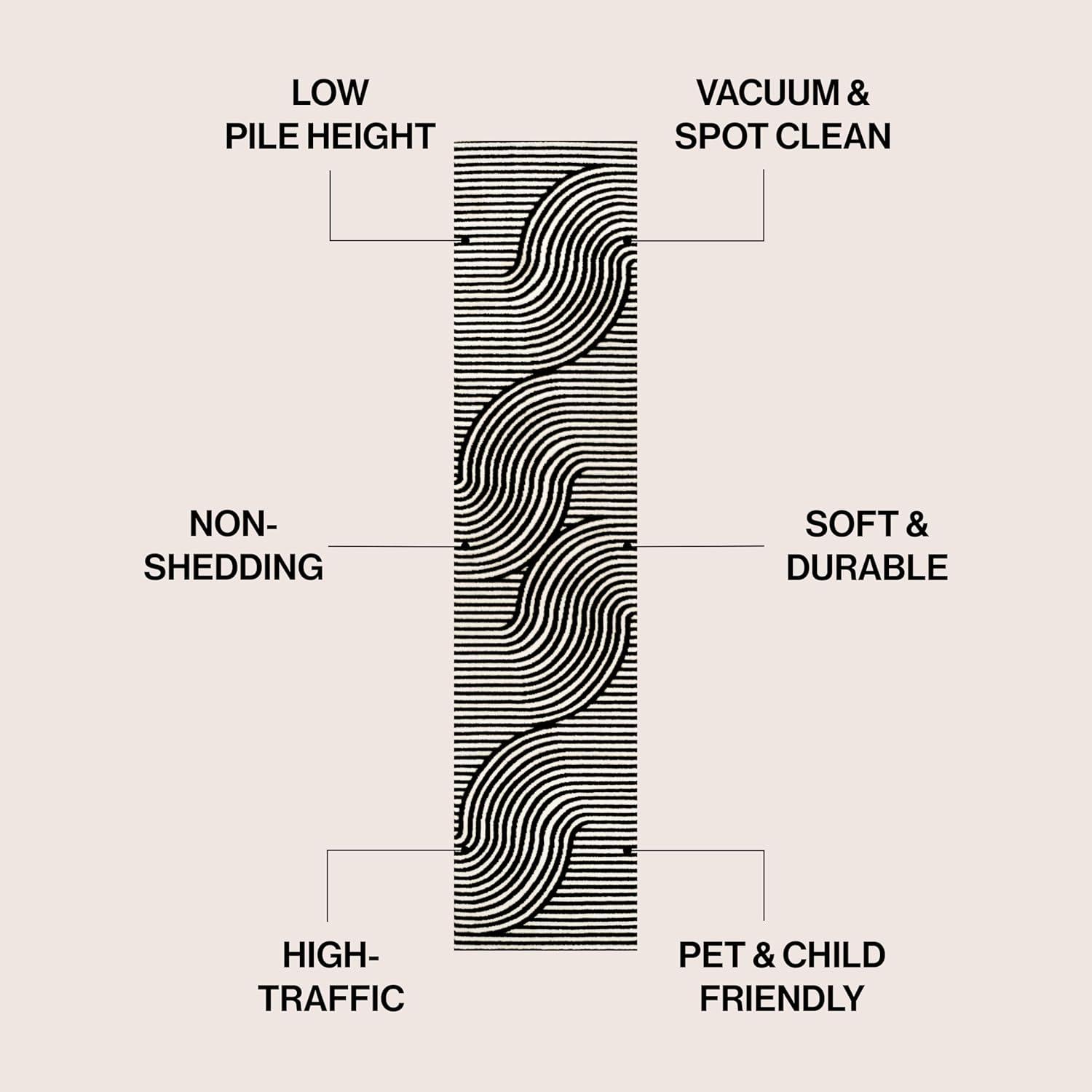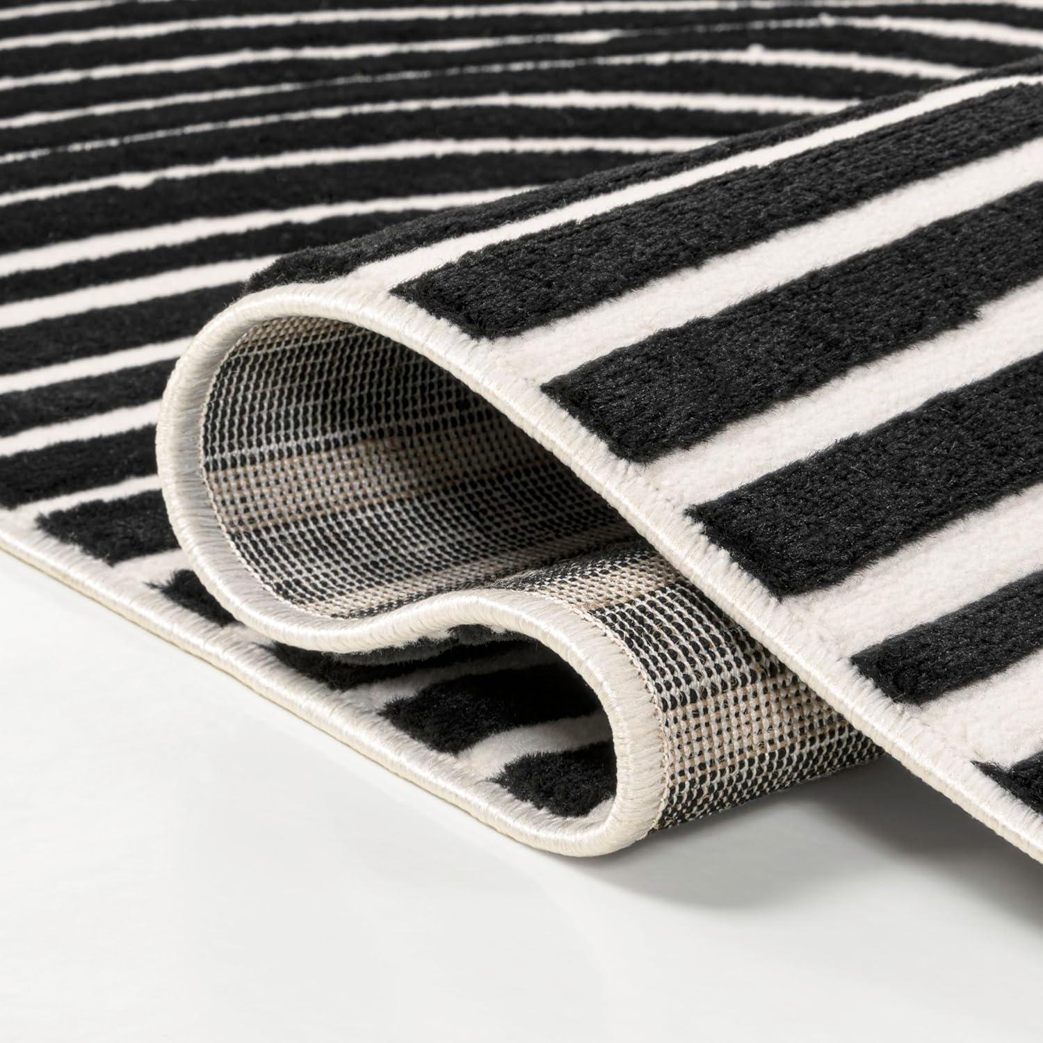 JONATHAN Y Hallie High-Low Curve Ivory/Cream Indoor/Outdoor Area Rug, 8×10, Minimalist, Pet Friendly, Non-Shedding, Stain Resistant, Hose-Washable for Backyard, Patio, Porch (SCN100B-8)(Black/White)