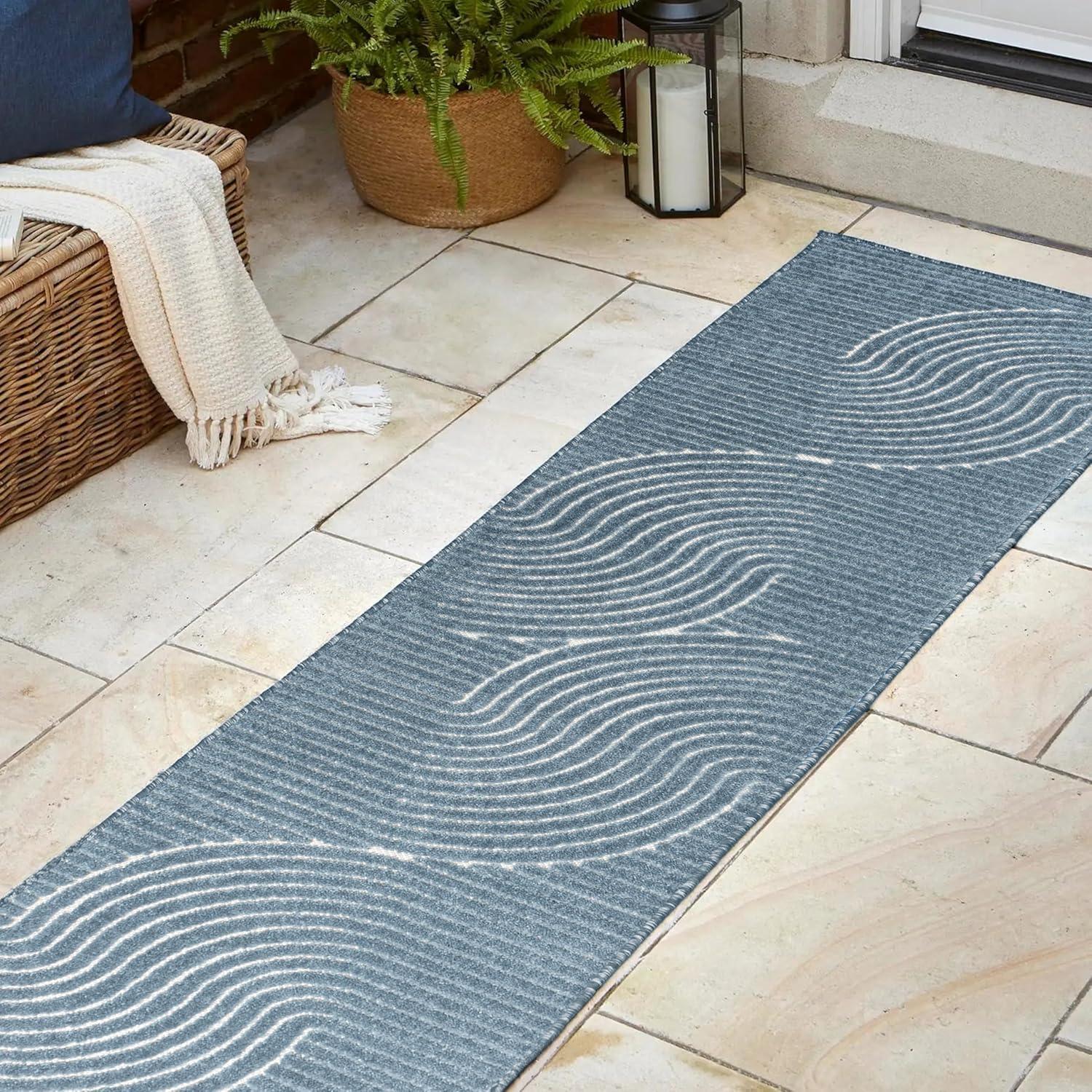 JONATHAN Y Hallie High-Low Curve Ivory/Cream Indoor/Outdoor Area Rug, 8×10, Minimalist, Pet Friendly, Non-Shedding, Stain Resistant, Hose-Washable for Backyard, Patio, Porch (SCN100B-8)(Dark Blue/Cream)