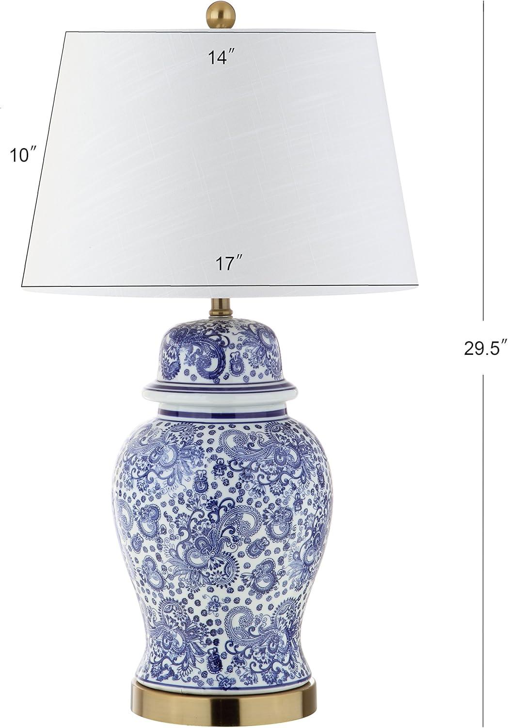 JONATHAN Y JYL3008A Ellis 29.5″ Ceramic LED Table Lamp Traditional Bedside Desk Nightstand Lamp for Bedroom Living Room Office College Bookcase LED Bulb Included, Blue/White