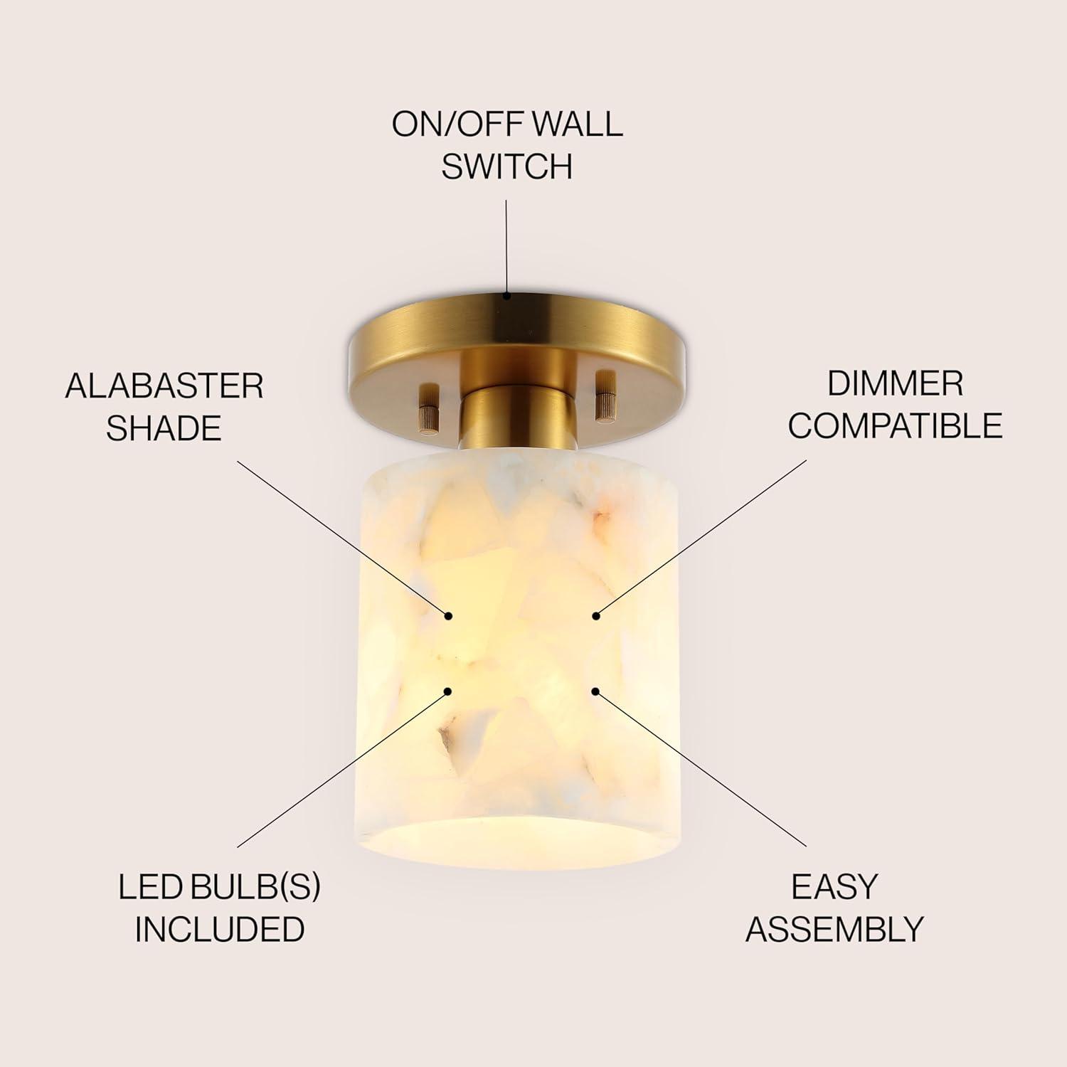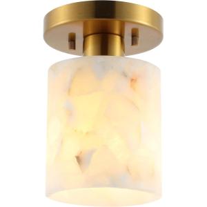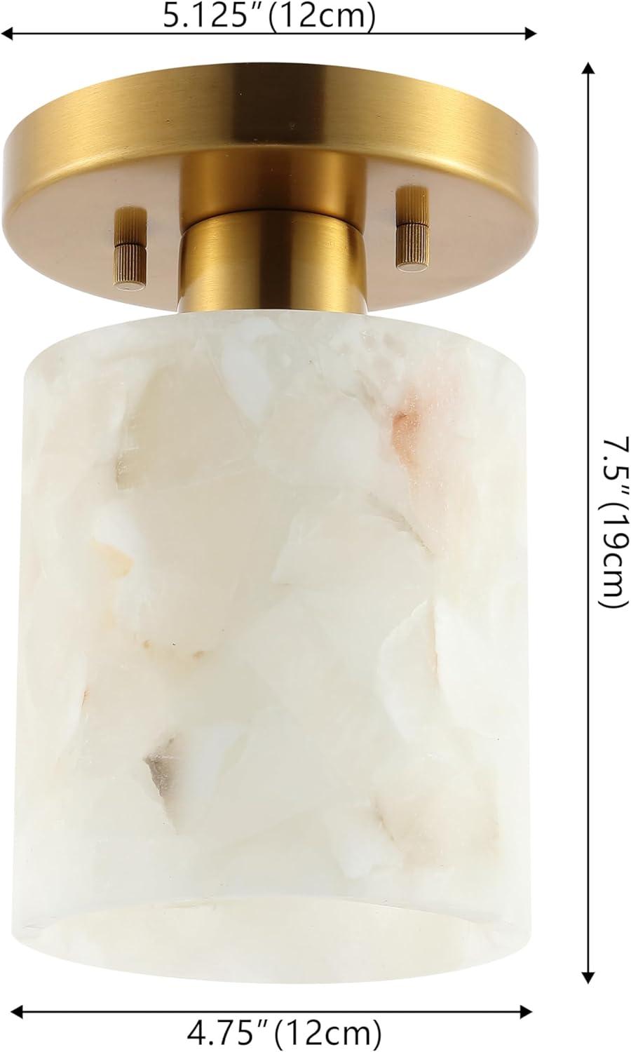 JONATHAN Y JYL1206A Jules 5.13″ 1-Light Modern Contemporary Alabaster/Iron Cylinder LED Semi Flush Mount, White Marbling/Brass Gold for Hallway, Bedroom, Bathroom and Closet