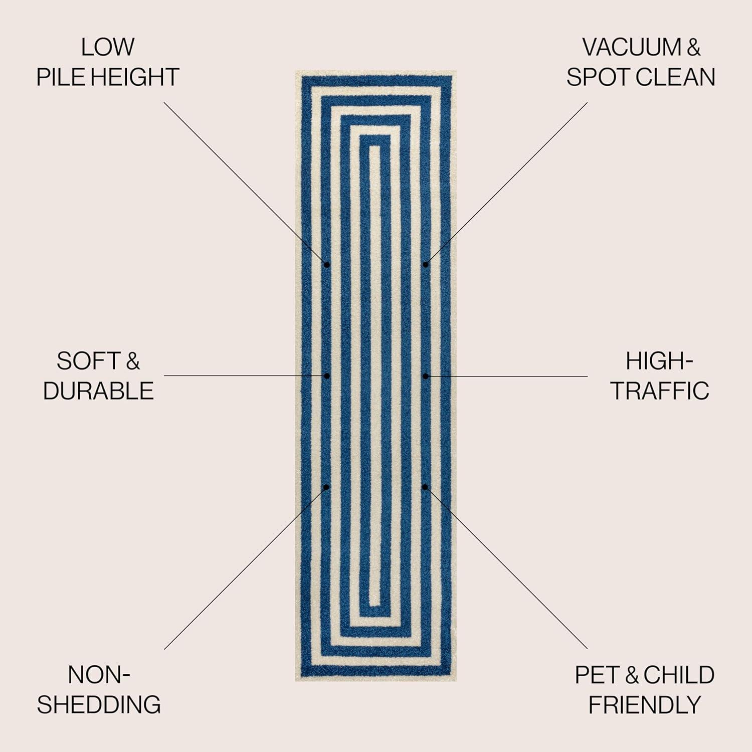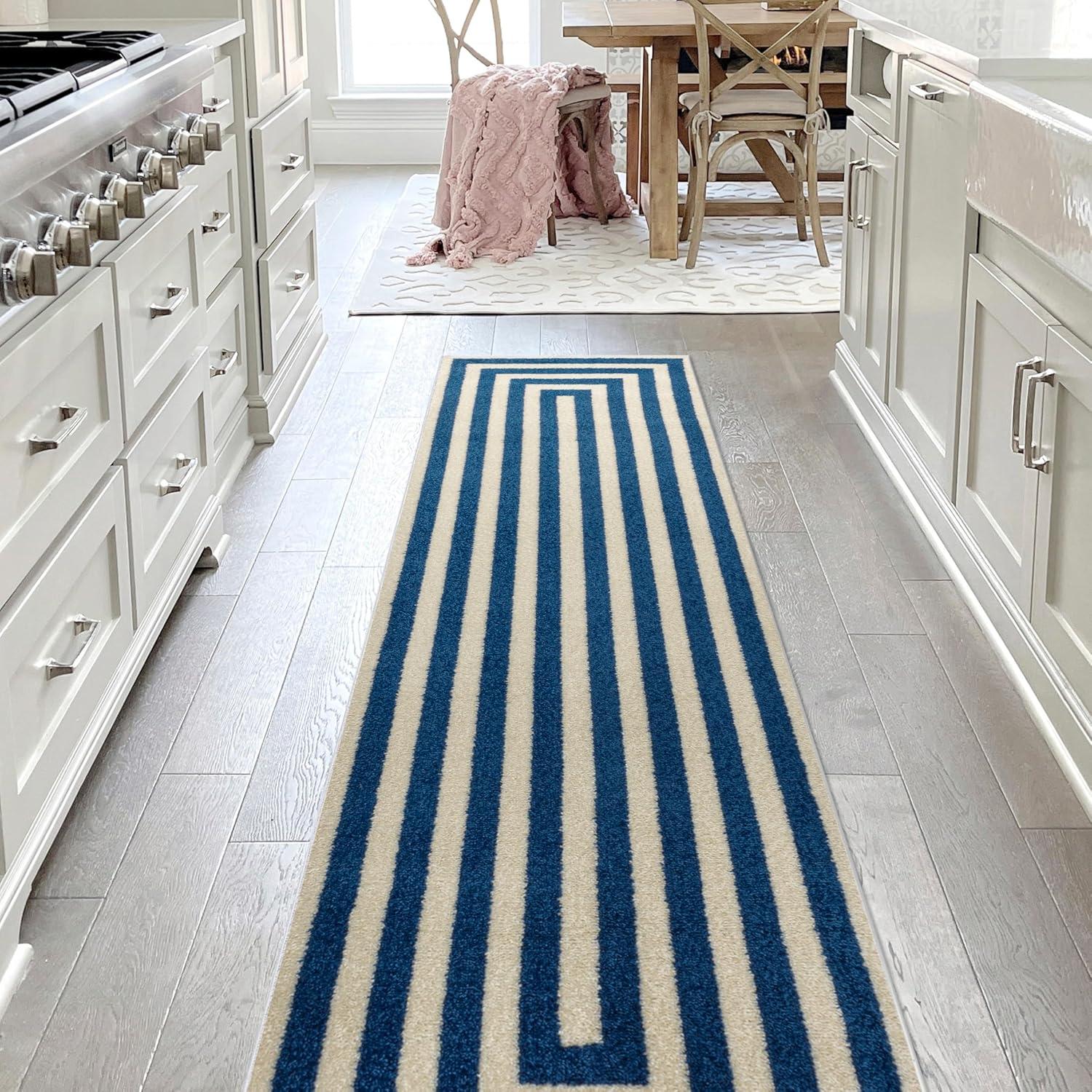 JONATHAN Y Bandol Mitre Stripe Brown/Ivory Indoor Area Rug, 8×10, Modern, Classic, Geometric, Easy-Cleaning for Living Room, Bedroom, Kitchen, Pet Friendly, Non-Shedding (MOH211A-8)(Navy/Ivory)