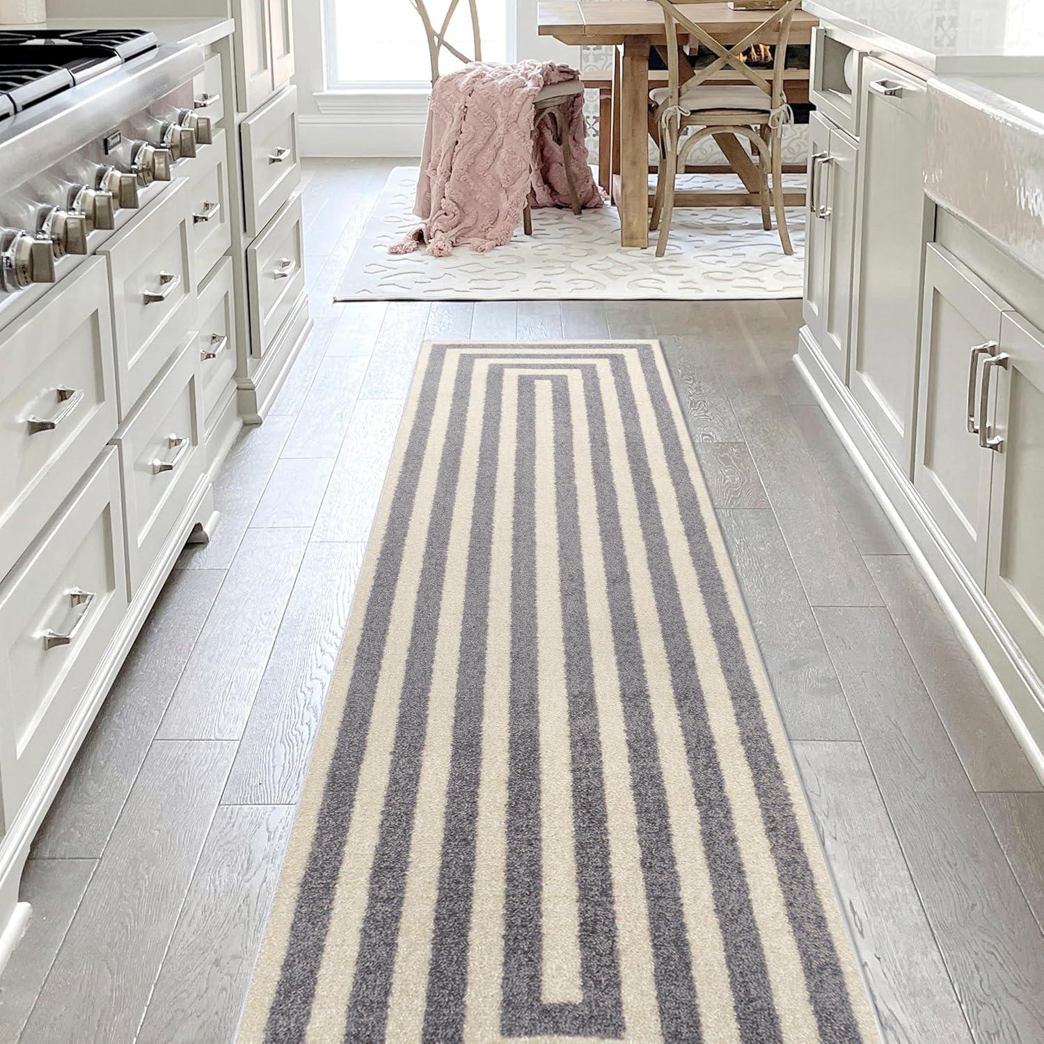 JONATHAN Y Bandol Mitre Stripe Brown/Ivory Indoor Area Rug, 8×10, Modern, Classic, Geometric, Easy-Cleaning for Living Room, Bedroom, Kitchen, Pet Friendly, Non-Shedding (MOH211A-8)(Gray/Ivory)
