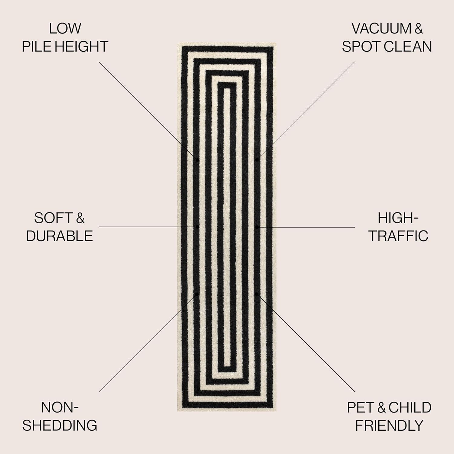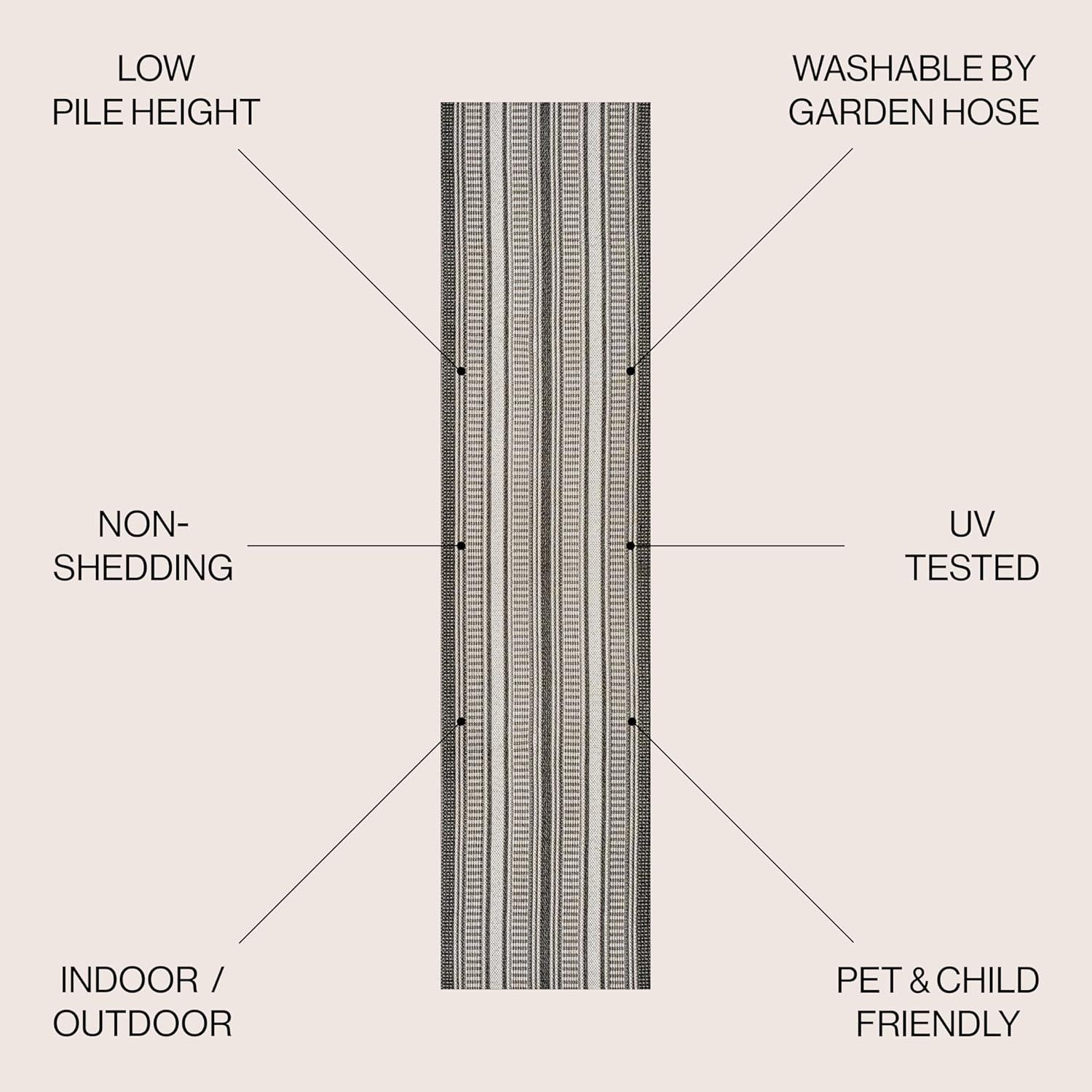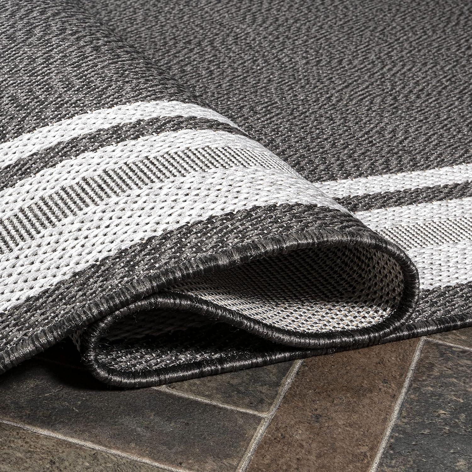 JONATHAN Y Double Stripe Indoor Outdoor Area Rug 8X10 Orange/Cream, Haynes Modern for Backyard, Patio, Porch, Easy-Cleaning, High Traffic, Pet-Friendly, Non-Shedding (SMB202C-8)(Black/Cream)