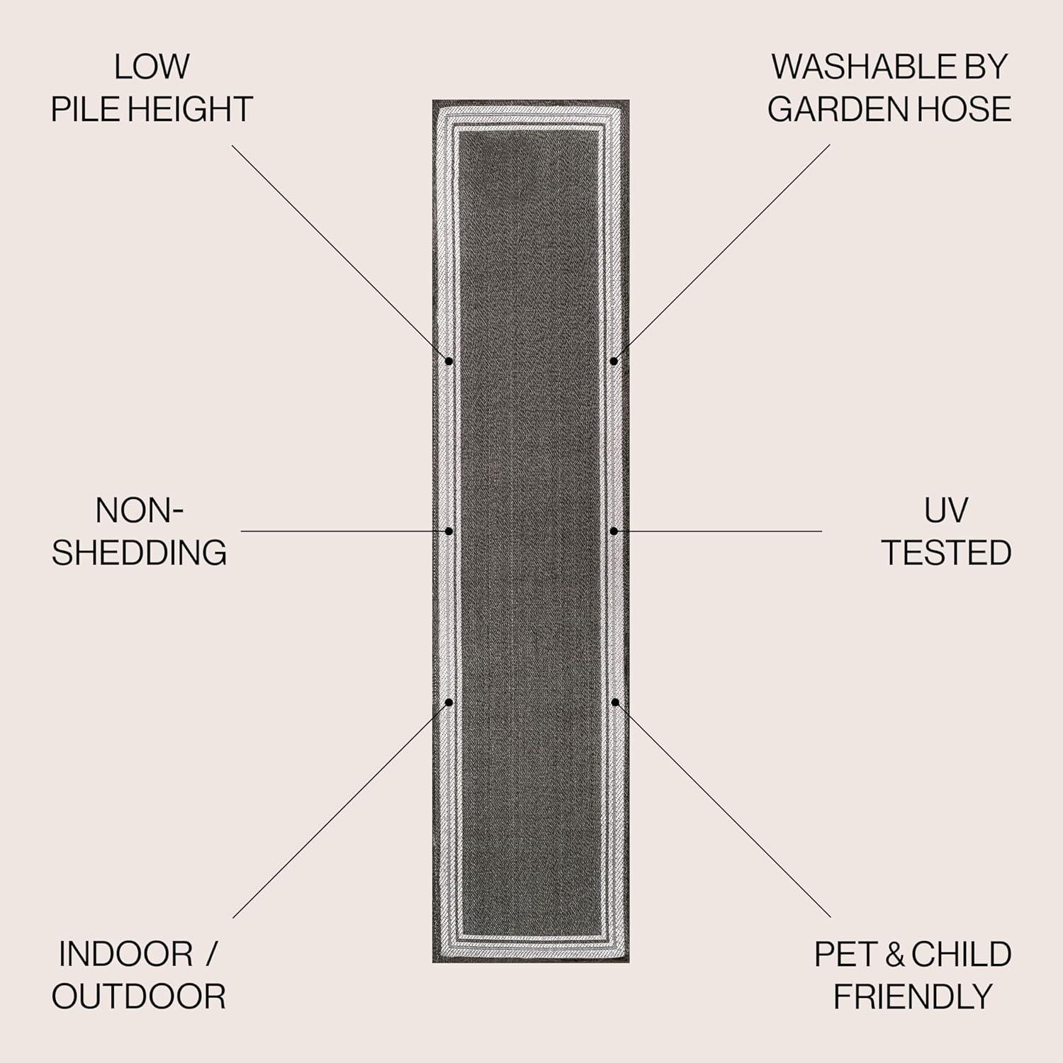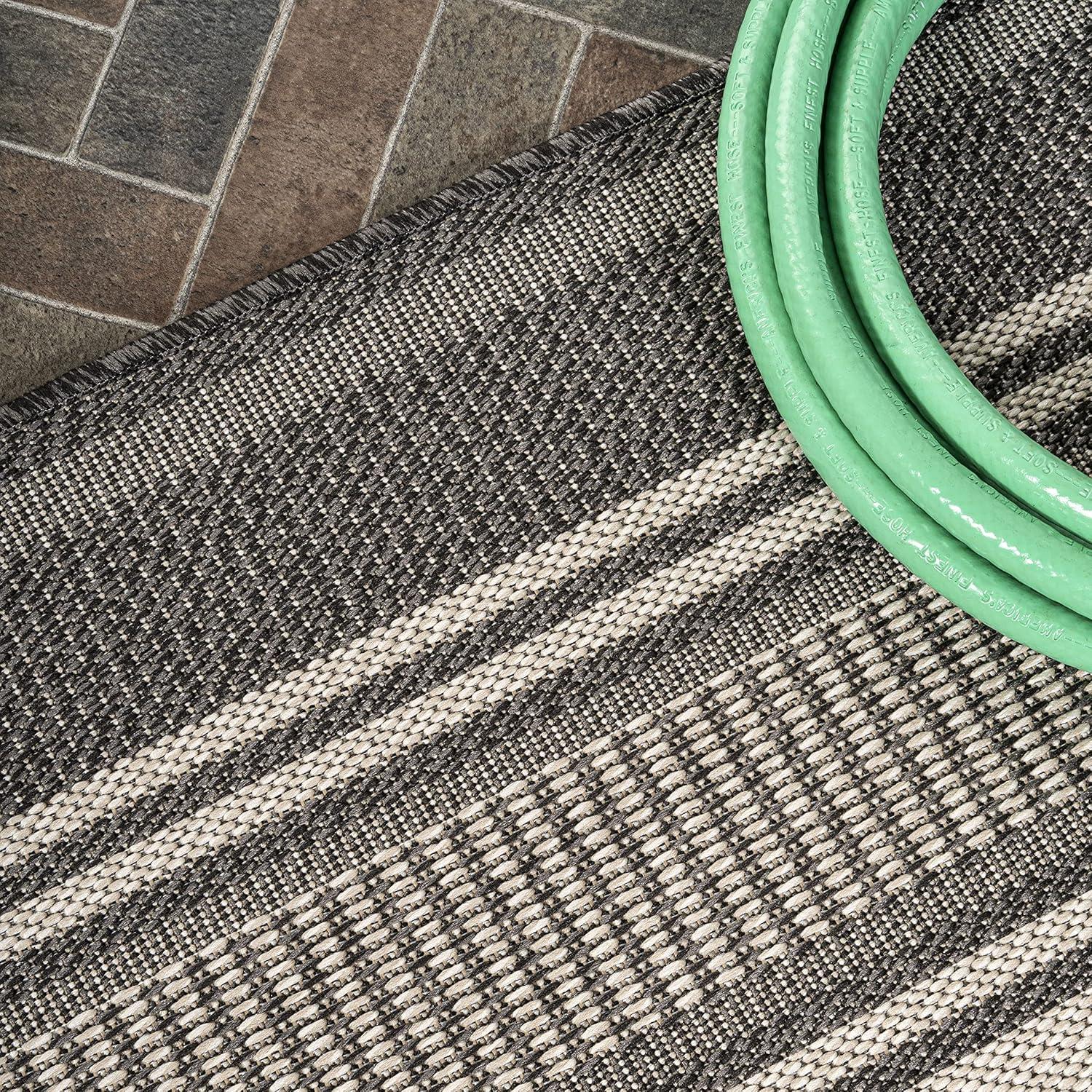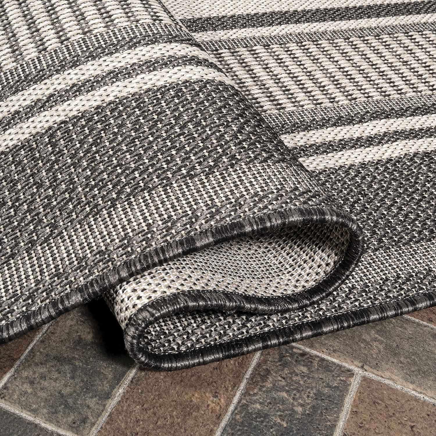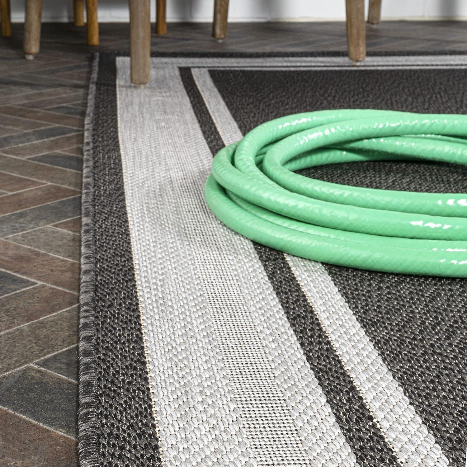 JONATHAN Y Border Stripe Indoor Outdoor Area Rug 8X10 Orange/Dark Gray, James Modern for Backyard, Patio, Porch, Easy-Cleaning, High Traffic, Pet-Friendly, Non-Shedding (SMB201A-8)(Black/Cream)
