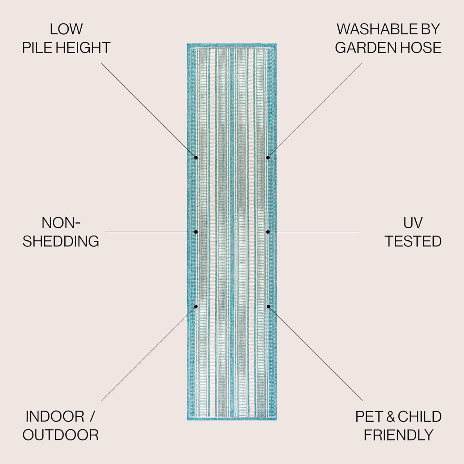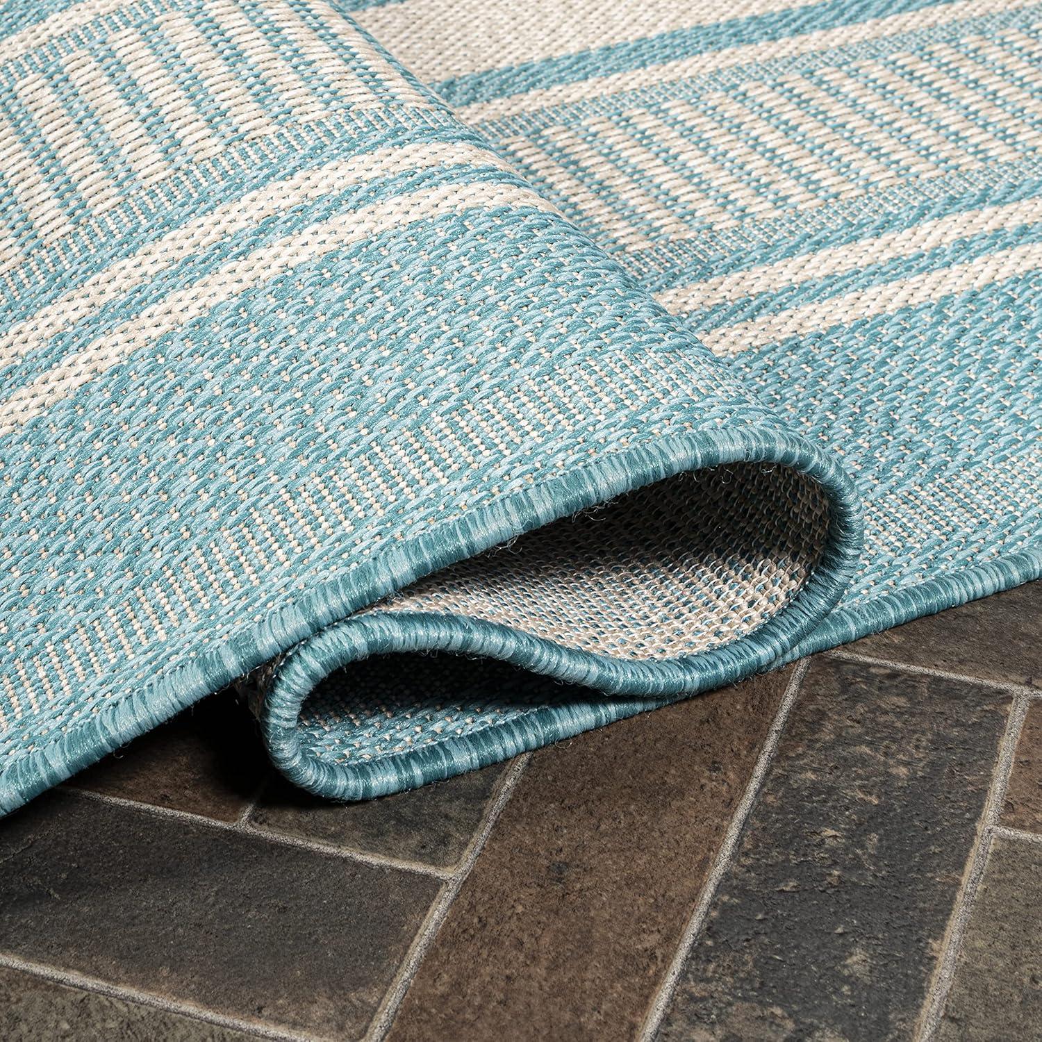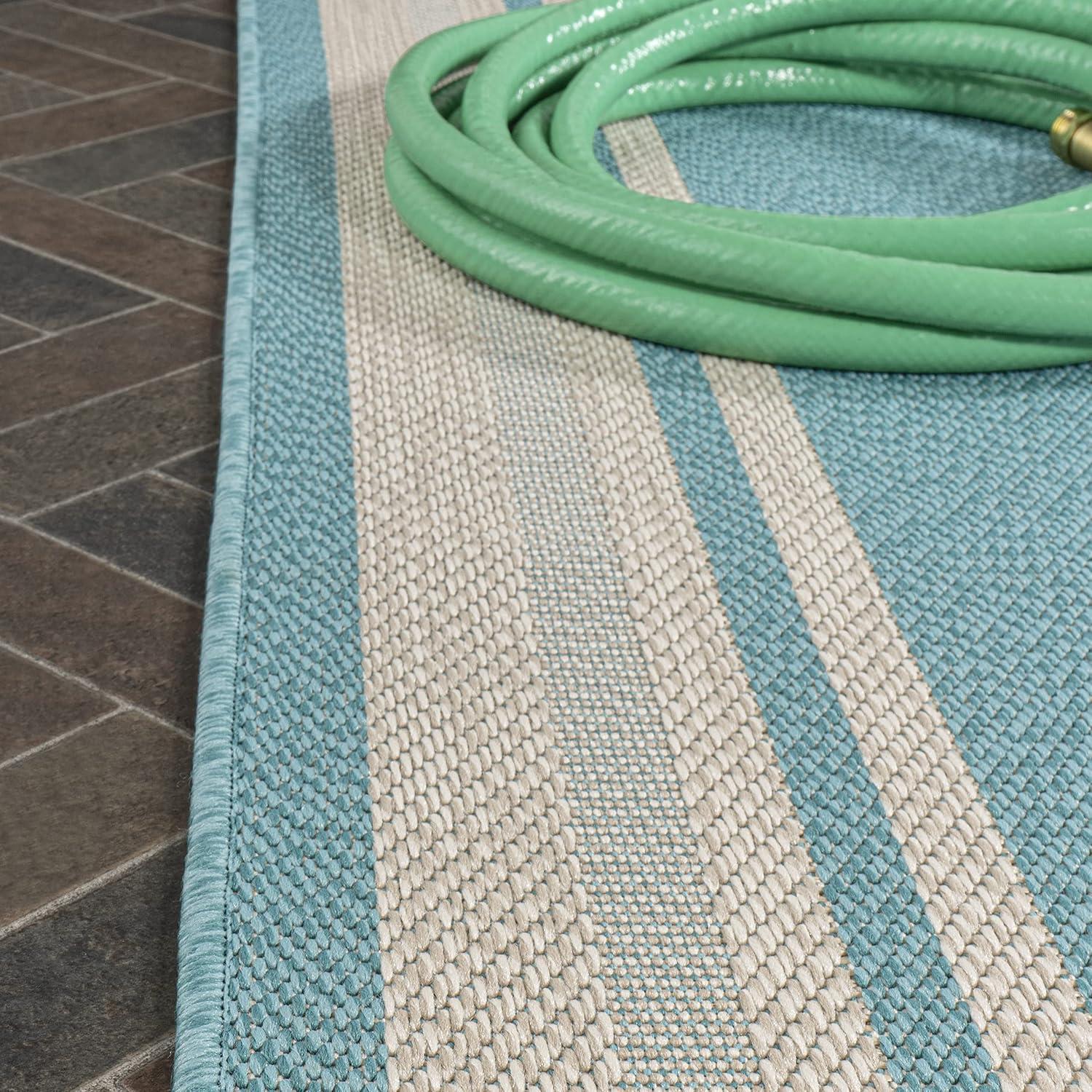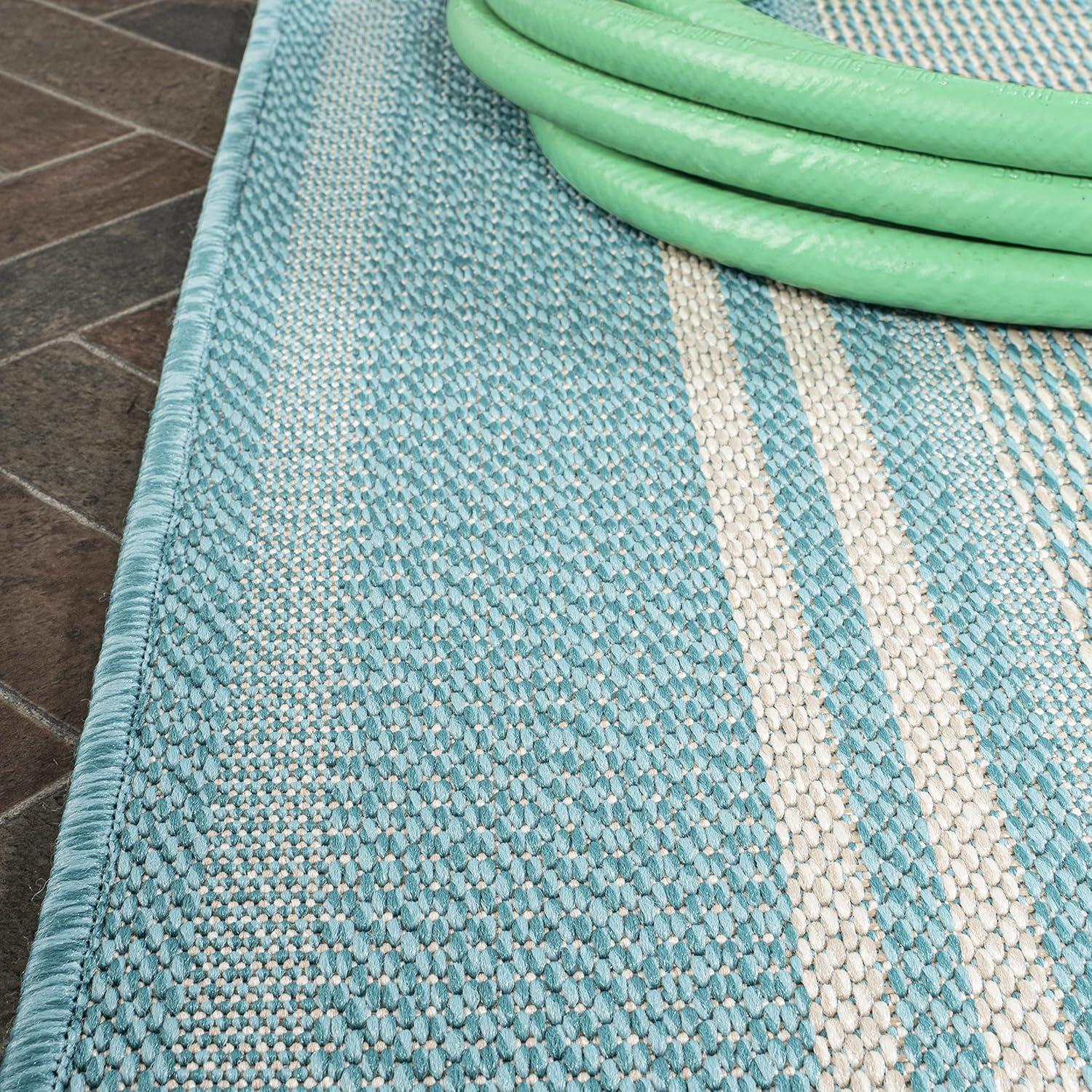 JONATHAN Y Double Stripe Indoor Outdoor Area Rug 8X10 Orange/Cream, Haynes Modern for Backyard, Patio, Porch, Easy-Cleaning, High Traffic, Pet-Friendly, Non-Shedding (SMB202C-8)(Aqua/Beige)