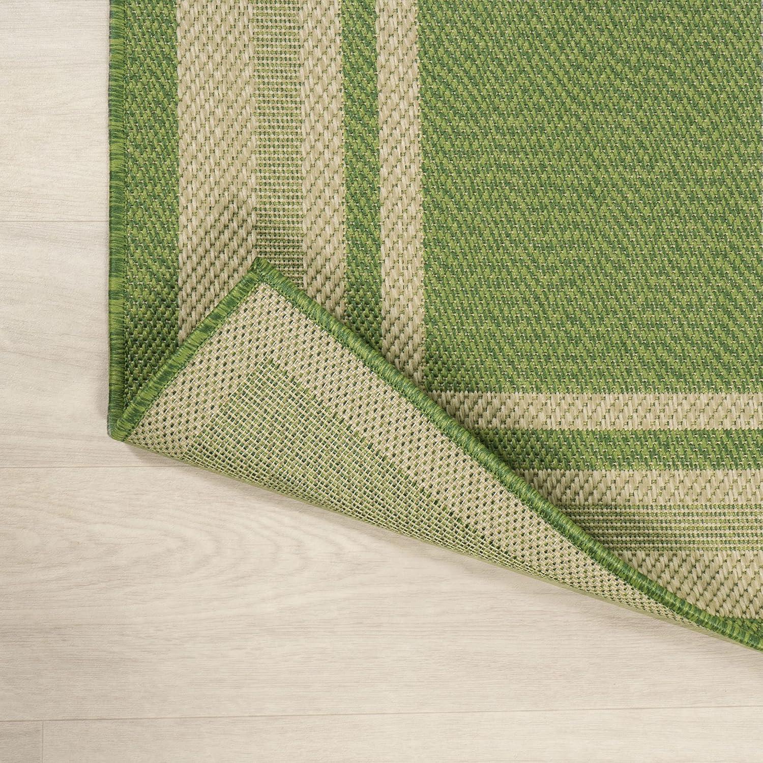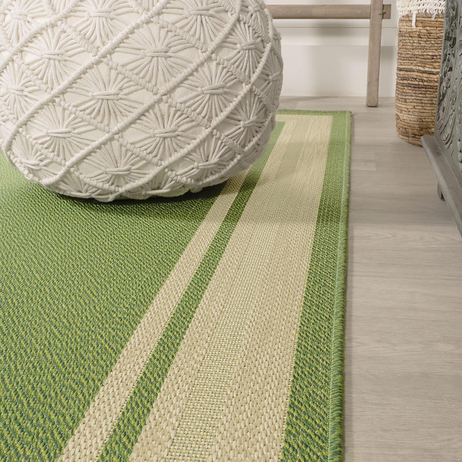 JONATHAN Y Border Stripe Indoor Outdoor Area Rug 8X10 Orange/Dark Gray, James Modern for Backyard, Patio, Porch, Easy-Cleaning, High Traffic, Pet-Friendly, Non-Shedding (SMB201A-8)(Green/Cream)