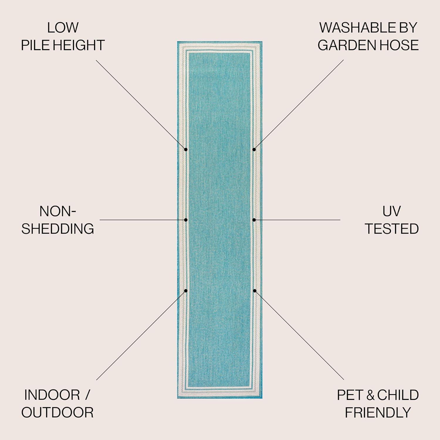 JONATHAN Y Border Stripe Indoor Outdoor Area Rug 8X10 Orange/Dark Gray, James Modern for Backyard, Patio, Porch, Easy-Cleaning, High Traffic, Pet-Friendly, Non-Shedding (SMB201A-8)(Aqua/Beige)