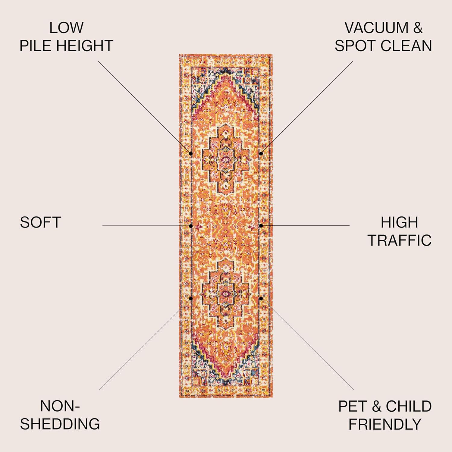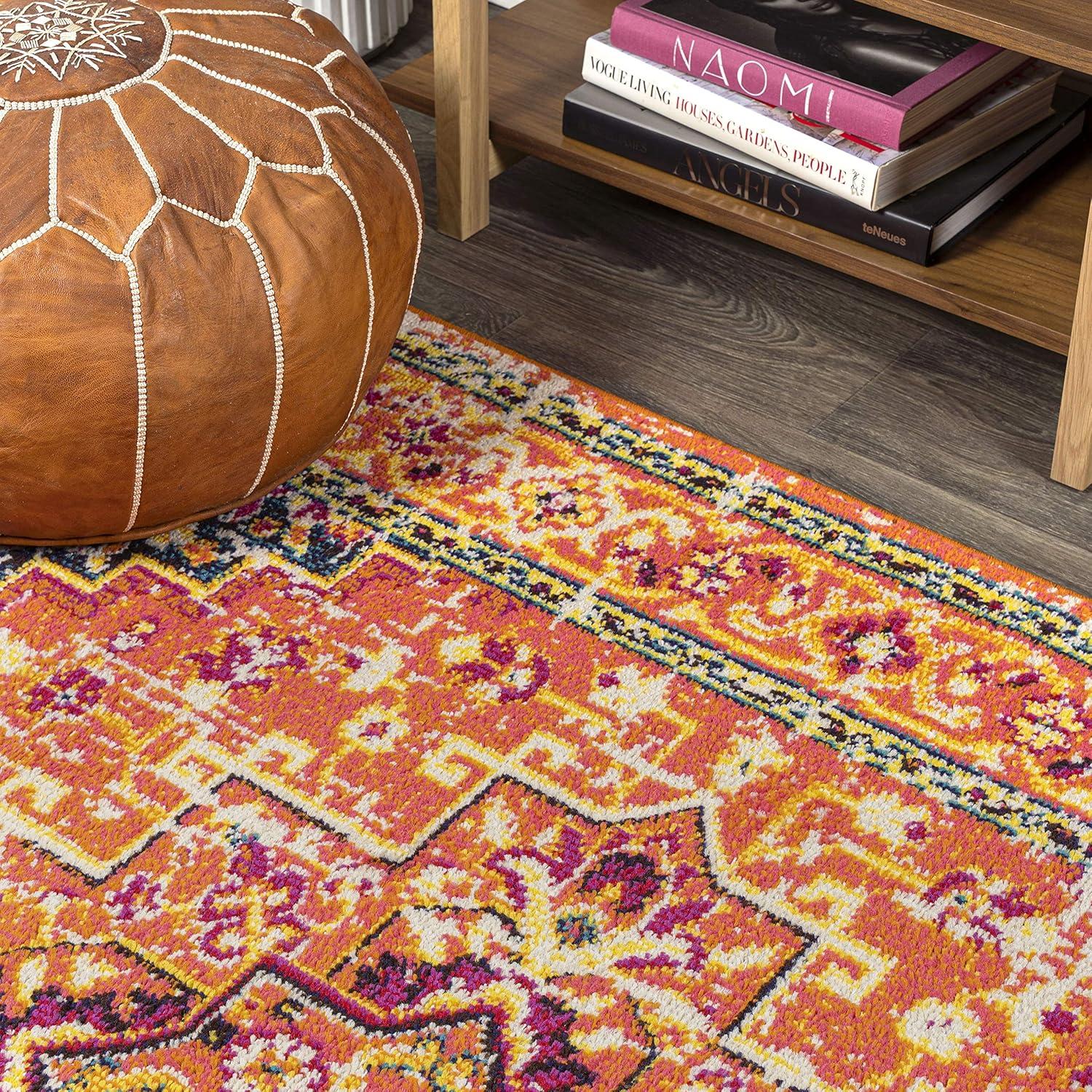JONATHAN Y Brooklyn Geometric Medallion Orange/Blue Indoor Area Rug, 8×10, Vintage, Bohemian, Easy-Cleaning for Living Room, Bedroom, Kitchen, Pet Friendly, Non-Shedding (MDP207D-8)(Orange)