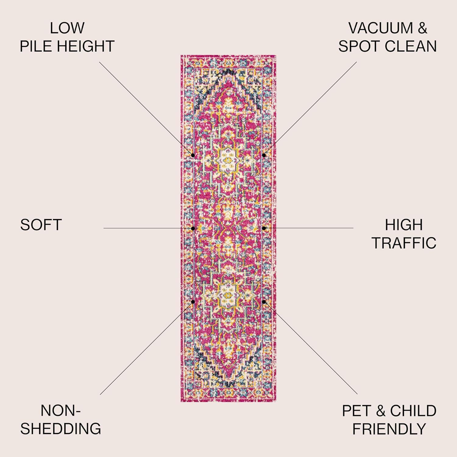 JONATHAN Y Brooklyn Geometric Medallion Orange/Blue Indoor Area Rug, 8×10, Vintage, Bohemian, Easy-Cleaning for Living Room, Bedroom, Kitchen, Pet Friendly, Non-Shedding (MDP207D-8)(Red)