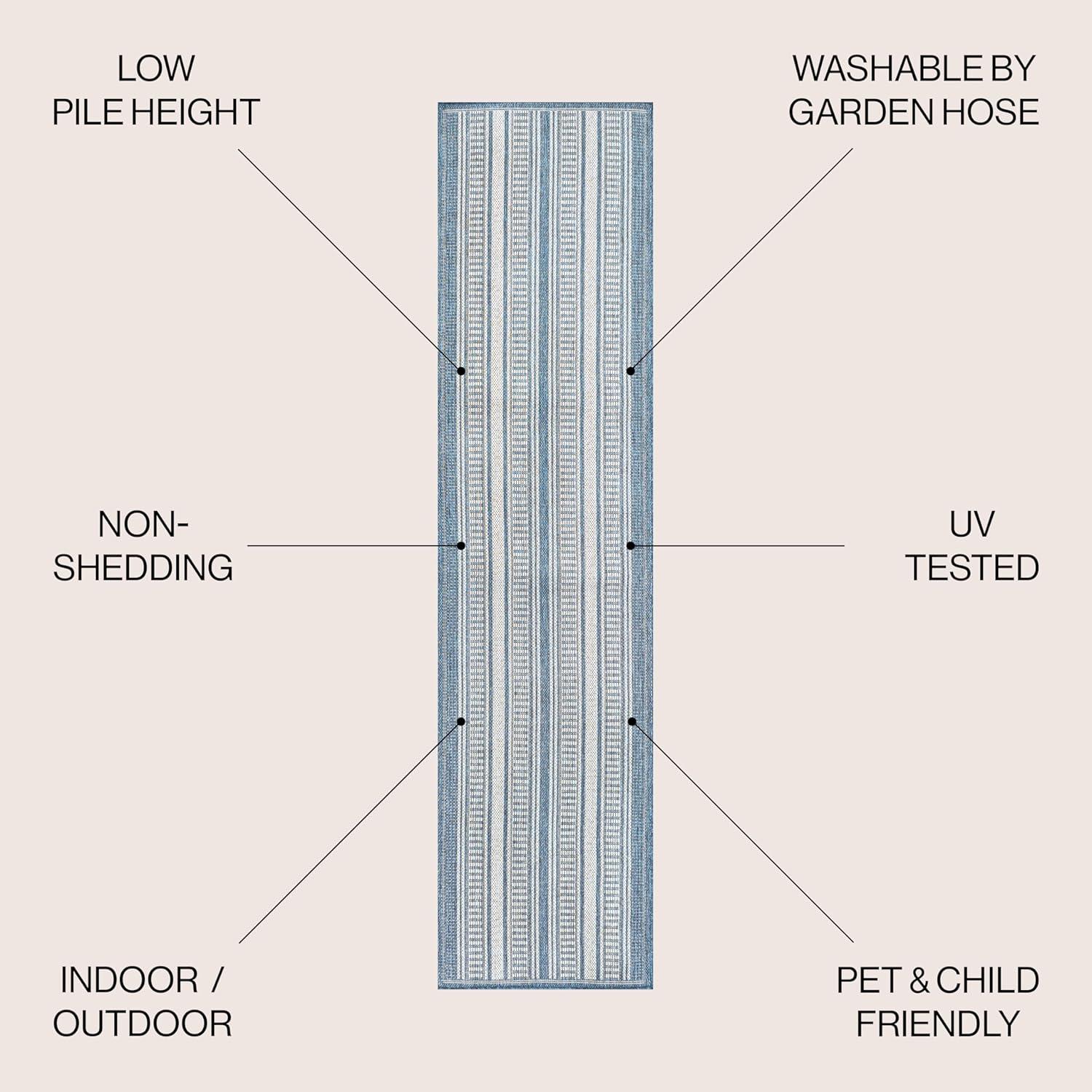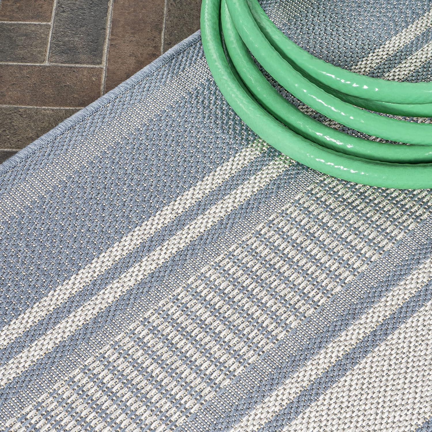 JONATHAN Y Double Stripe Indoor Outdoor Area Rug 8X10 Orange/Cream, Haynes Modern for Backyard, Patio, Porch, Easy-Cleaning, High Traffic, Pet-Friendly, Non-Shedding (SMB202C-8)(Blue/Light Gray)