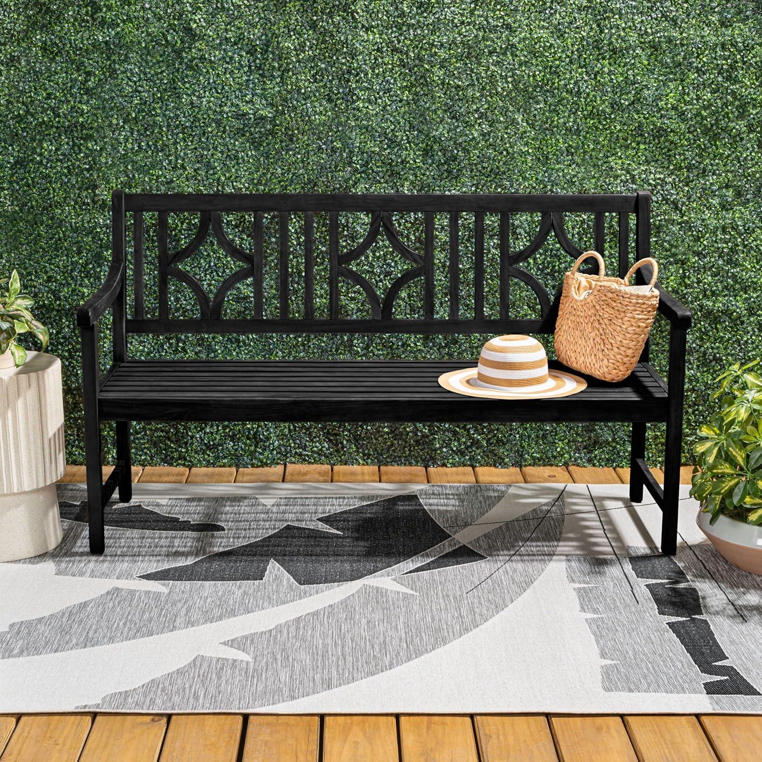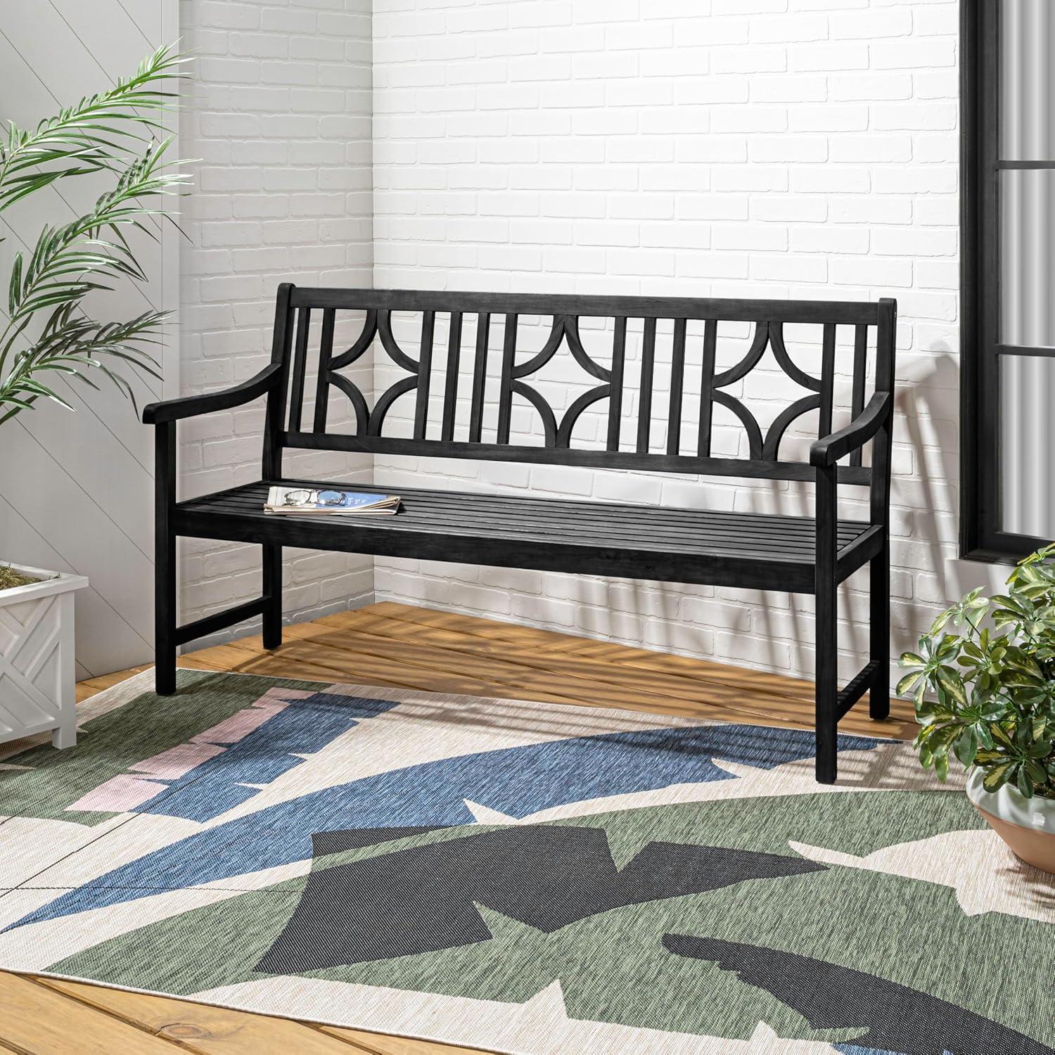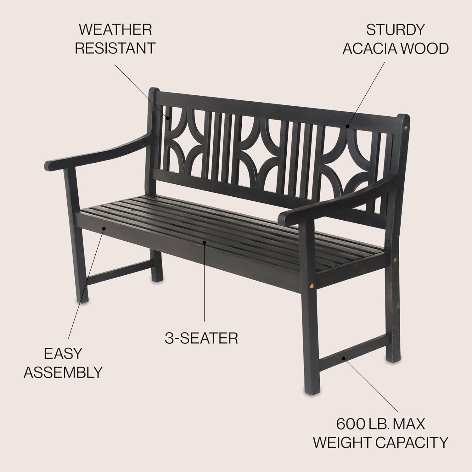 JONATHAN Y BNH103A Lutyens 51.2″ 3-Seat Arched 600-Lbs Support Acacia Wood Outdoor Garden Patio Bench for Garden, Lawn, Backyard, Pool, Deck, Beach, Firepit, Teak(Black)