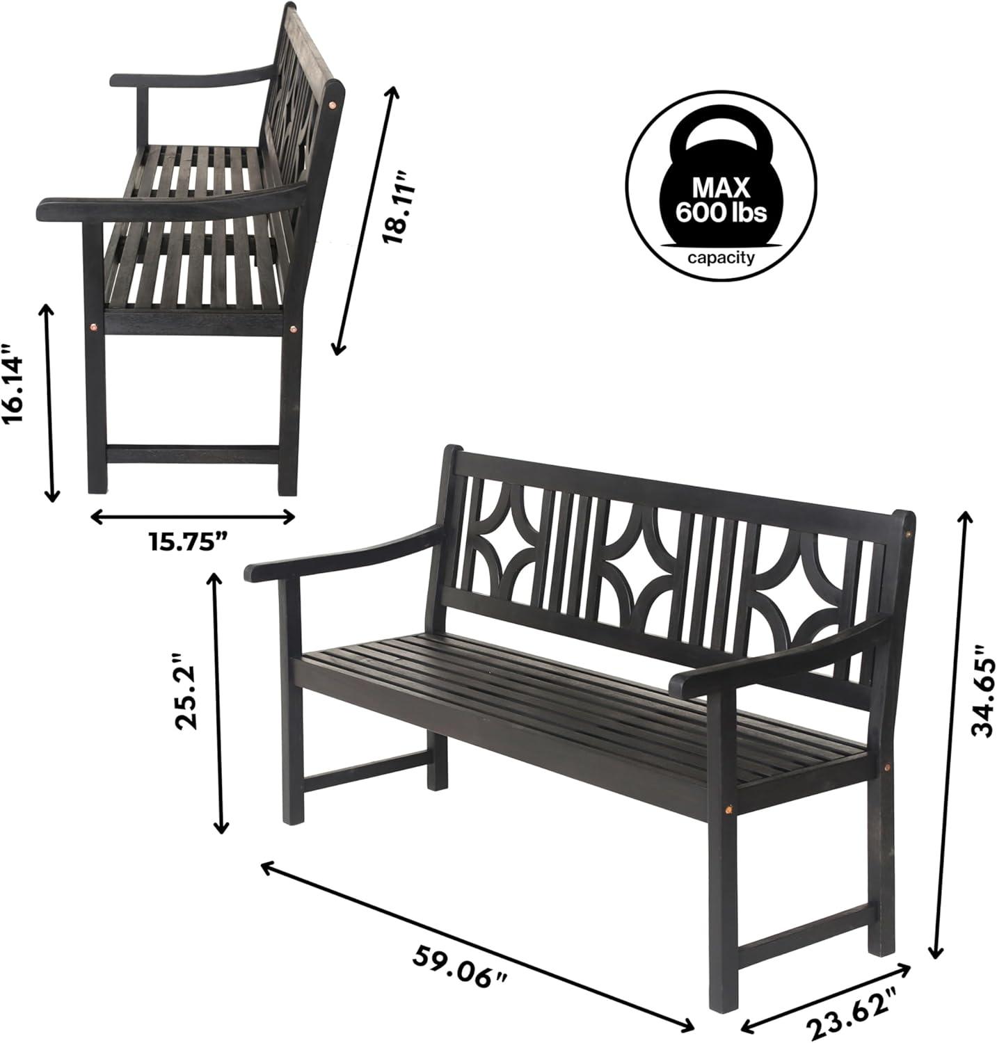 JONATHAN Y BNH100B Sloane 59.1″ 3-Seat Ogee Diamond-Back 600-Lbs Support Acacia Wood Outdoor Garden Patio Bench for Garden, Lawn, Backyard, Pool, Deck, Beach, Firepit, Gray(Black)