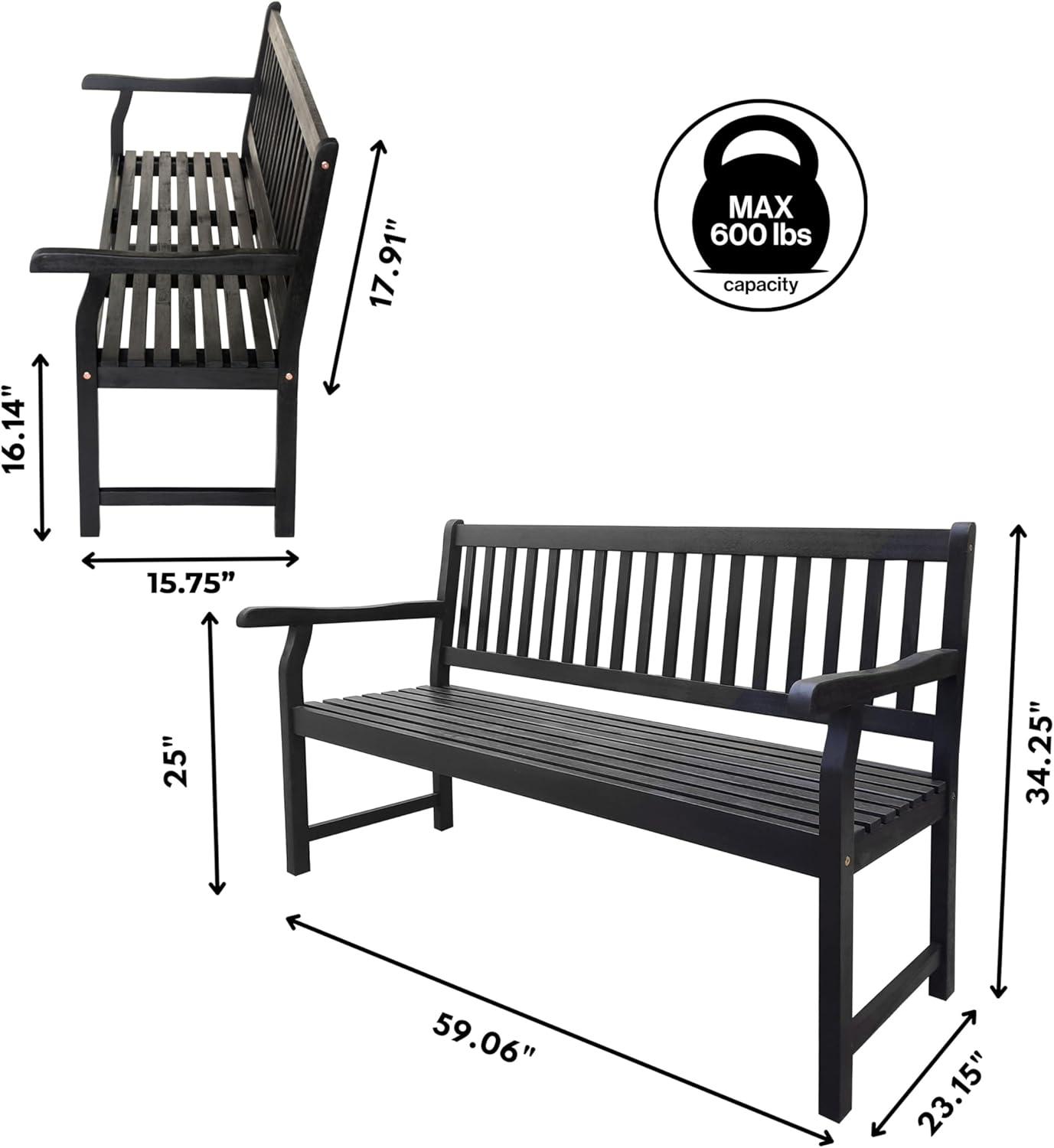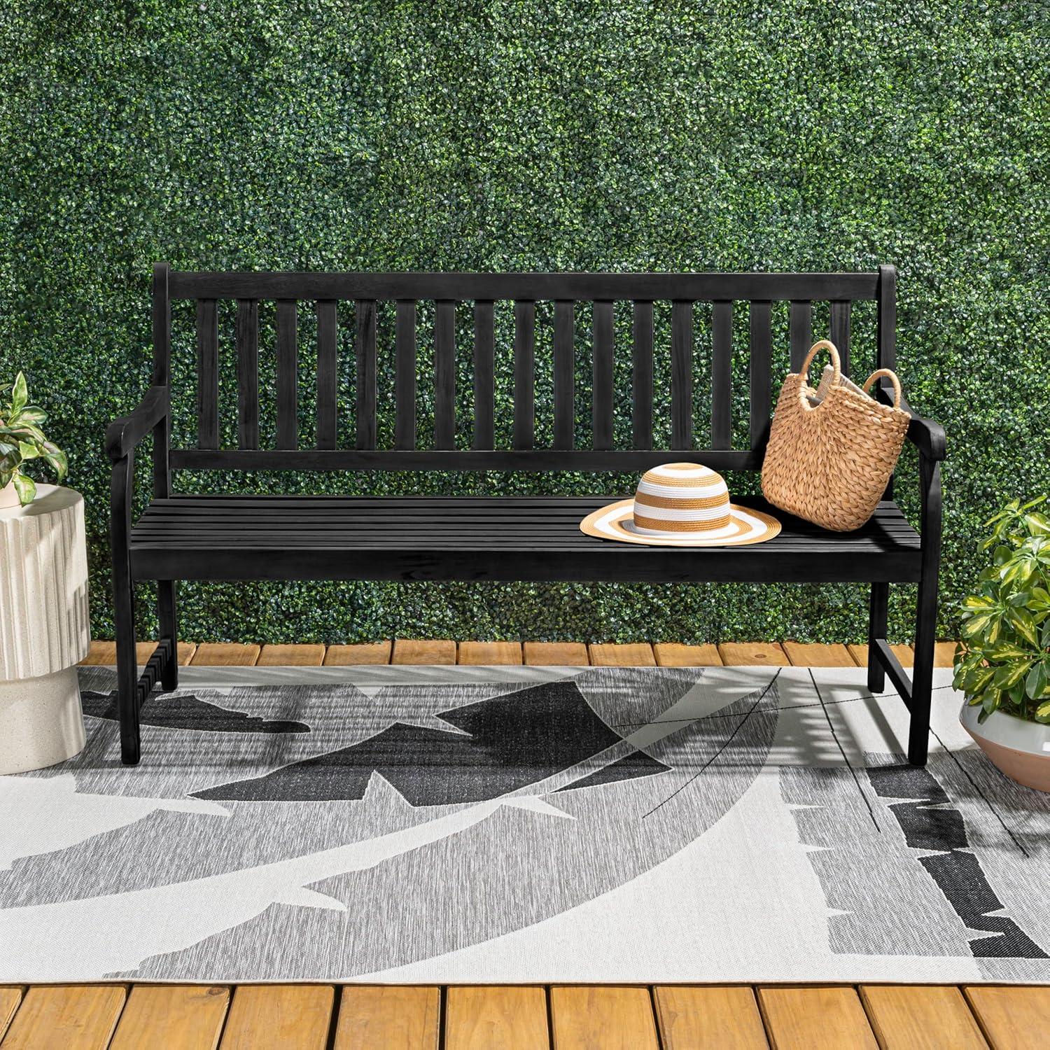 JONATHAN Y BNH101A Laurel 59.1″ 3-Seat Slat-Back 600-Lbs Support Acacia Wood Outdoor Garden Patio Bench for Garden, Lawn, Backyard, Pool, Deck, Beach, Firepit, Teak(Black)