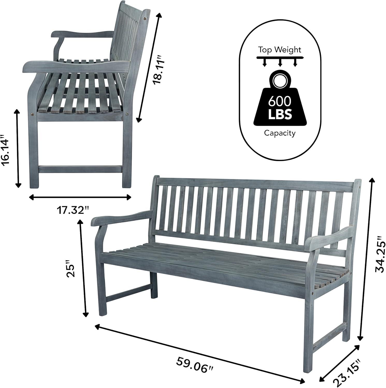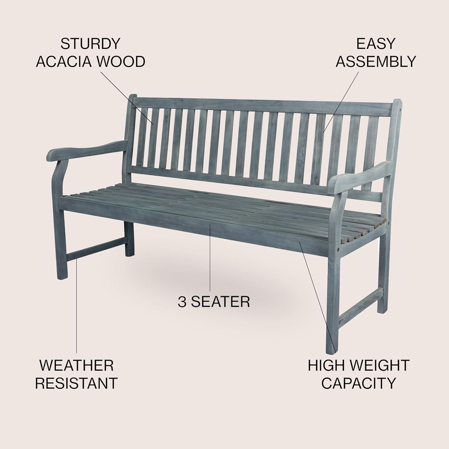JONATHAN Y BNH101A Laurel 59.1″ 3-Seat Slat-Back 600-Lbs Support Acacia Wood Outdoor Garden Patio Bench for Garden, Lawn, Backyard, Pool, Deck, Beach, Firepit, Teak(Grey)