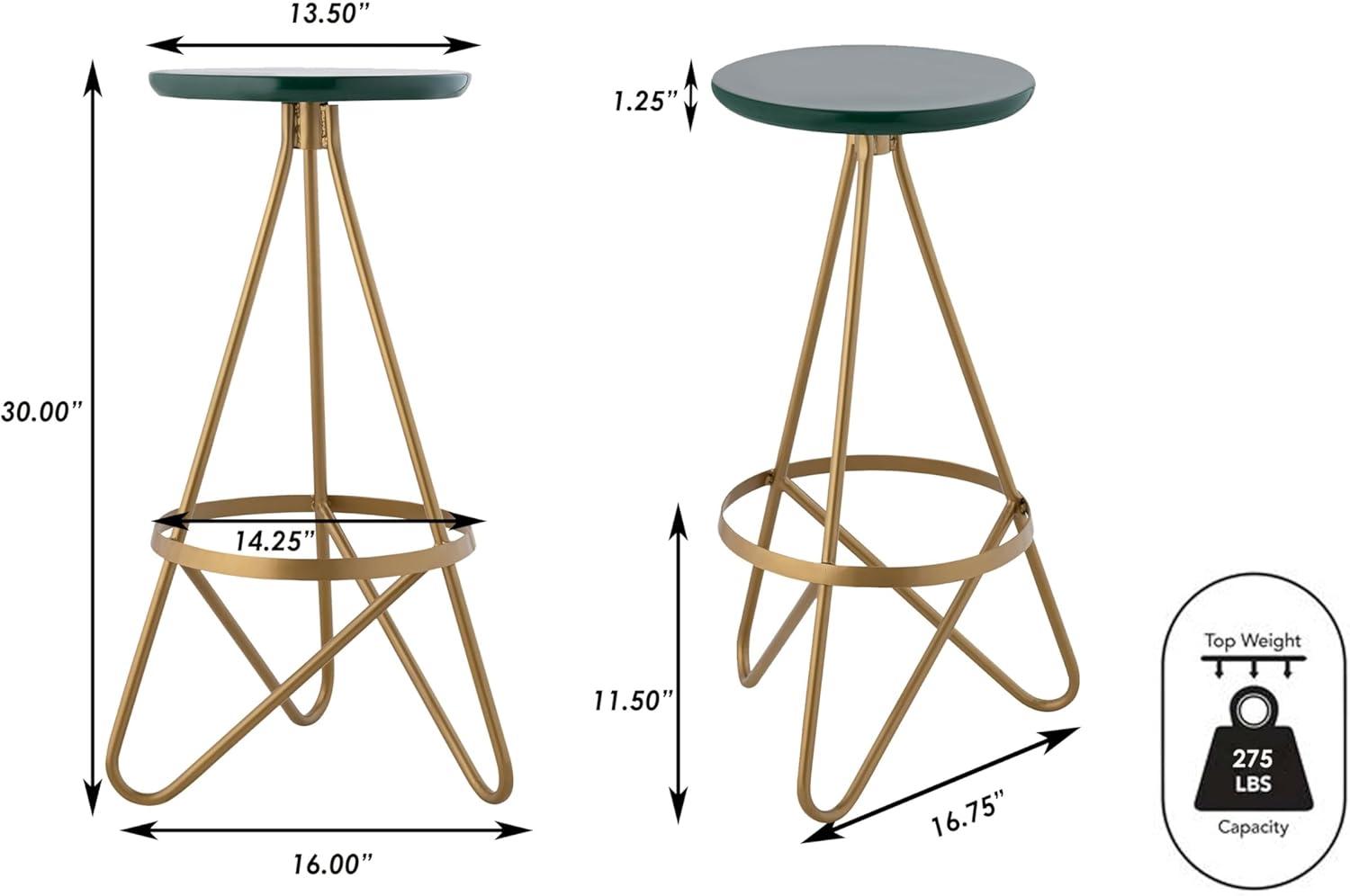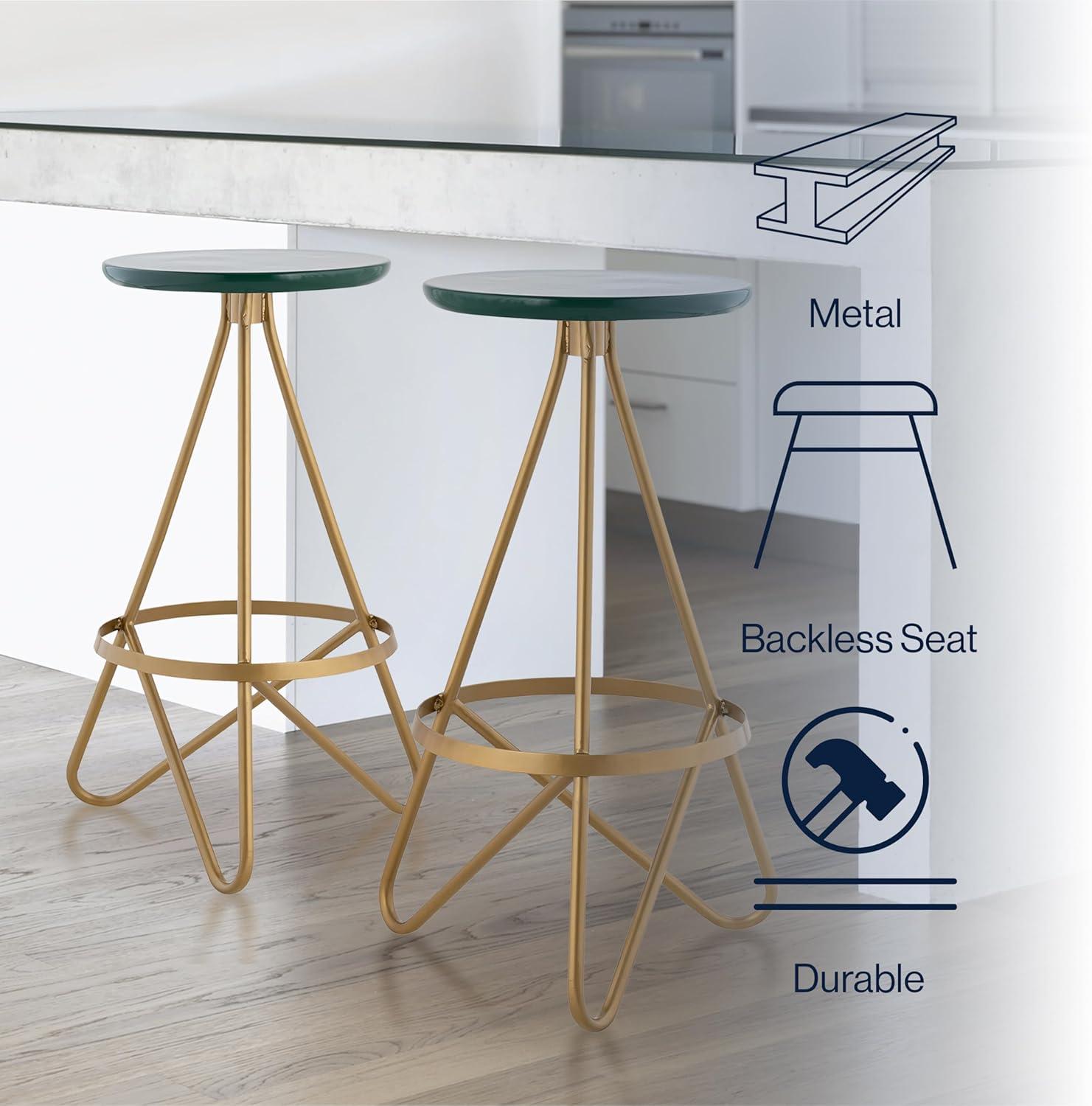 JONATHAN Y BSL1000D Spiroa 30″ Modern Industrial Metal Backless Circular Bar Stool for Home, Kitchen, Dining Room, Workspaces, Cafes and Resturants, White Seat with Gold Frame(Green)
