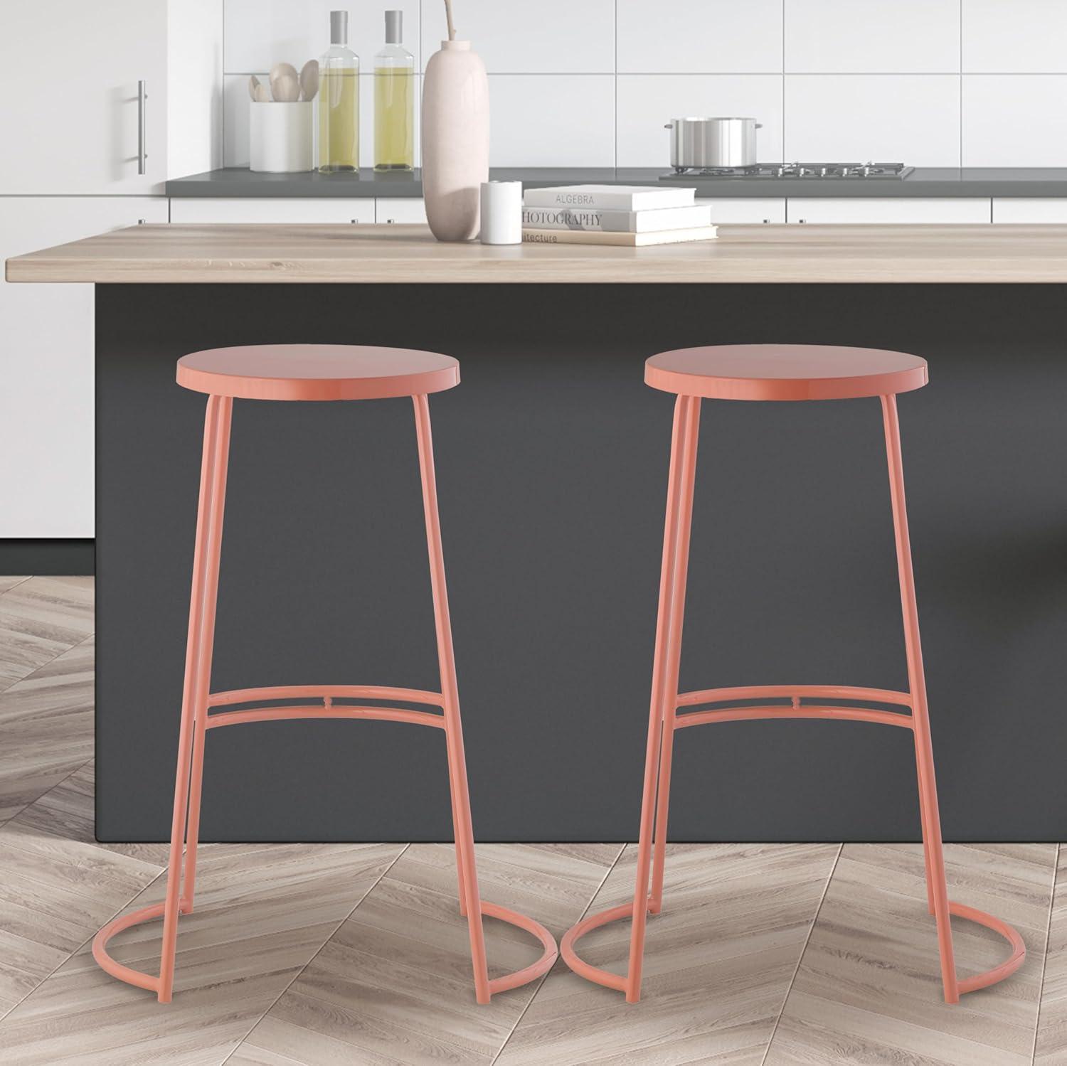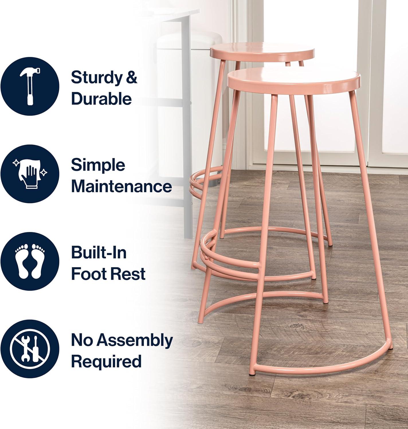 JONATHAN Y BSL1001A Hula 28.75″ Modern Designer Iron Curved Backless Bar Stool for Home, Kitchen, Dining Room, Workspaces, Cafes and Resturants, Black Seat with Gold Frame(Pink)