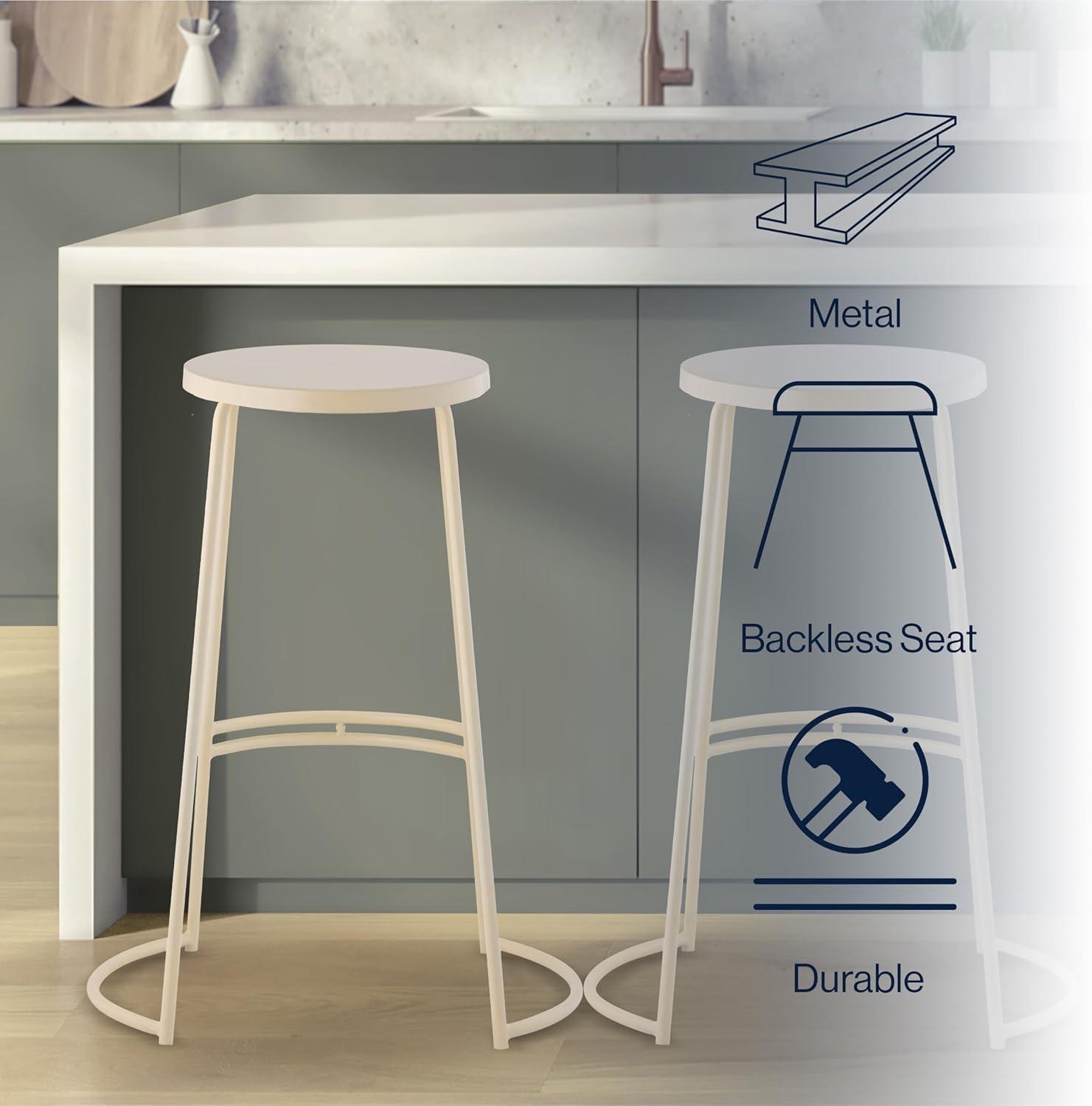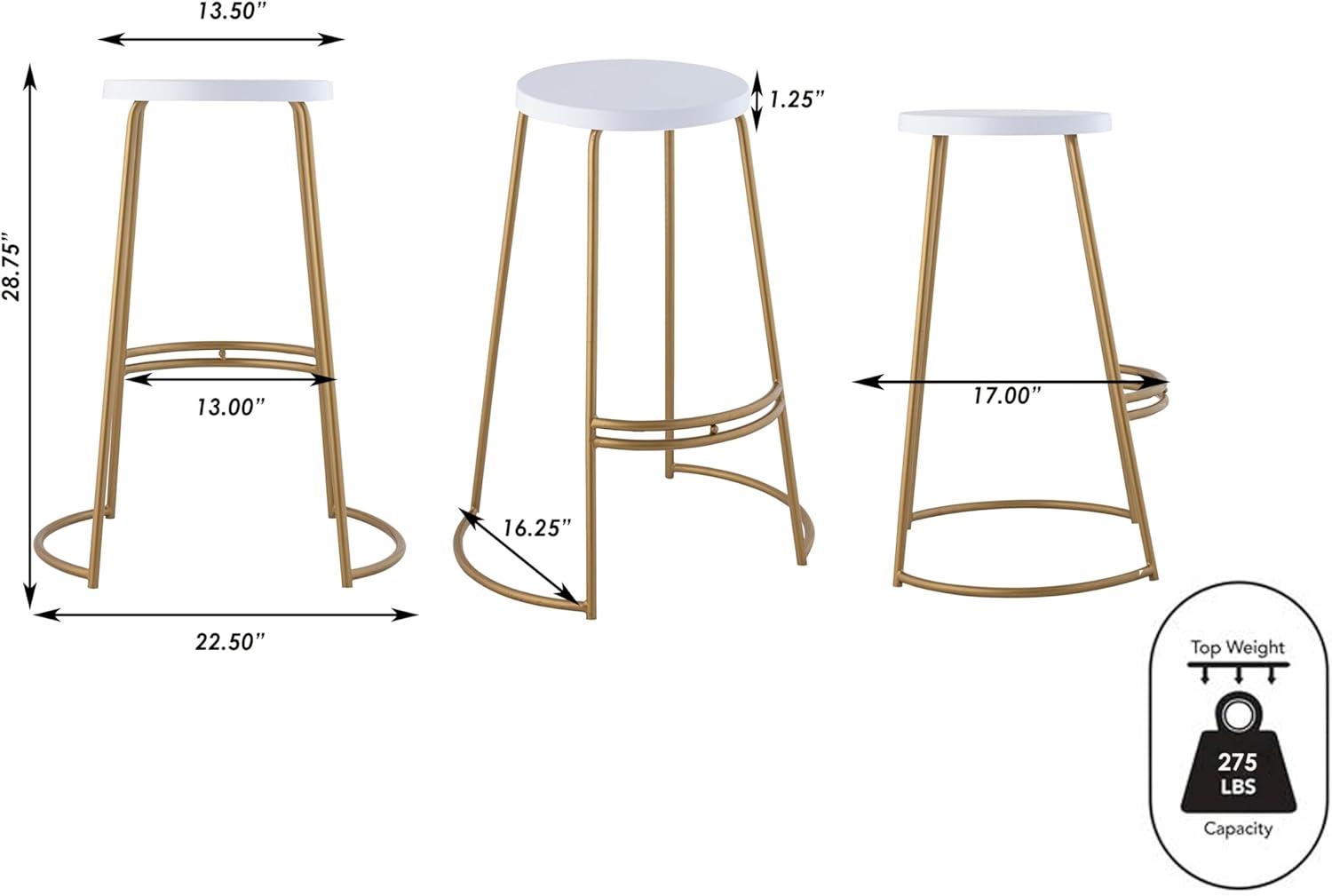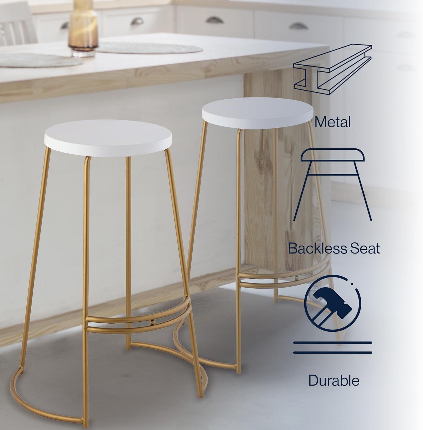 JONATHAN Y BSL1000D Spiroa 30″ Modern Industrial Metal Backless Circular Bar Stool for Home, Kitchen, Dining Room, Workspaces, Cafes and Resturants, White Seat with Gold Frame(White)