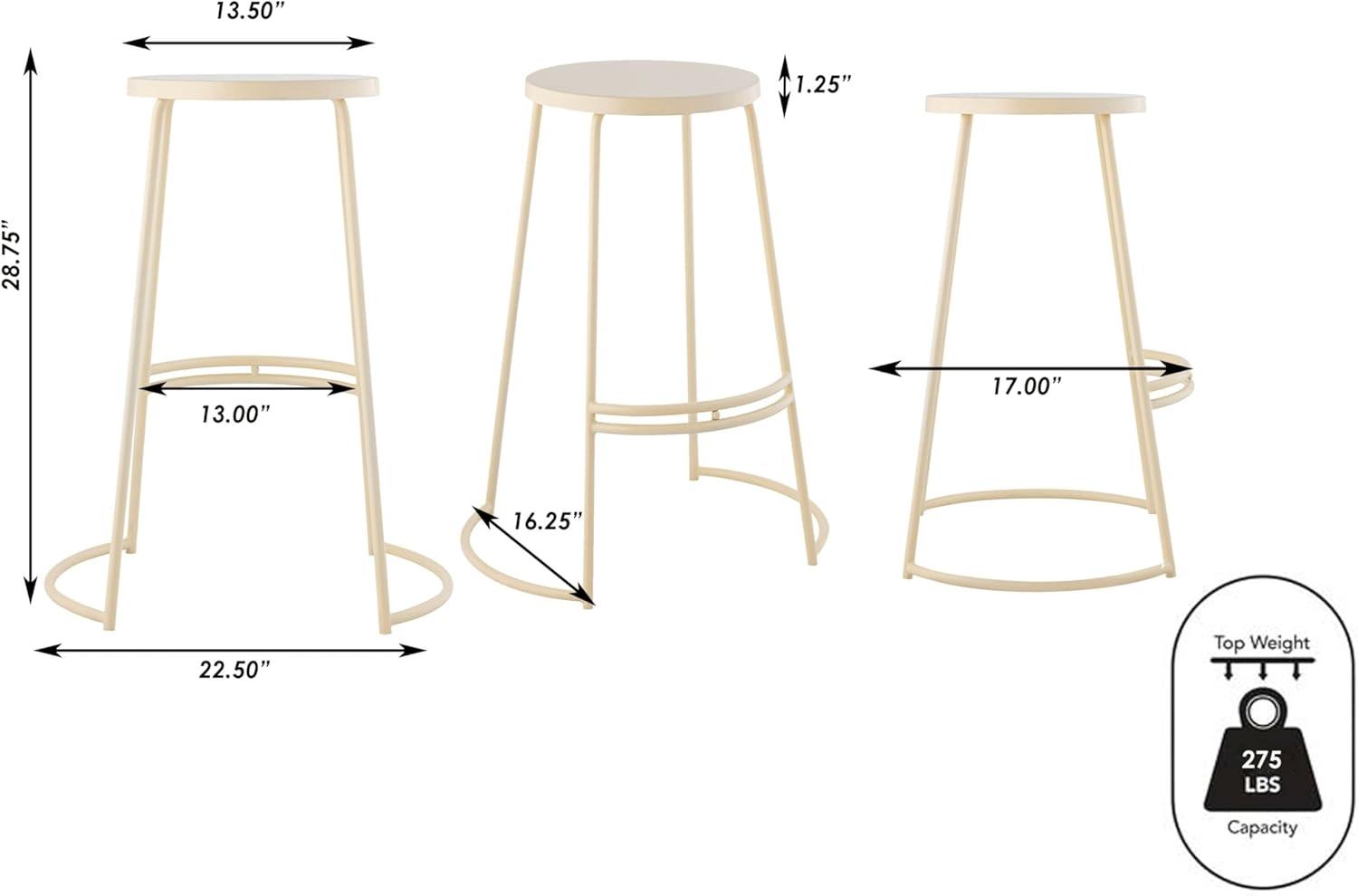 JONATHAN Y BSL1000D Spiroa 30″ Modern Industrial Metal Backless Circular Bar Stool for Home, Kitchen, Dining Room, Workspaces, Cafes and Resturants, White Seat with Gold Frame(Black)