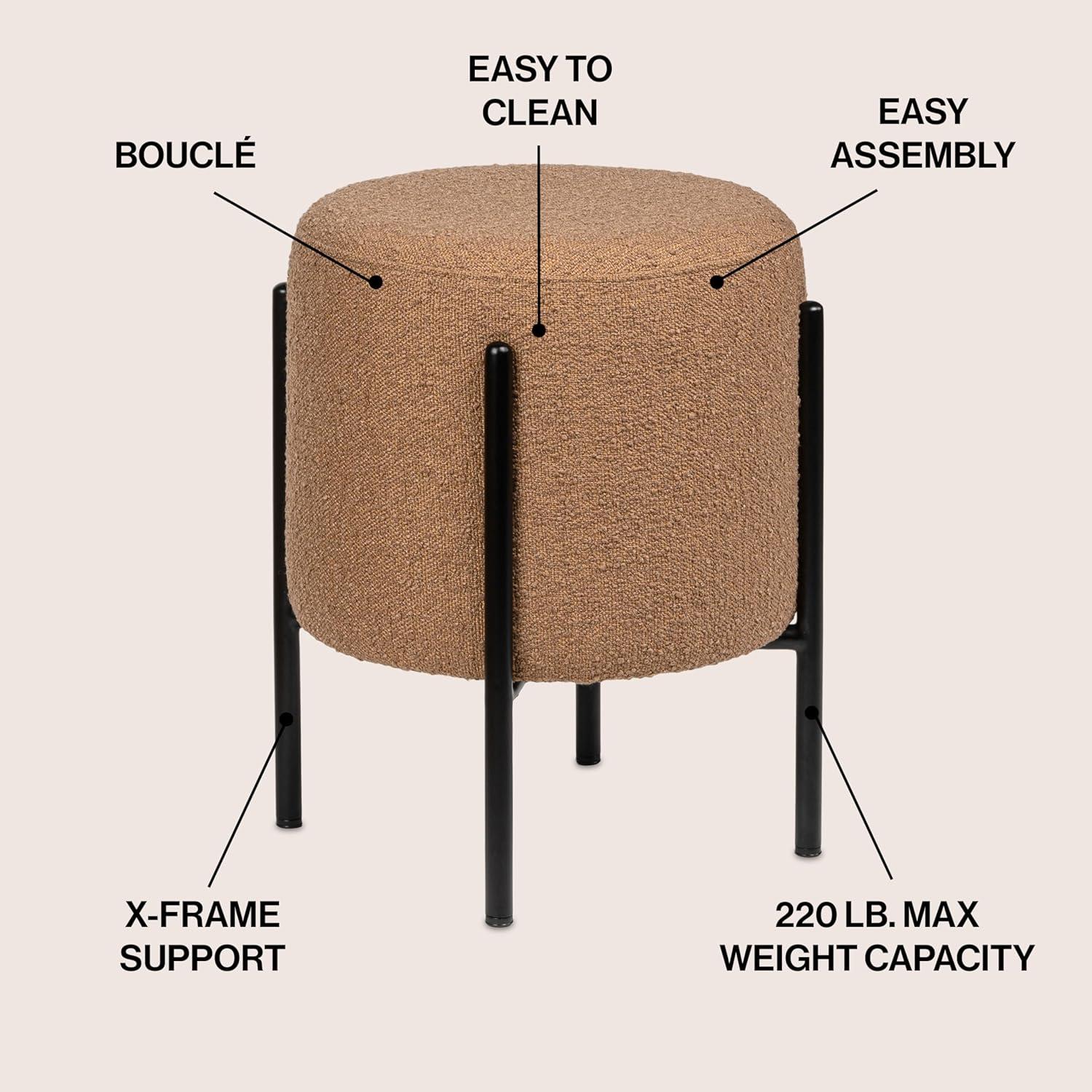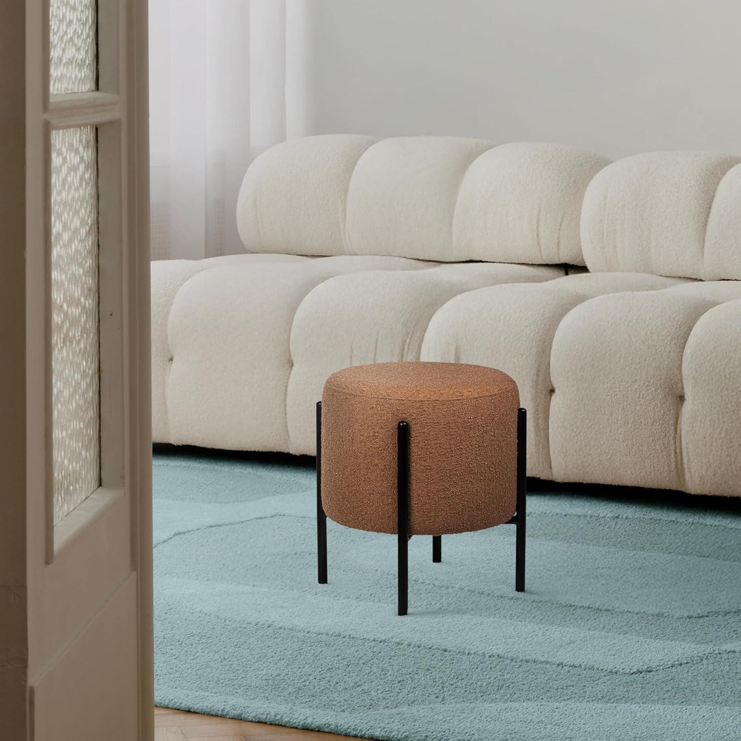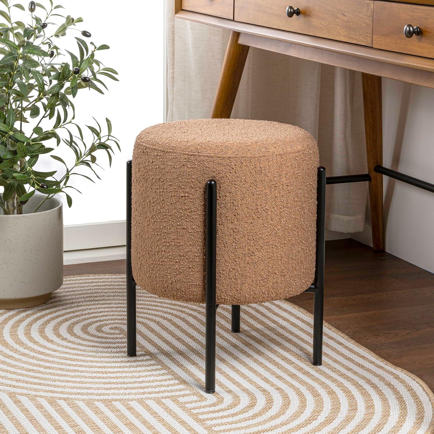 JONATHAN Y VSL2000C Silvia 18.5″ Modern Minimalist Round Backless Metal/Bouclé Cushioned Vanity Stool for Home, Vanity, Makeup, Living Room, Bedroom, Brown/Black(Caramel Brown)