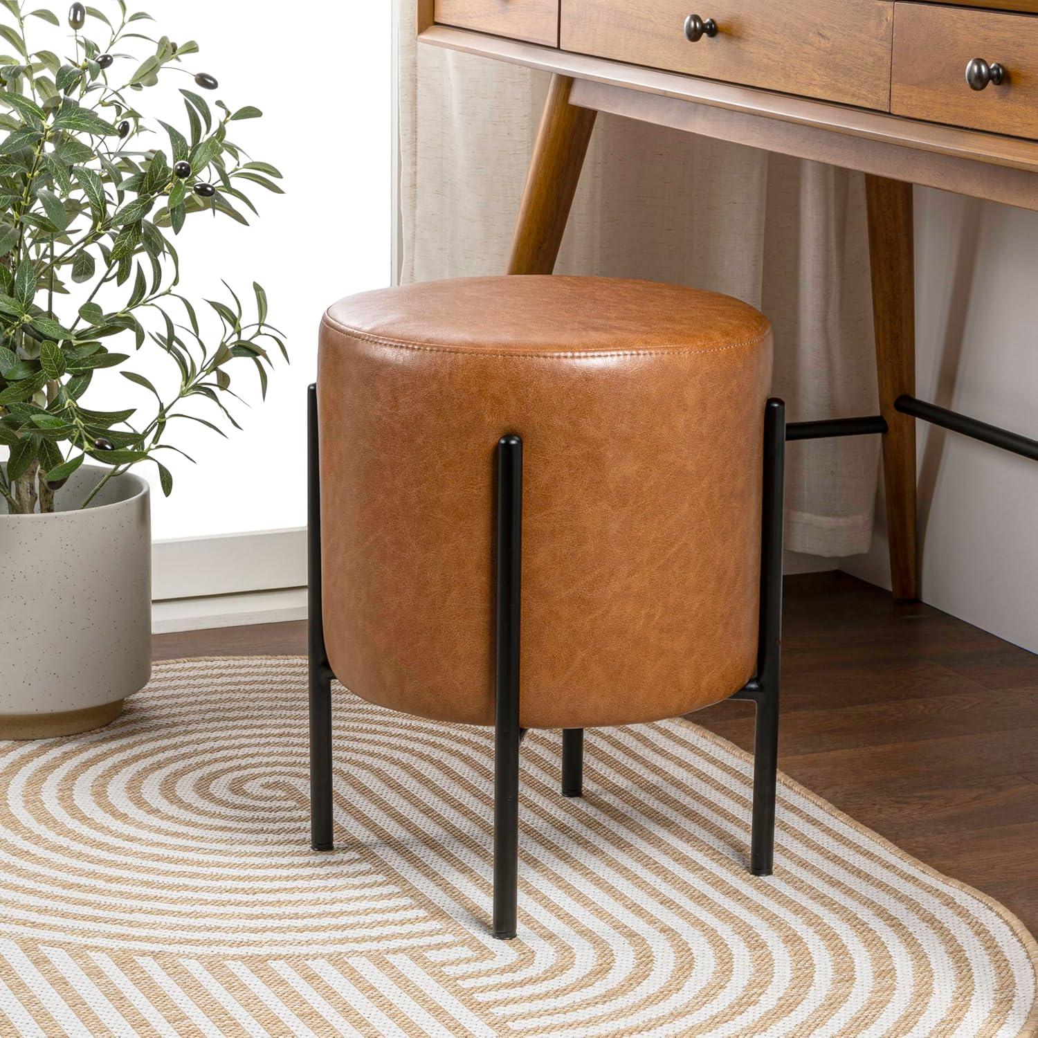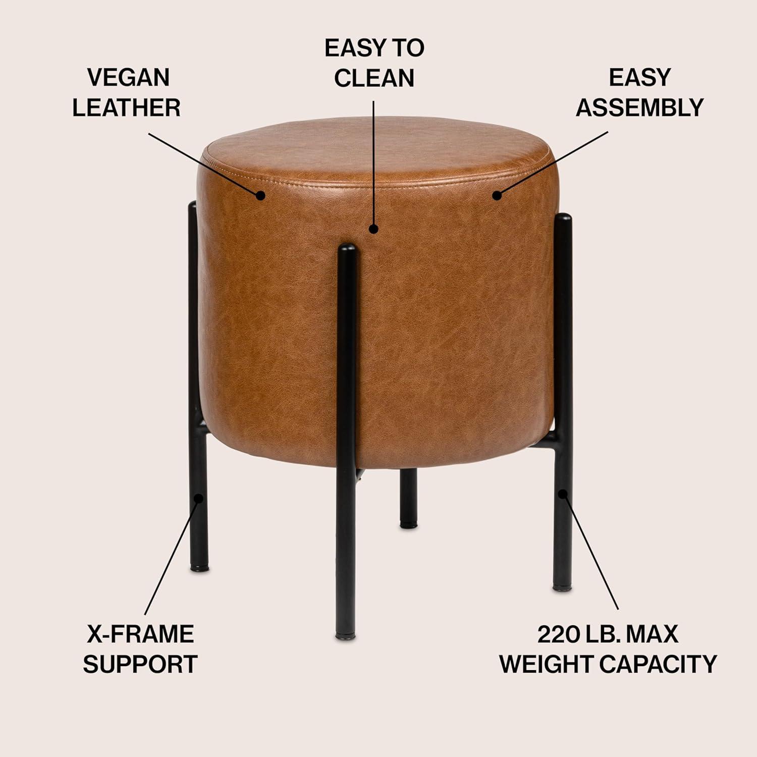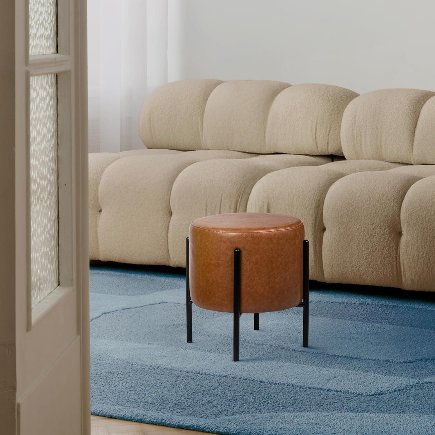 JONATHAN Y VSL2000C Silvia 18.5″ Modern Minimalist Round Backless Metal/Bouclé Cushioned Vanity Stool for Home, Vanity, Makeup, Living Room, Bedroom, Brown/Black(Caramel Brown)