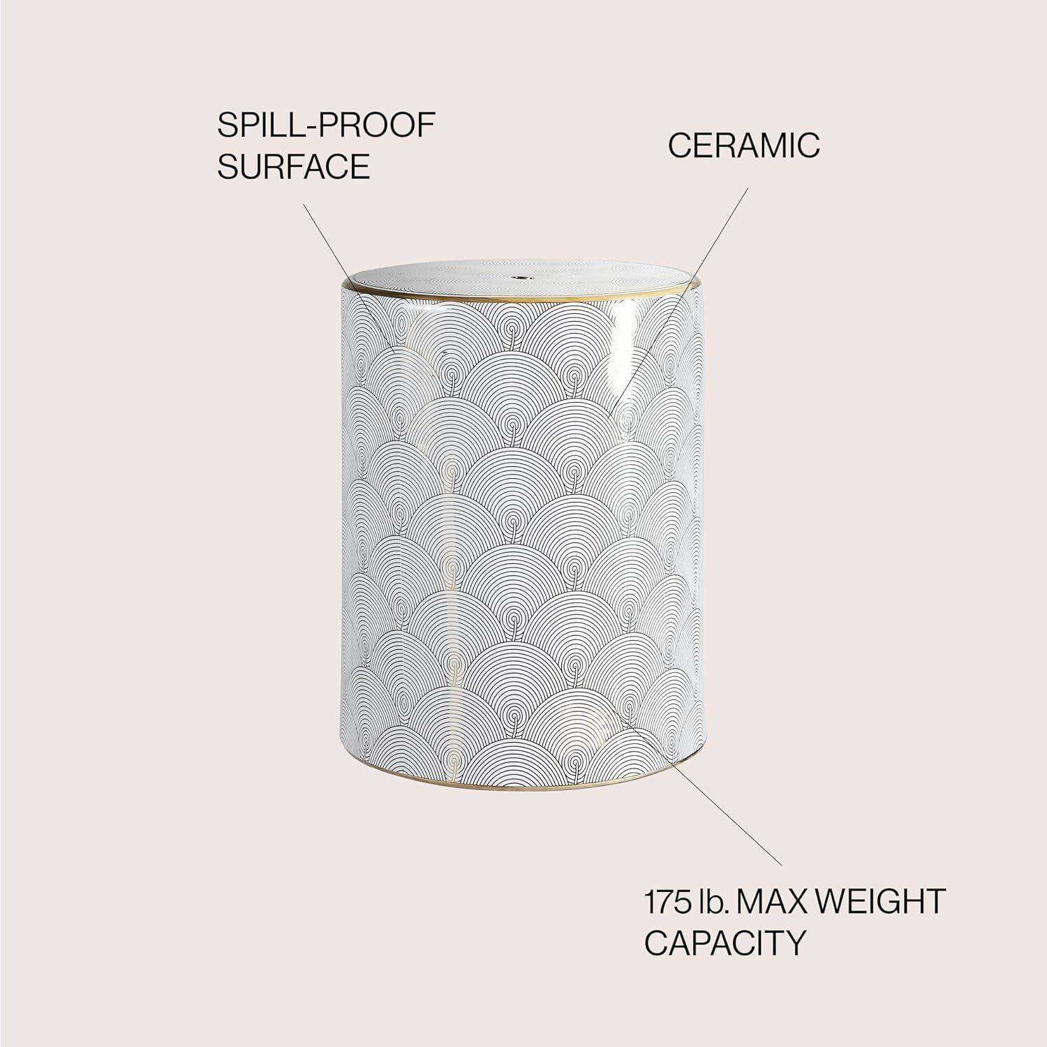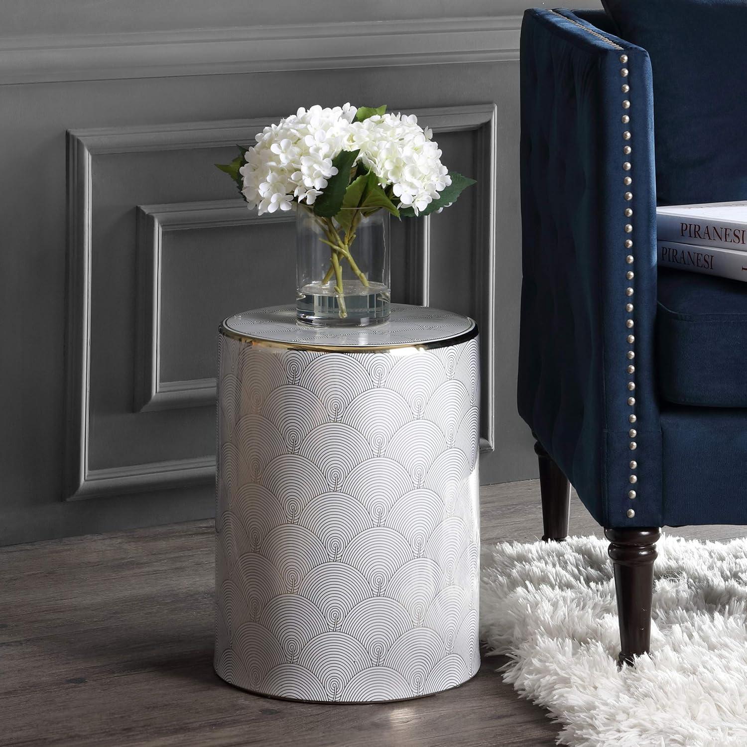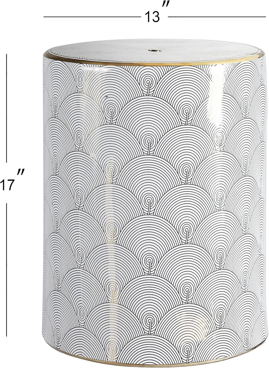 JONATHAN Y TBL1001A Fish Scale 17″ Modern Ceramic Indoor/Outdoor Garden Stool, Coastal, Contemporary, Transitional, Side Table, Plant Stand, Spill-Proof, Living Room, Garden Room, Patio, White/Gold