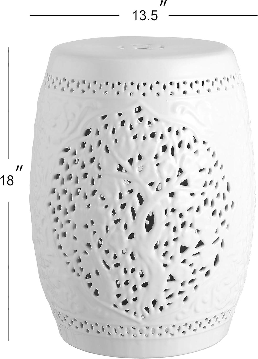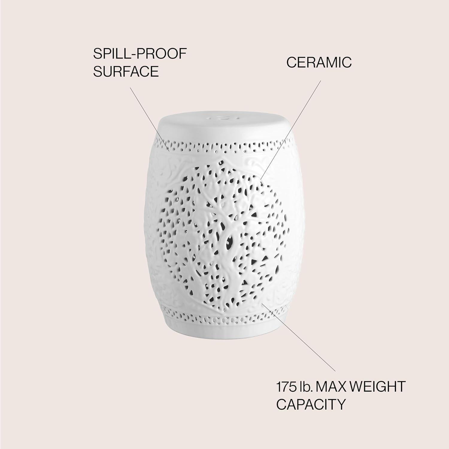 JONATHAN Y TBL1002A Tree of Life 18″ Ceramic Indoor/Outdoor Garden Stool, Coastal, Contemporary, Modern, Transitional, Side Table, Plant Stand, Spill-Proof, Living Room, Garden Room, Patio, White