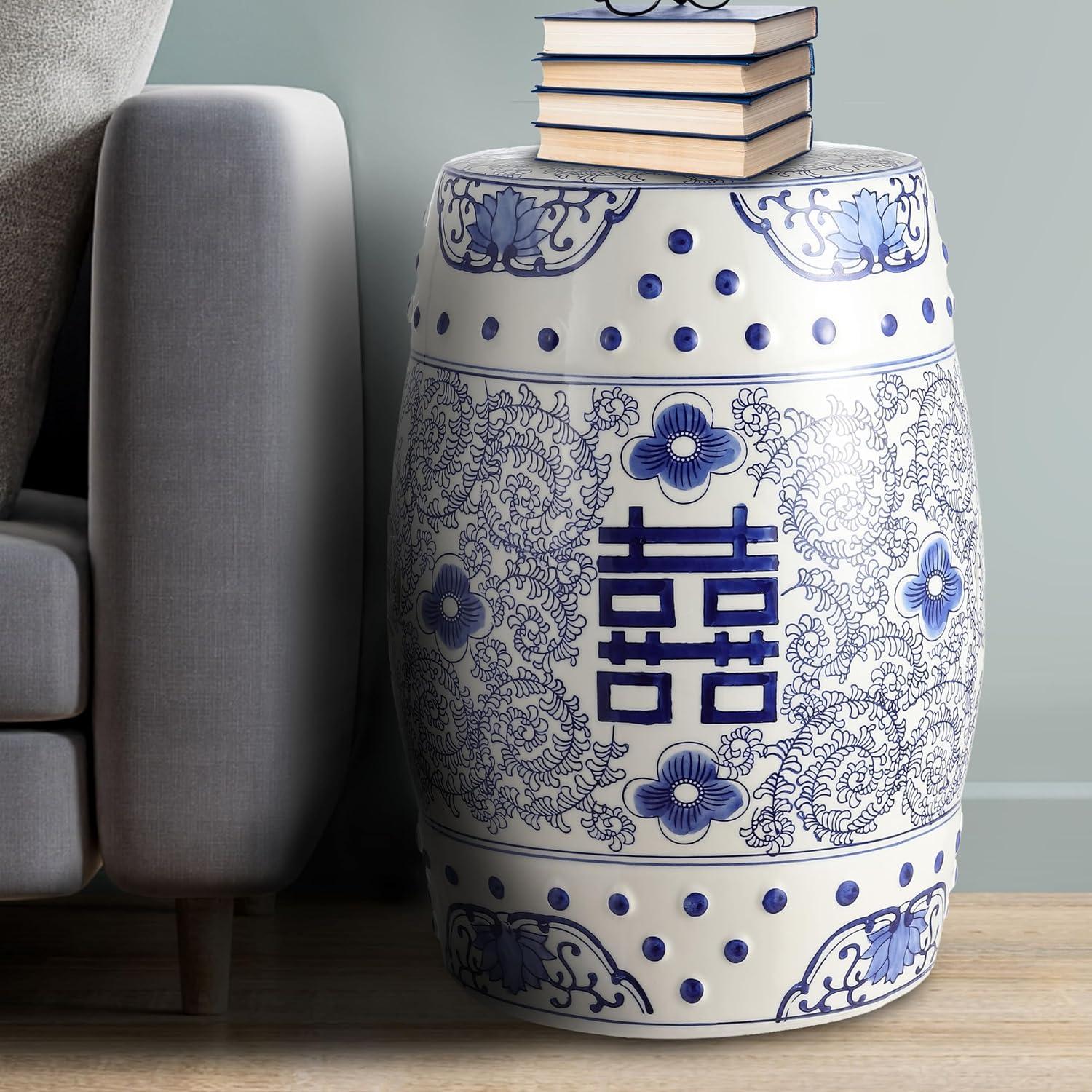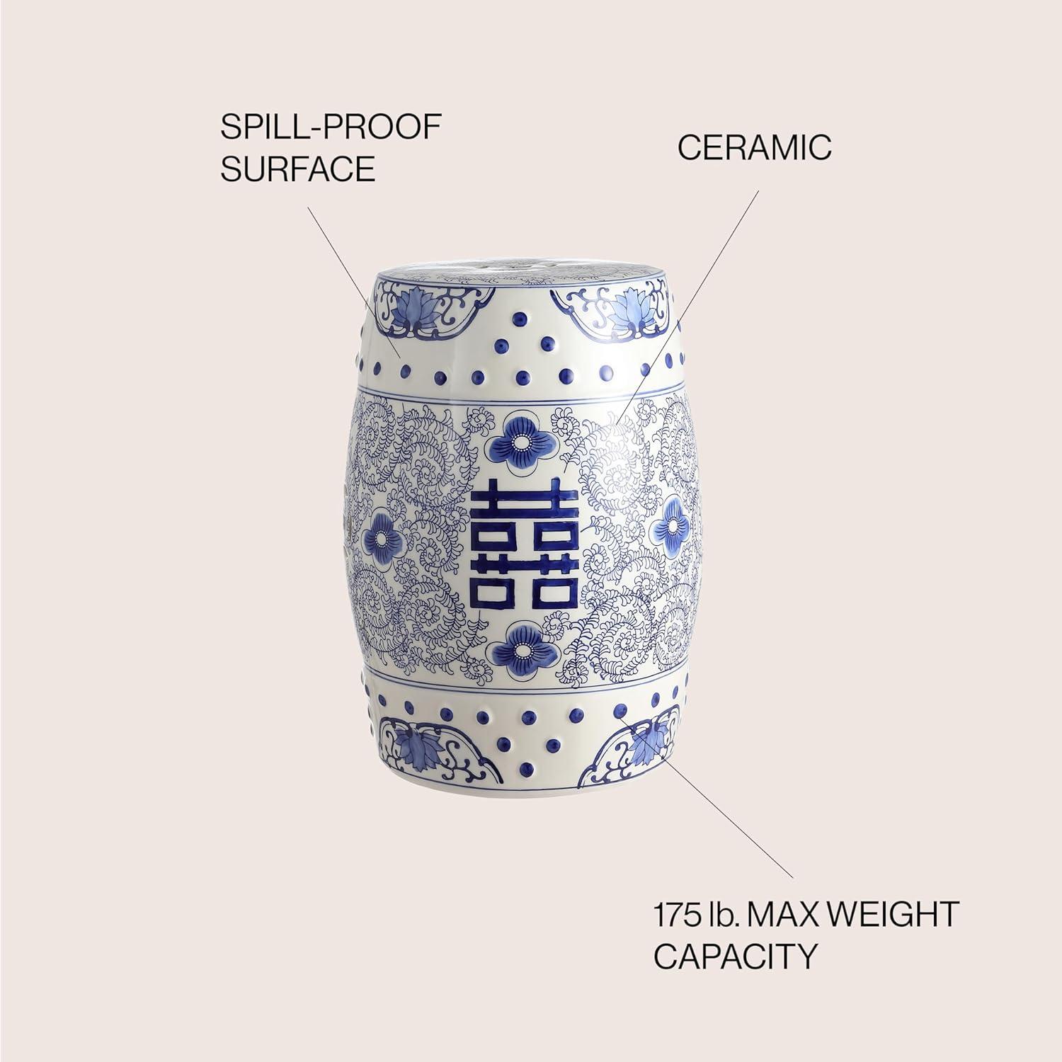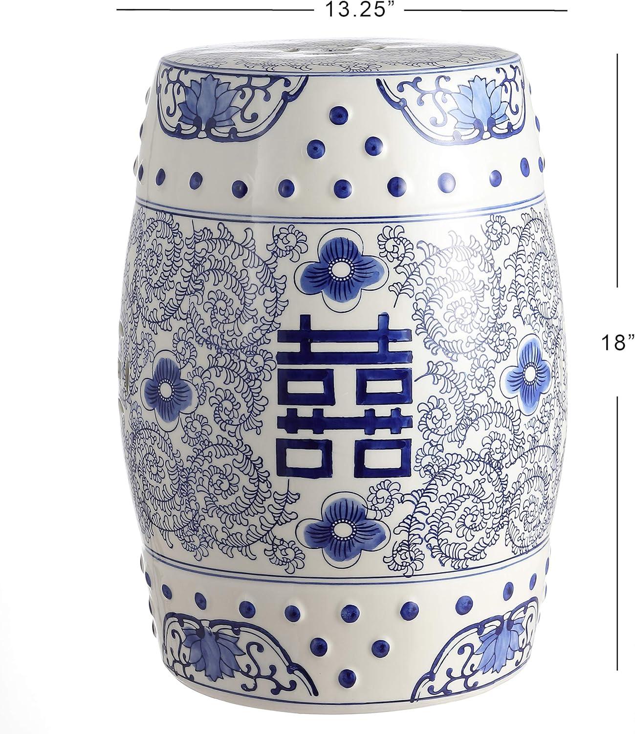 JONATHAN Y TBL1013A Double Happiness 18″ Chinoiserie Ceramic Drum Indoor/Outdoor Garden Stool Bohemian, Coastal, Classic, Cottage, French Country, Traditional, Bathroom, Garden Room, Patio, Blue/White