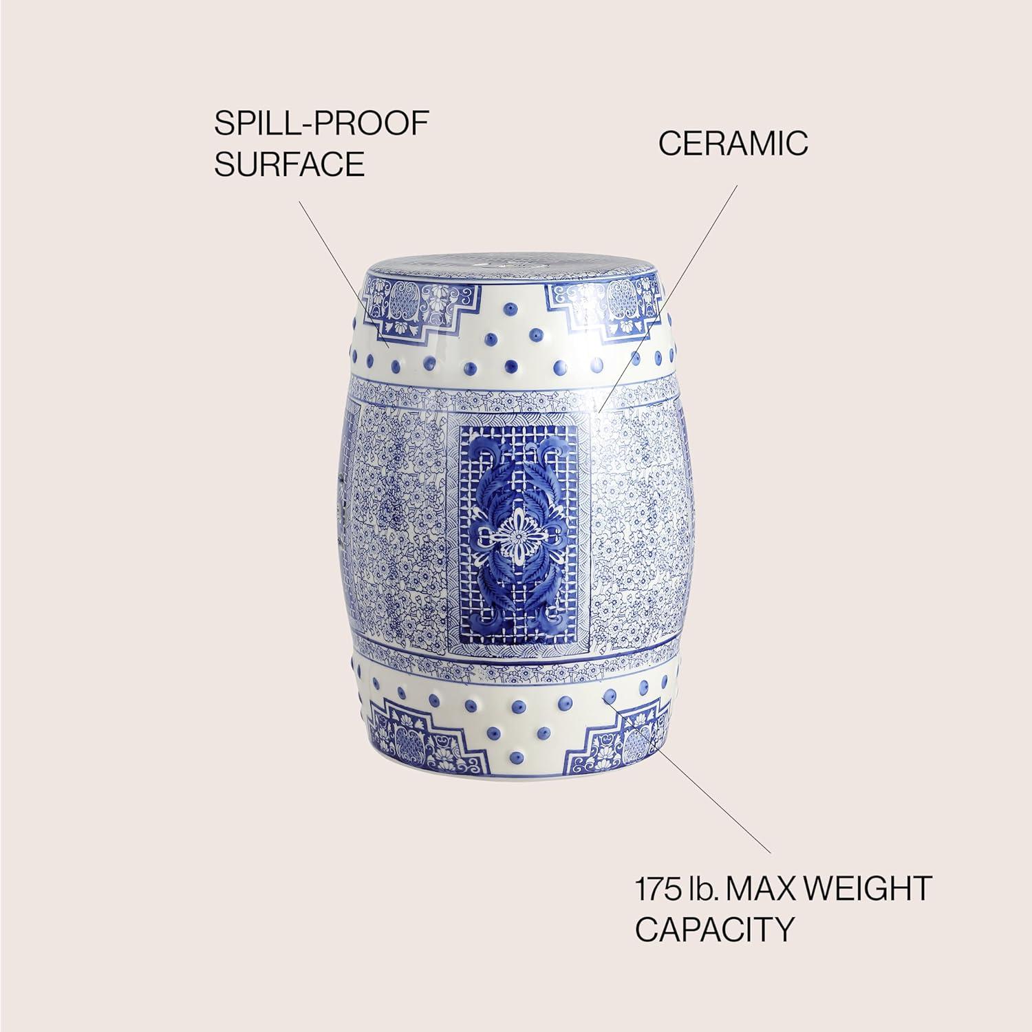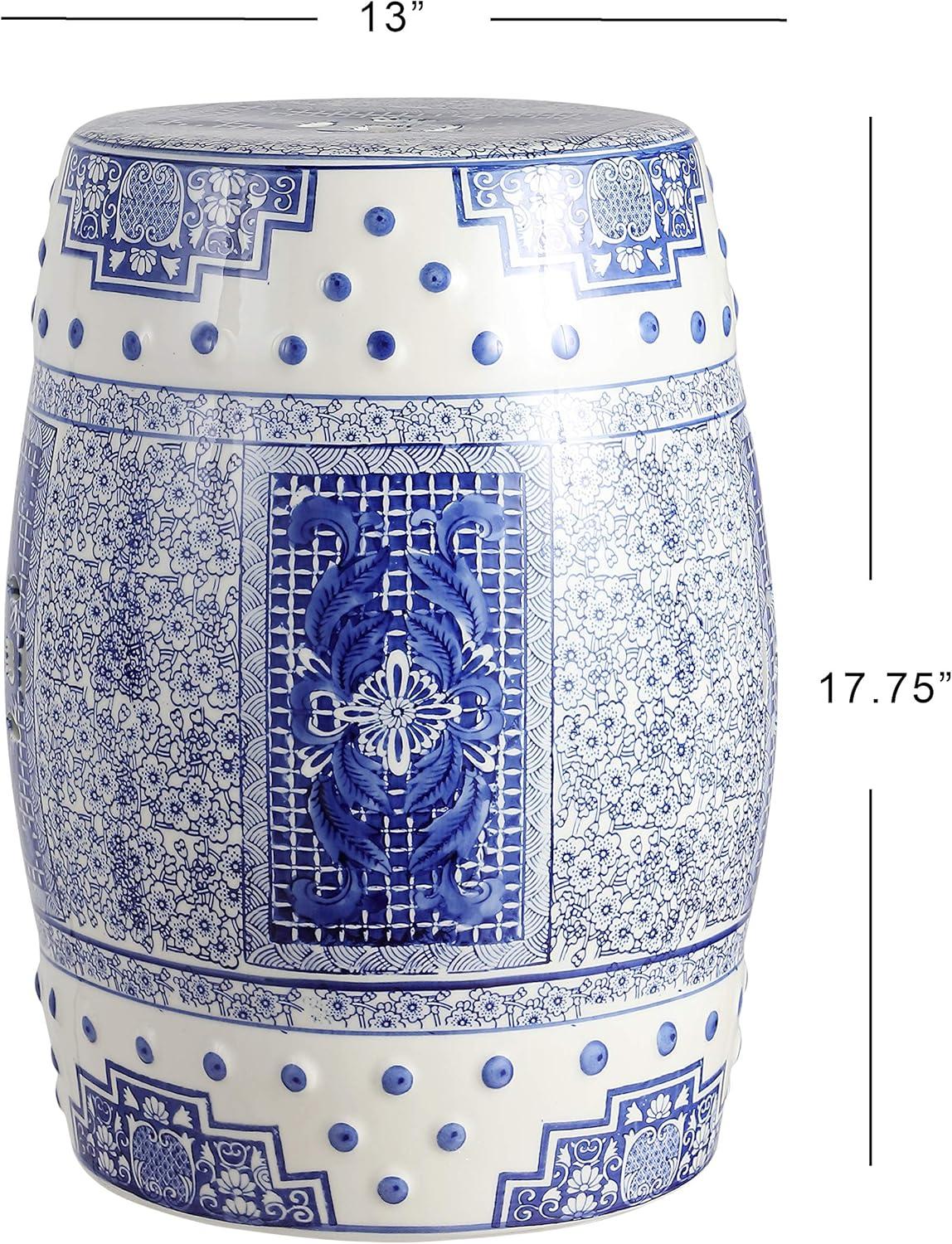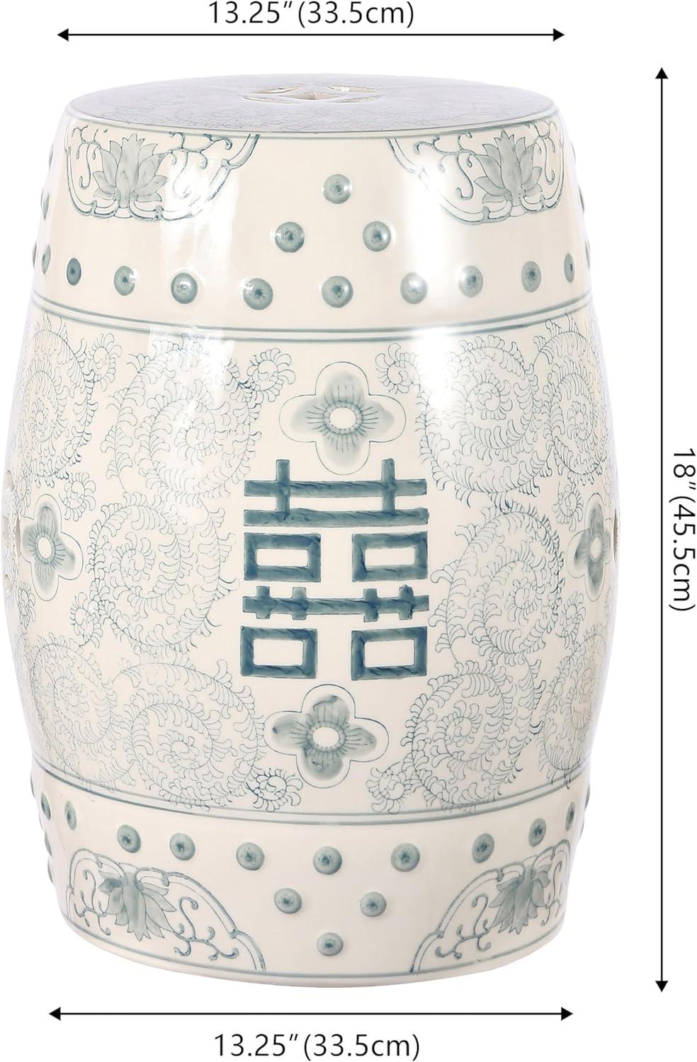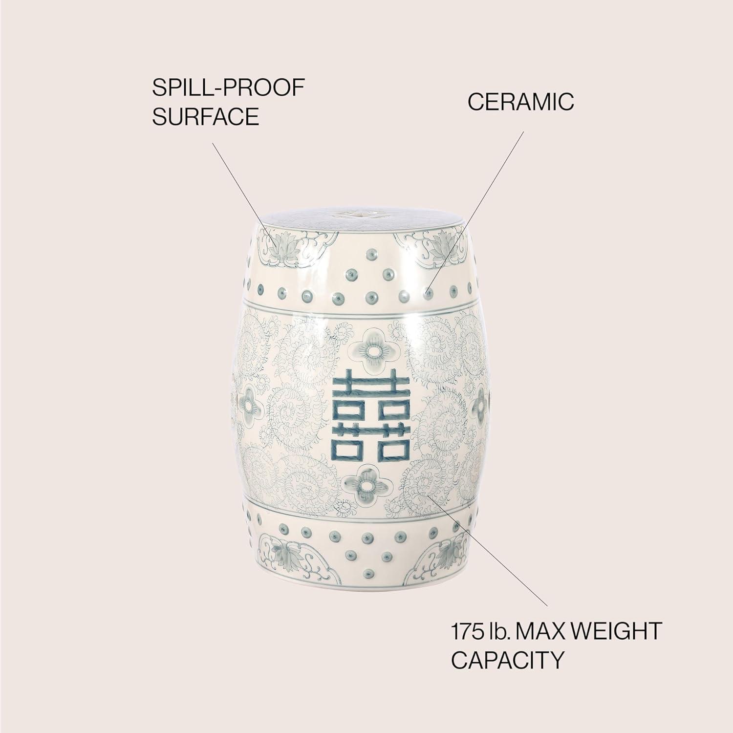JONATHAN Y TBL1013A Double Happiness 18″ Chinoiserie Ceramic Drum Indoor/Outdoor Garden Stool Bohemian, Coastal, Classic, Cottage, French Country, Traditional, Bathroom, Garden Room, Patio, Blue/White