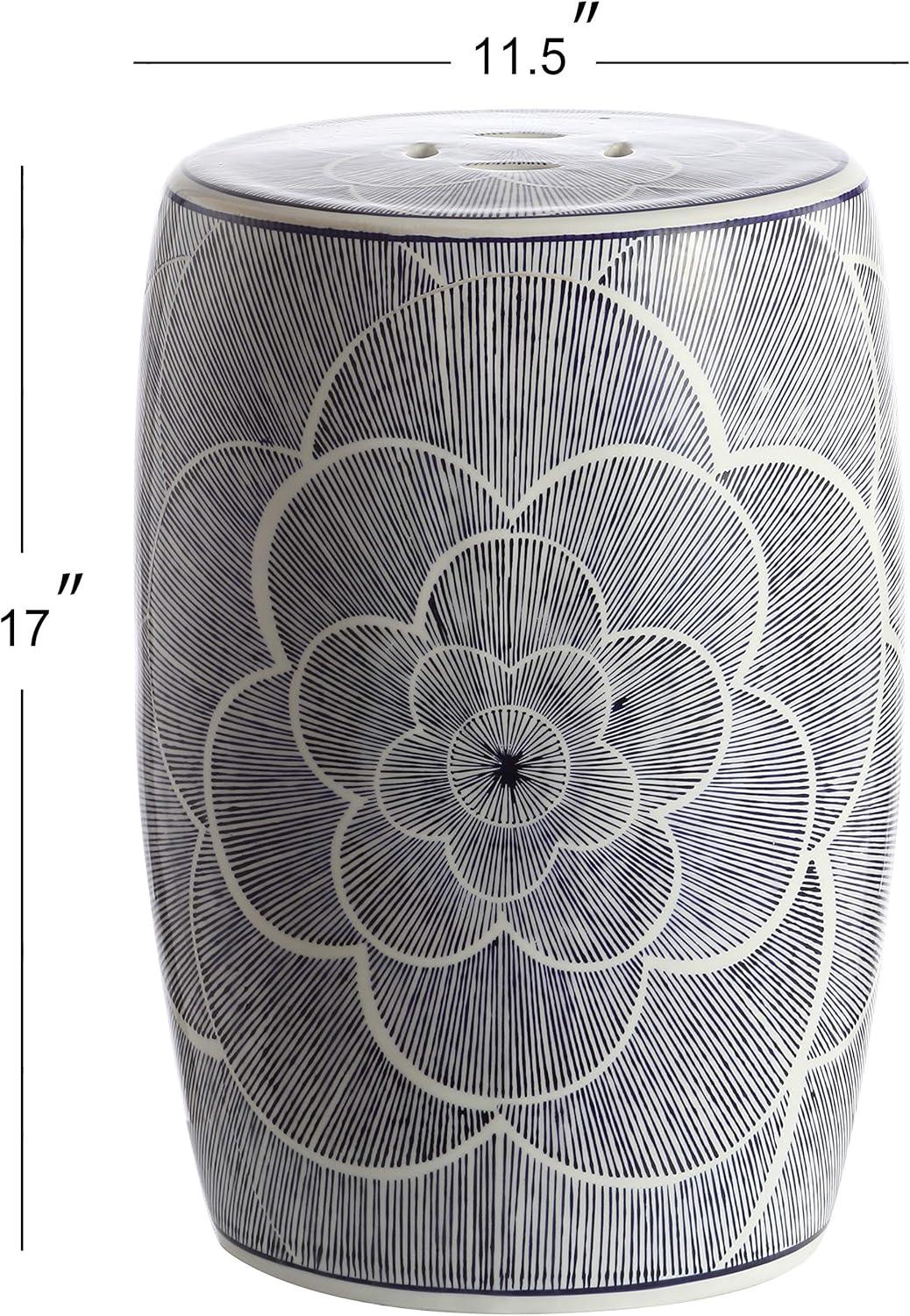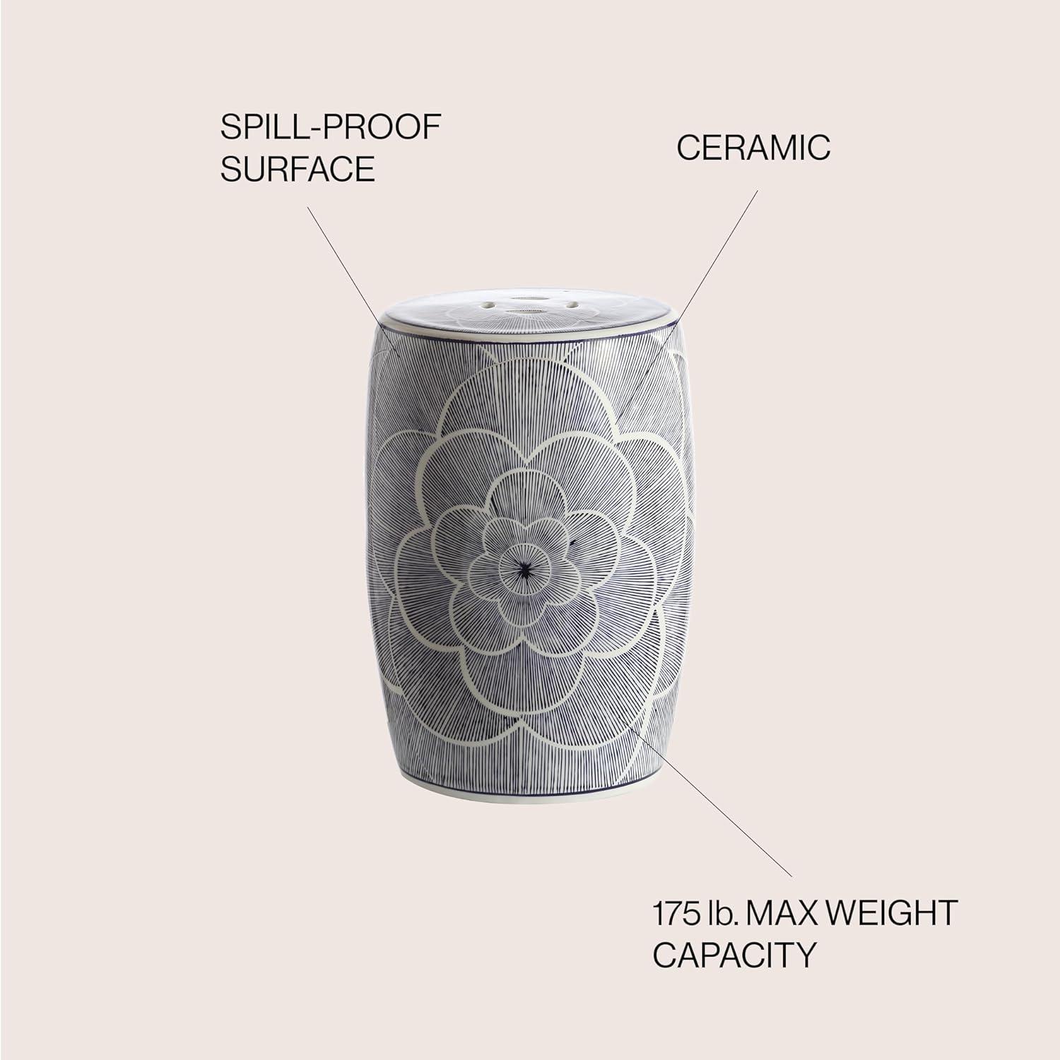 JONATHAN Y TBL1005A Camellia 17″ Ceramic Drum Indoor/Outdoor Garden Stool, Stylized Flower on White Background, Coastal, Contemporary, Modern, Spill-Proof, Living Room, Garden Room, Patio, Blue