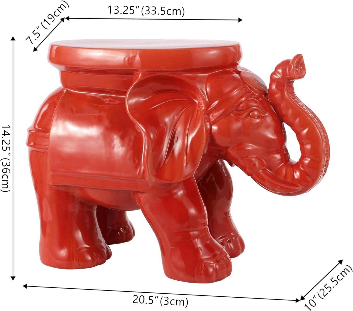 JONATHAN Y TBL1007C White Elephant 14.25″ Ceramic Indoor/Outdoor Garden Stool Coastal, Contemporary, Transitional, Patio, Garden Room, Bathroom, Living Room, Orange(Red)