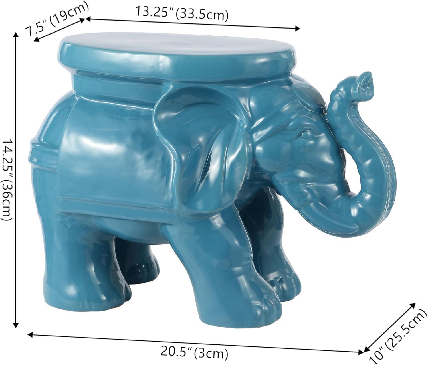 JONATHAN Y TBL1007C White Elephant 14.25″ Ceramic Indoor/Outdoor Garden Stool Coastal, Contemporary, Transitional, Patio, Garden Room, Bathroom, Living Room, Orange(Blue)