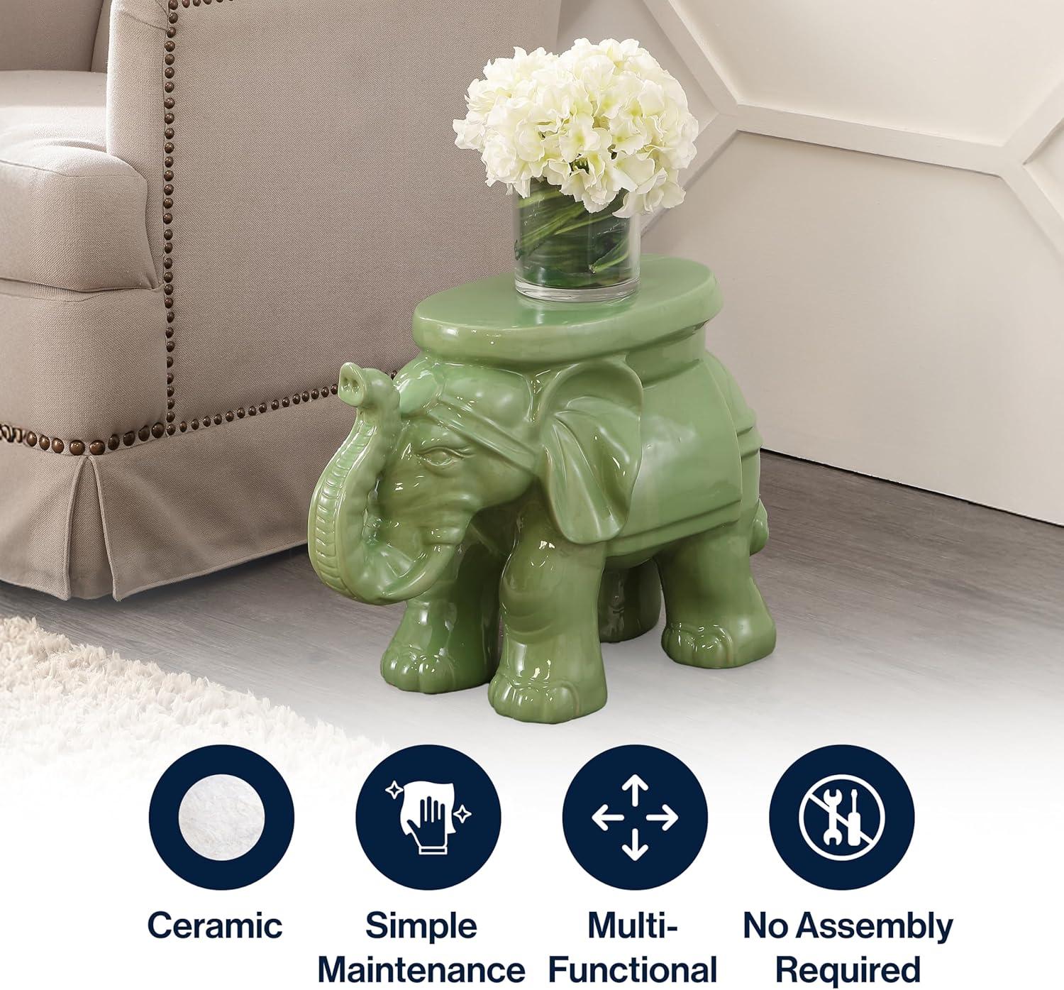 JONATHAN Y TBL1007C White Elephant 14.25″ Ceramic Indoor/Outdoor Garden Stool Coastal, Contemporary, Transitional, Patio, Garden Room, Bathroom, Living Room, Orange(Green)