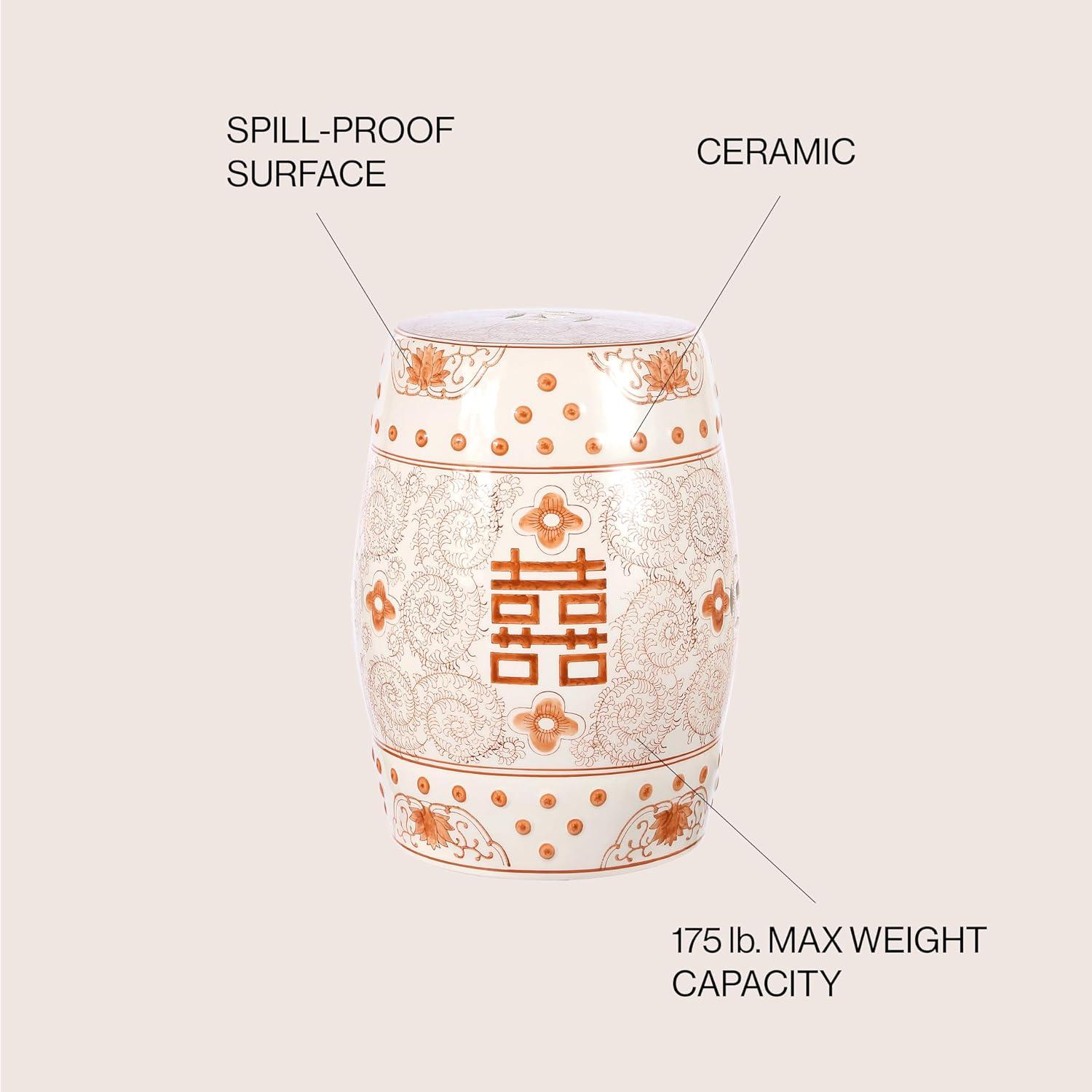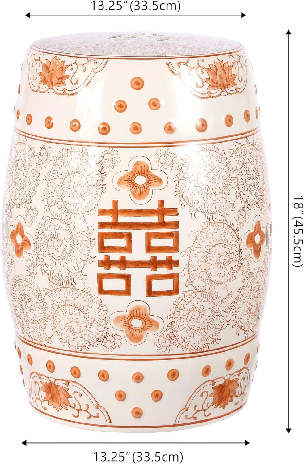 JONATHAN Y TBL1013B Double Happiness 18″ Chinoiserie Ceramic Drum Indoor/Outdoor Garden Stool Bohemian, Coastal, Classic, Cottage,Traditional, Patio, Garden, Bathroom, Living Room, Yellow/White(Orange/White)