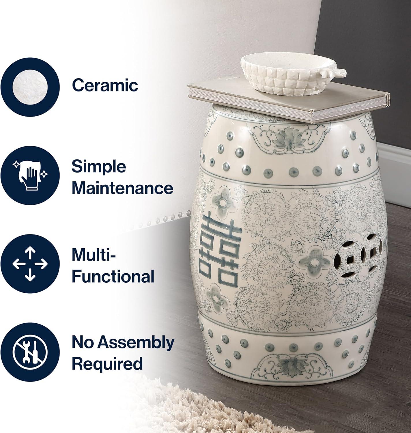 JONATHAN Y TBL1013B Double Happiness 18″ Chinoiserie Ceramic Drum Indoor/Outdoor Garden Stool Bohemian, Coastal, Classic, Cottage,Traditional, Patio, Garden, Bathroom, Living Room, Yellow/White(Gray Blue/White)