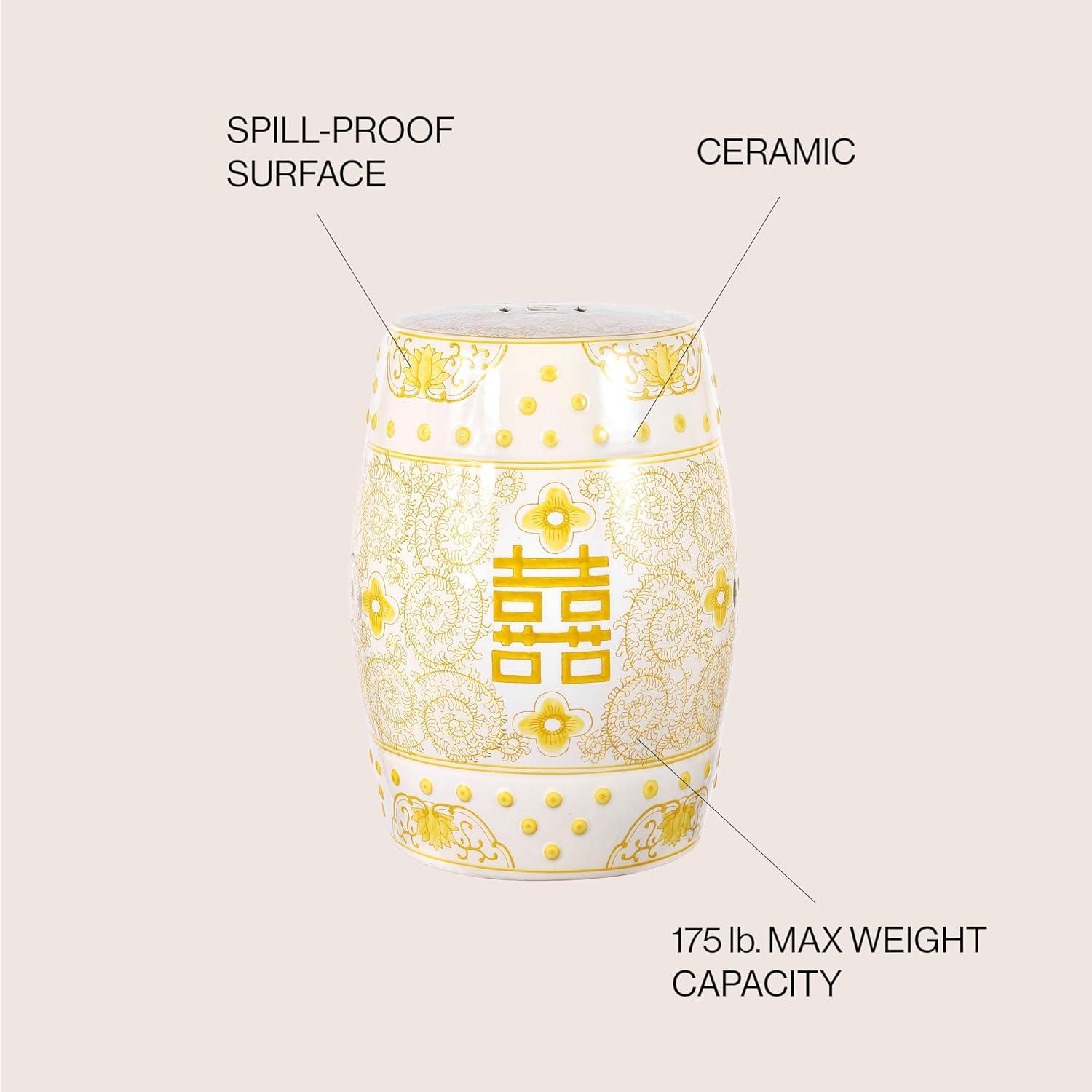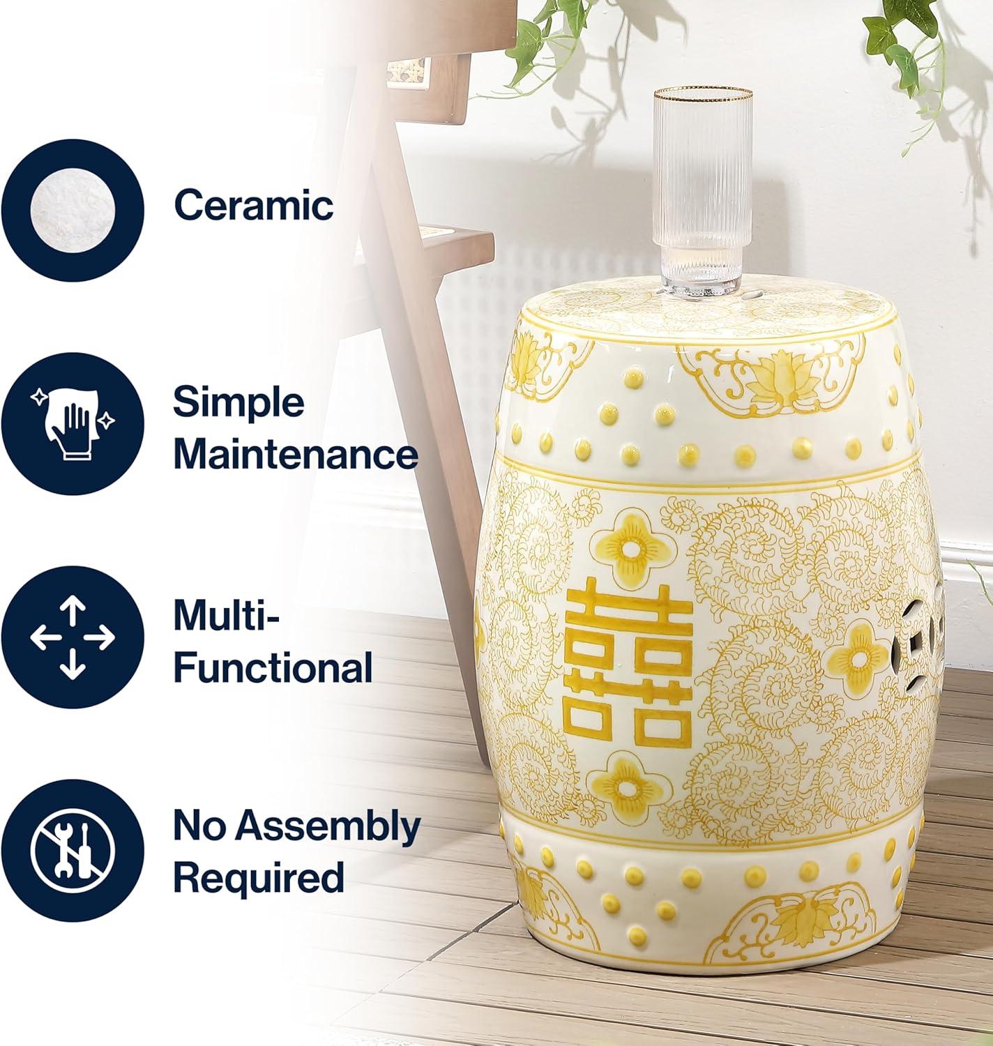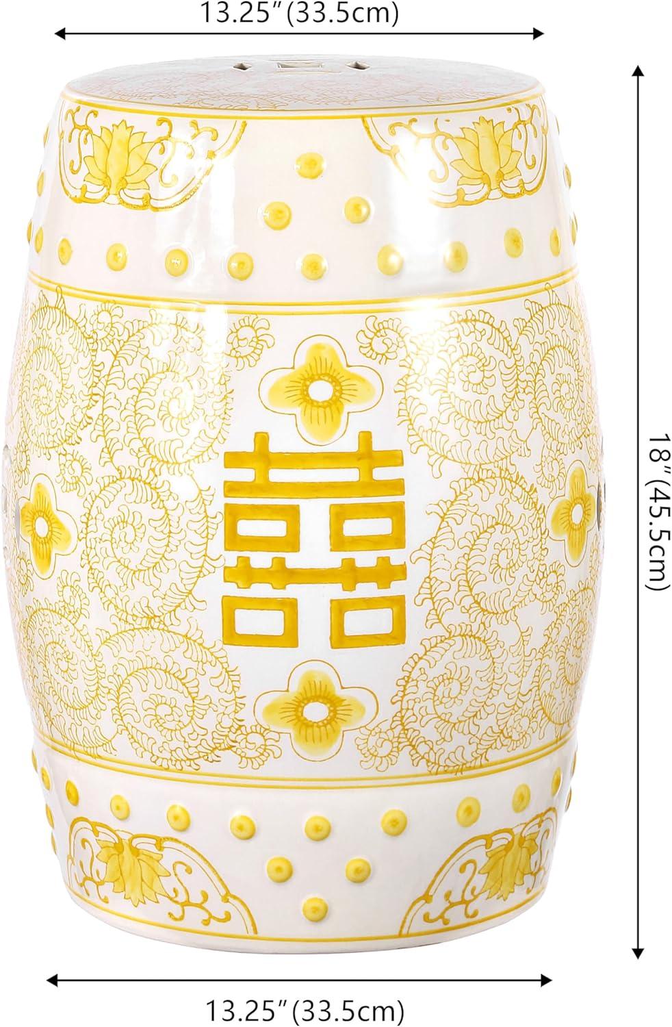 JONATHAN Y TBL1013B Double Happiness 18″ Chinoiserie Ceramic Drum Indoor/Outdoor Garden Stool Bohemian, Coastal, Classic, Cottage,Traditional, Patio, Garden, Bathroom, Living Room, Yellow/White(Yellow/White)