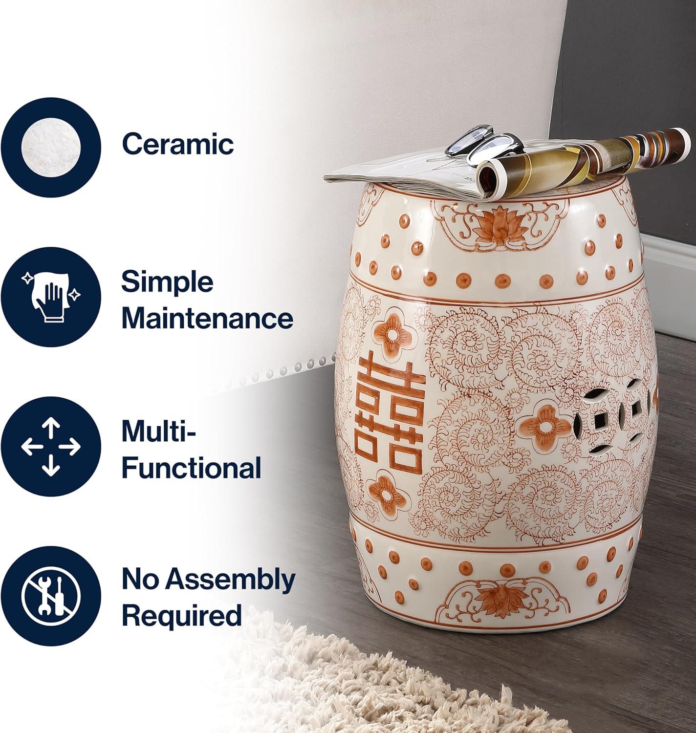 - Get the JONATHAN Y TBL1013B Double Happiness 18" Chinoiserie Ceramic Drum Indoor/Outdoor Garden Stool Bohemian, Coastal, Classic, Cottage,Traditional, Patio, Garden, Bathroom, Living Room, Yellow/White(Orange/White) you want at a discounted price during our markdown sale event.