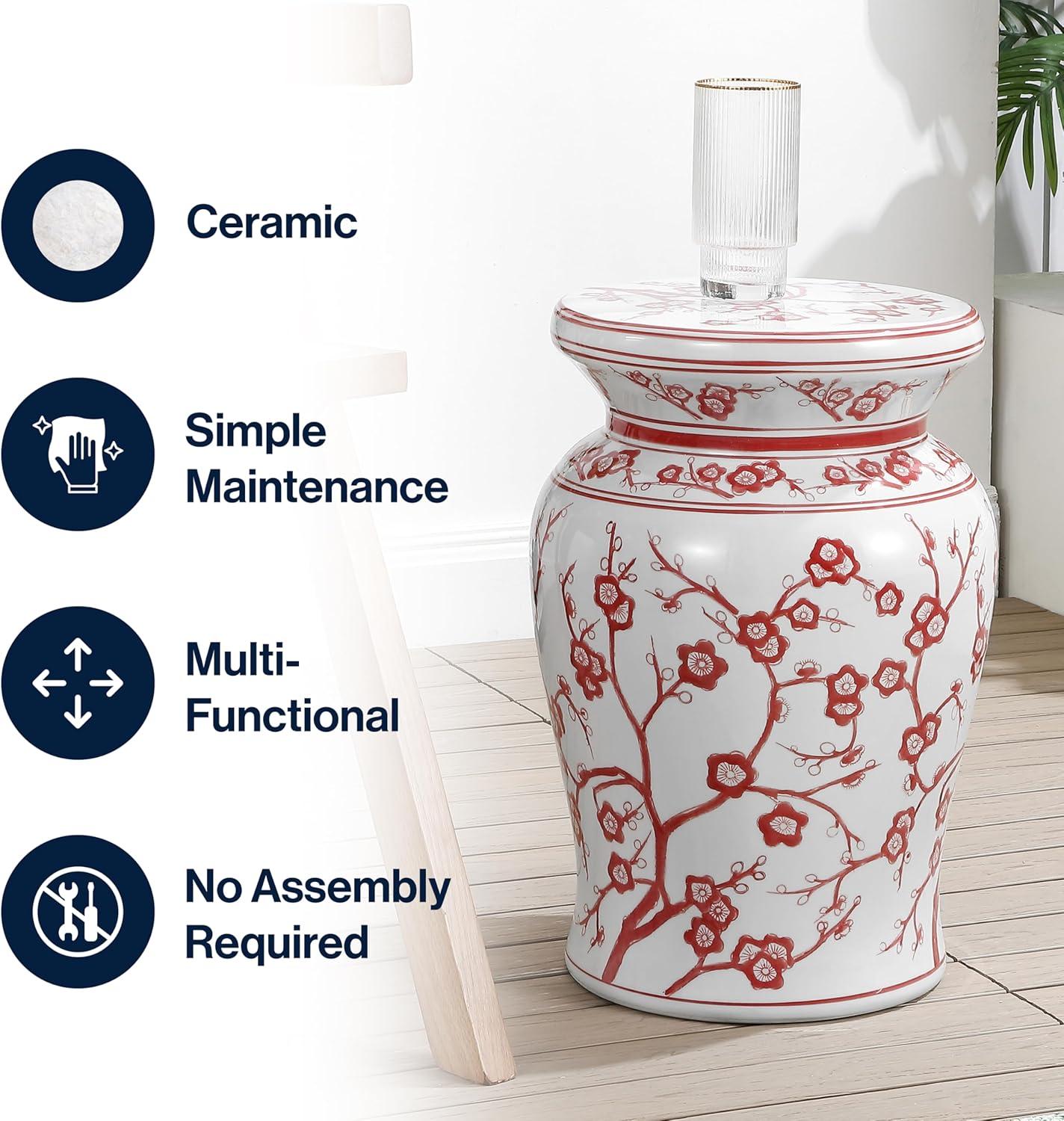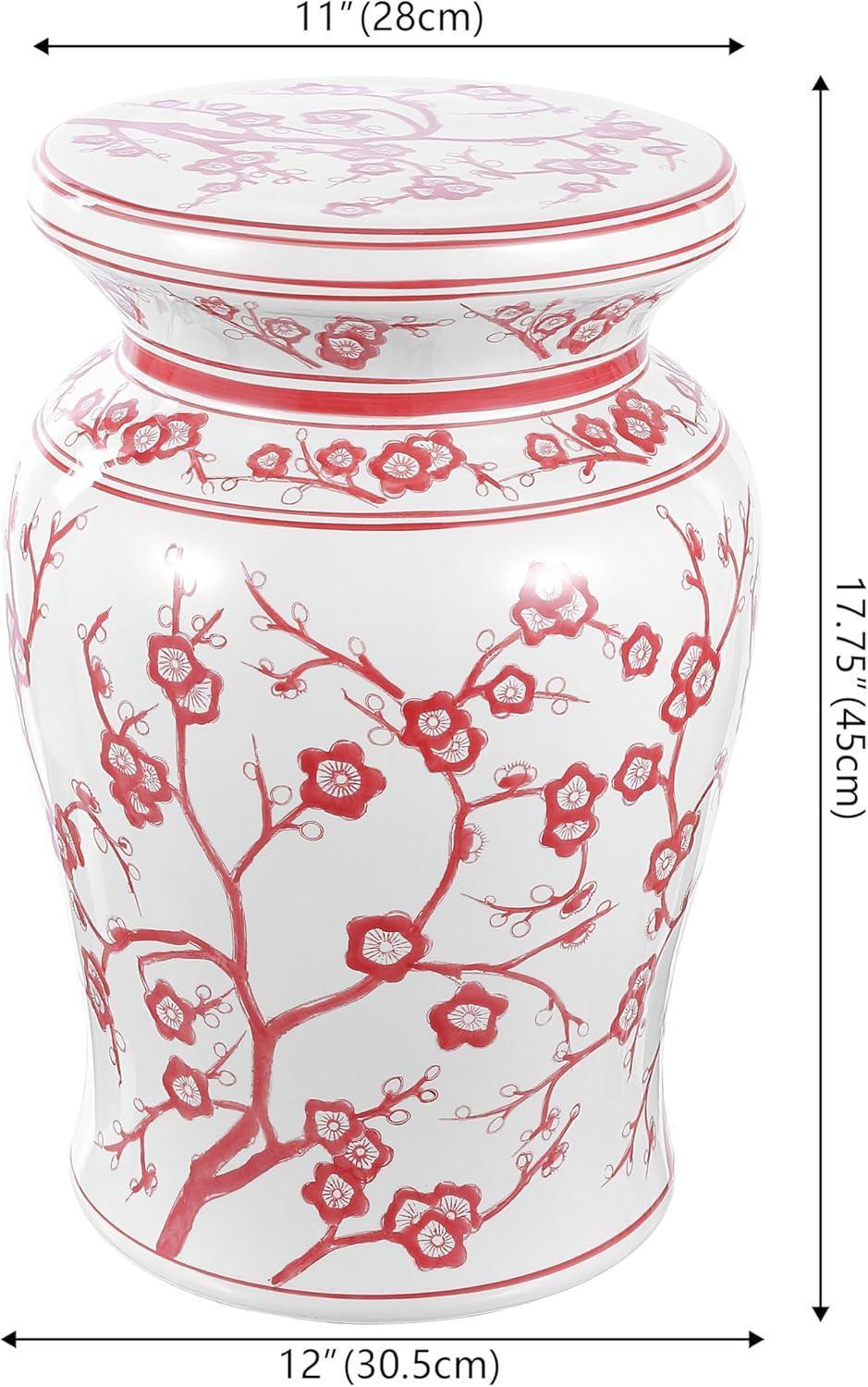 JONATHAN Y TBL1016A Cherry Blossom 17.7″ Ceramic Indoor/Outdoor Garden Stool, Coastal, Contemporary, Chinese Porcelain, Side Table, Plant Stand, Spill-Proof, Living Room, Garden Room,Patio, White/Blue(White/Red)