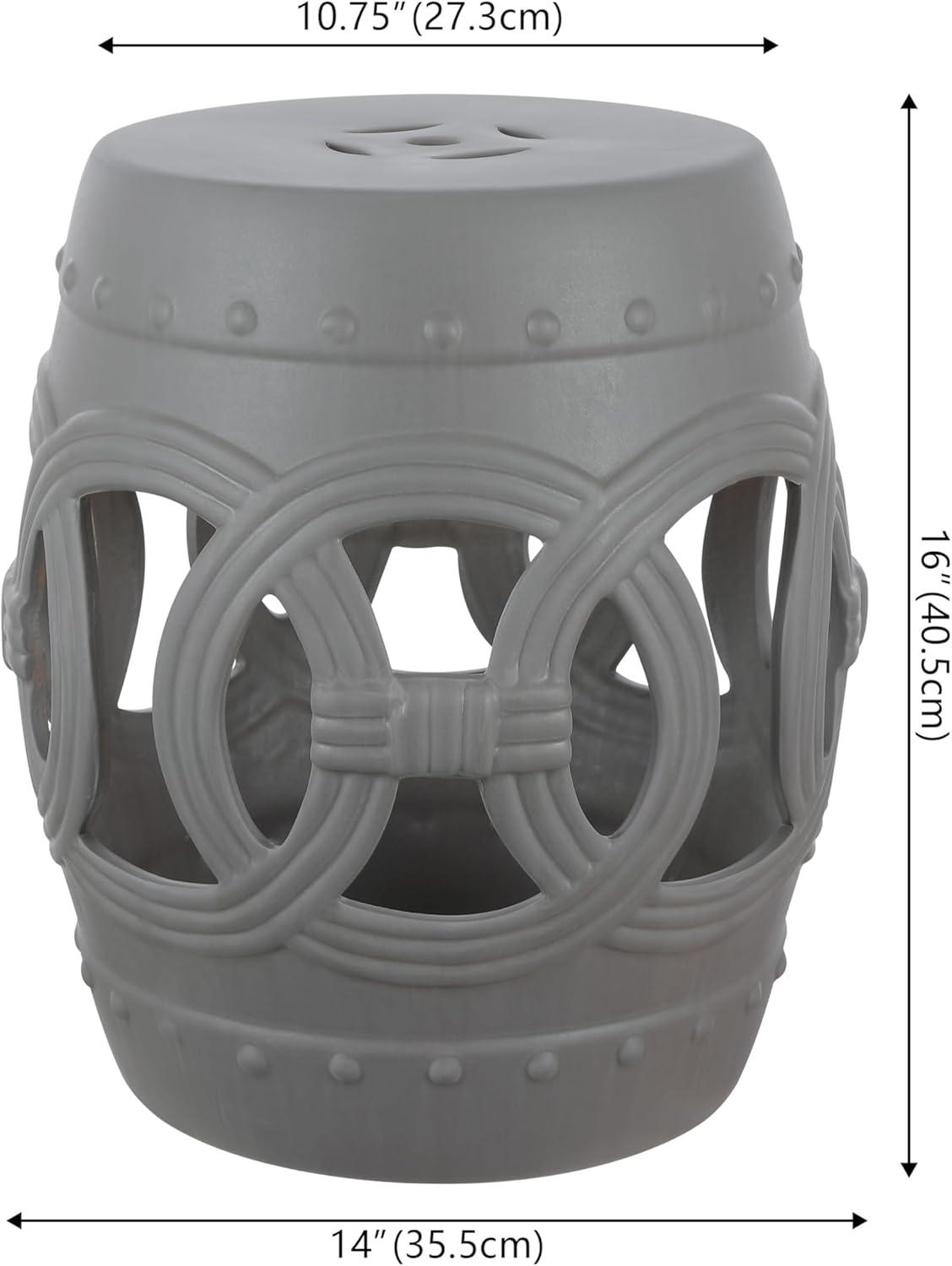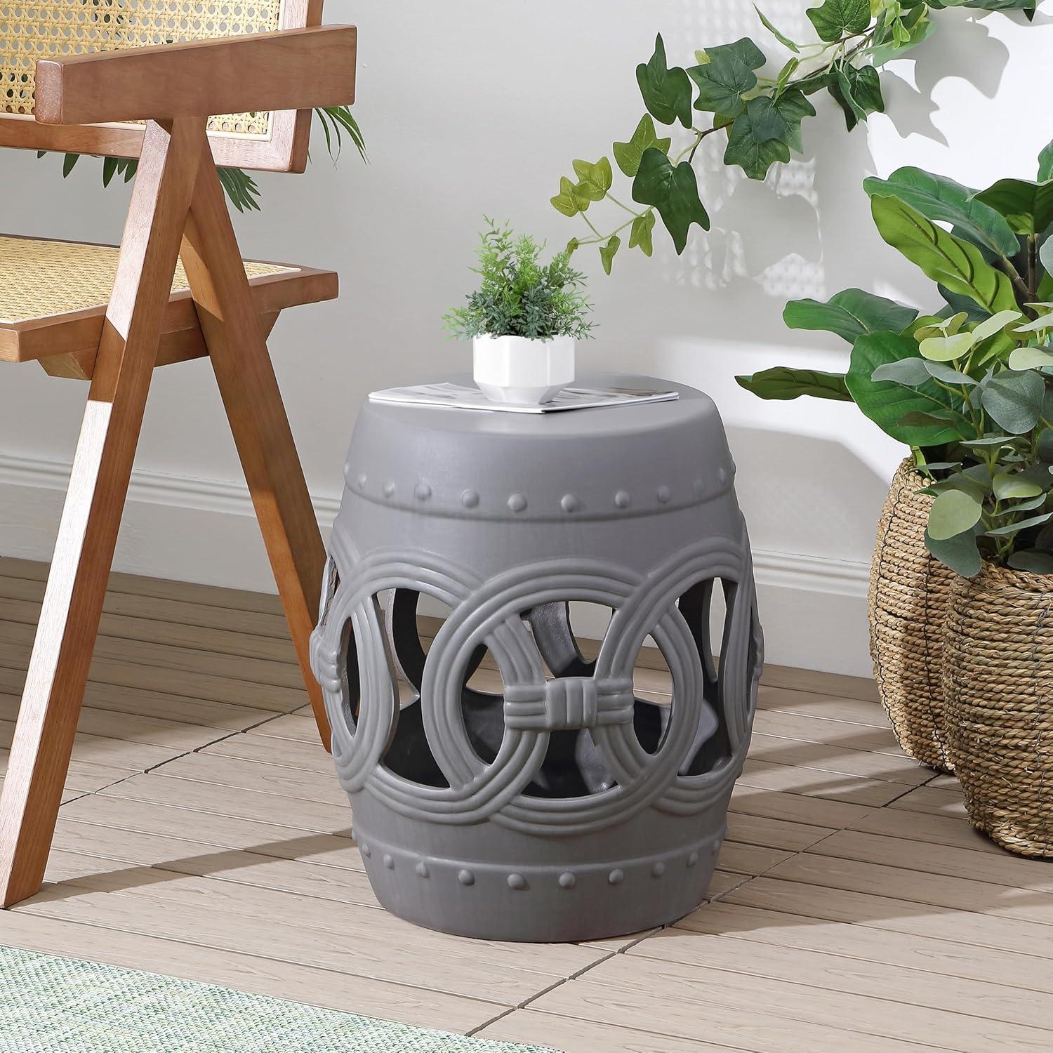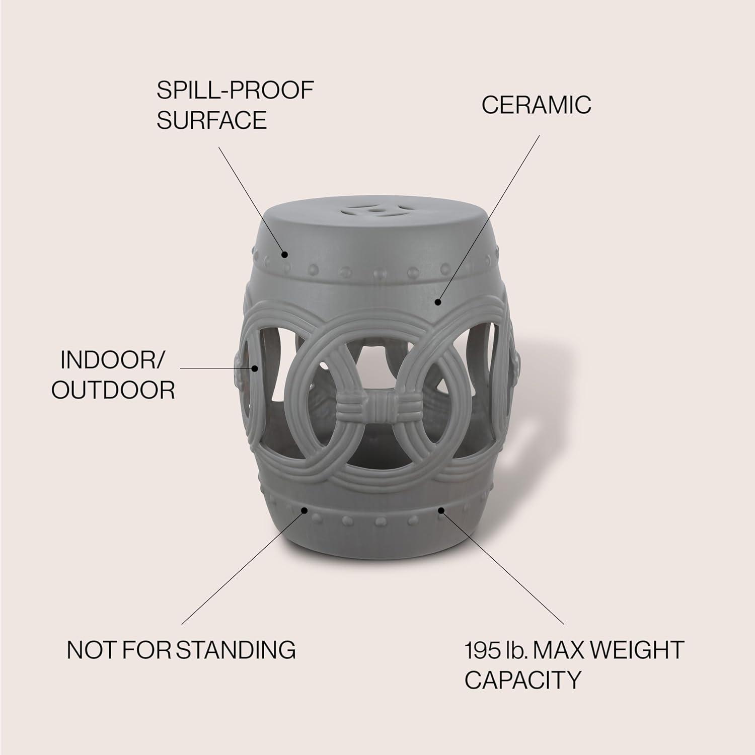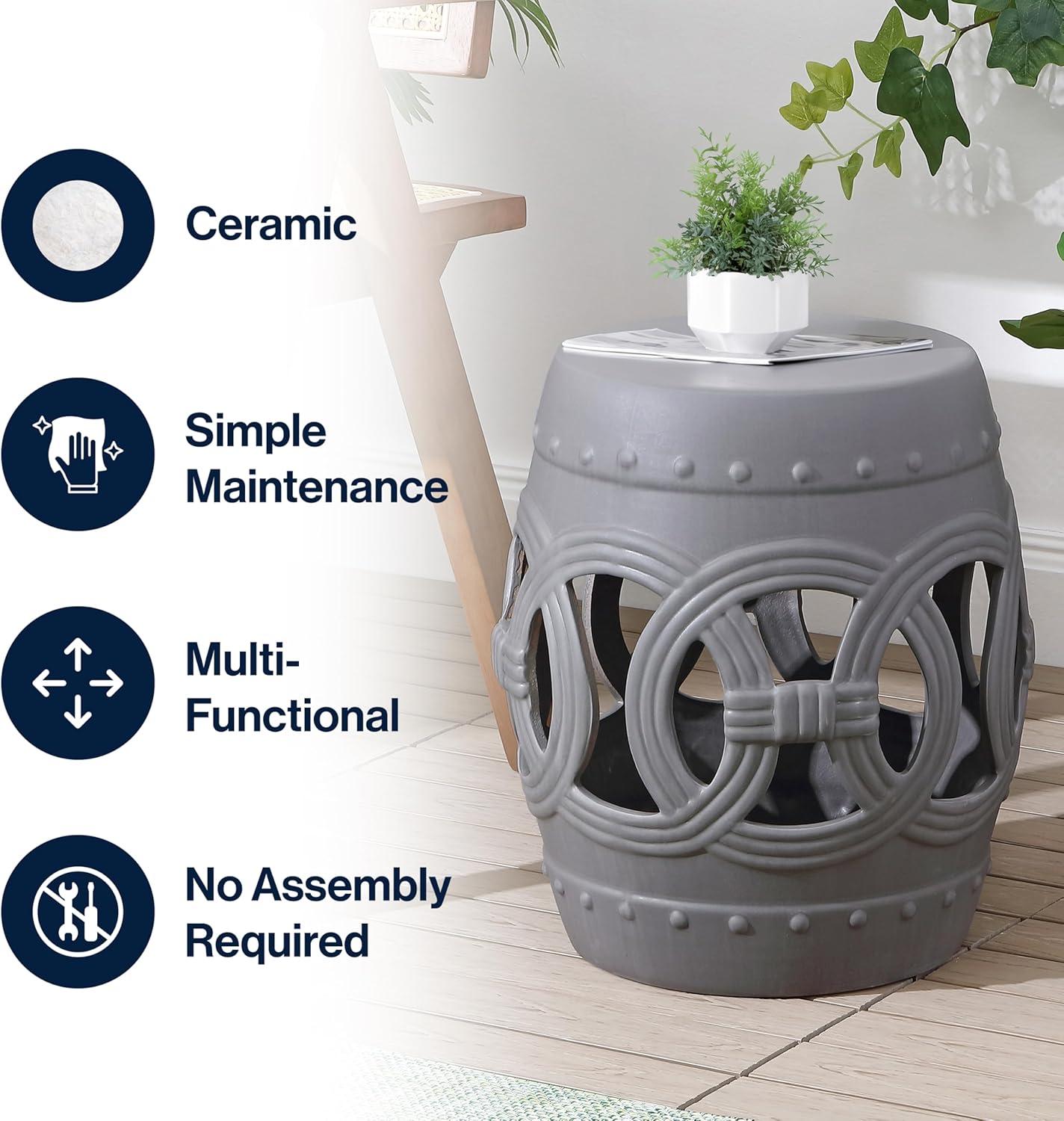JONATHAN Y TBL1027A Lucky Coins 16″ Chinese Ceramic Drum Indoor/Outdoor Garden Stool Bohemian, Coastal, Classic, Cottage, French Country, Patio, Garden Room, Bathroom, Living Room, Blue/White(Matte Gray)