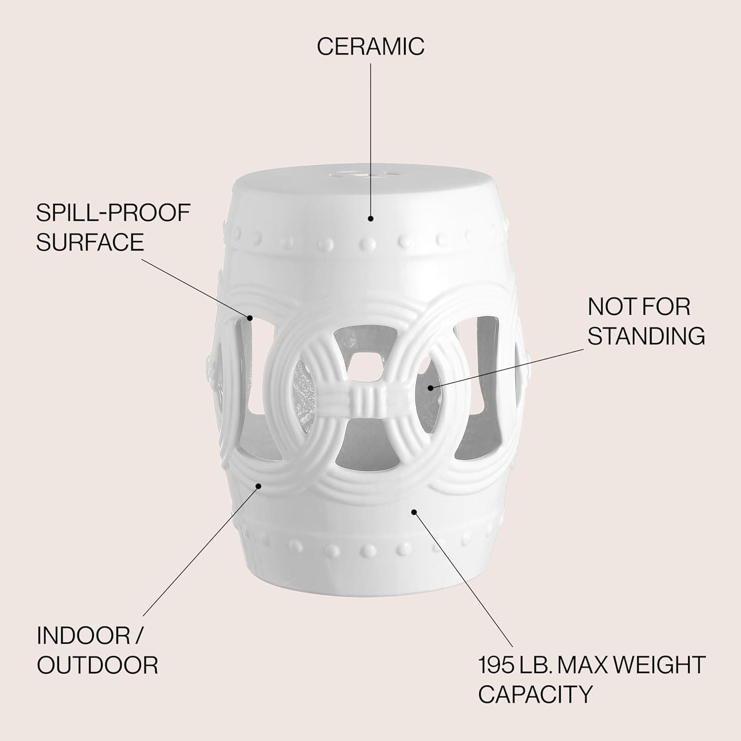 JONATHAN Y TBL1027A Lucky Coins 16″ Chinese Ceramic Drum Indoor/Outdoor Garden Stool Bohemian, Coastal, Classic, Cottage, French Country, Patio, Garden Room, Bathroom, Living Room, Blue/White(White)