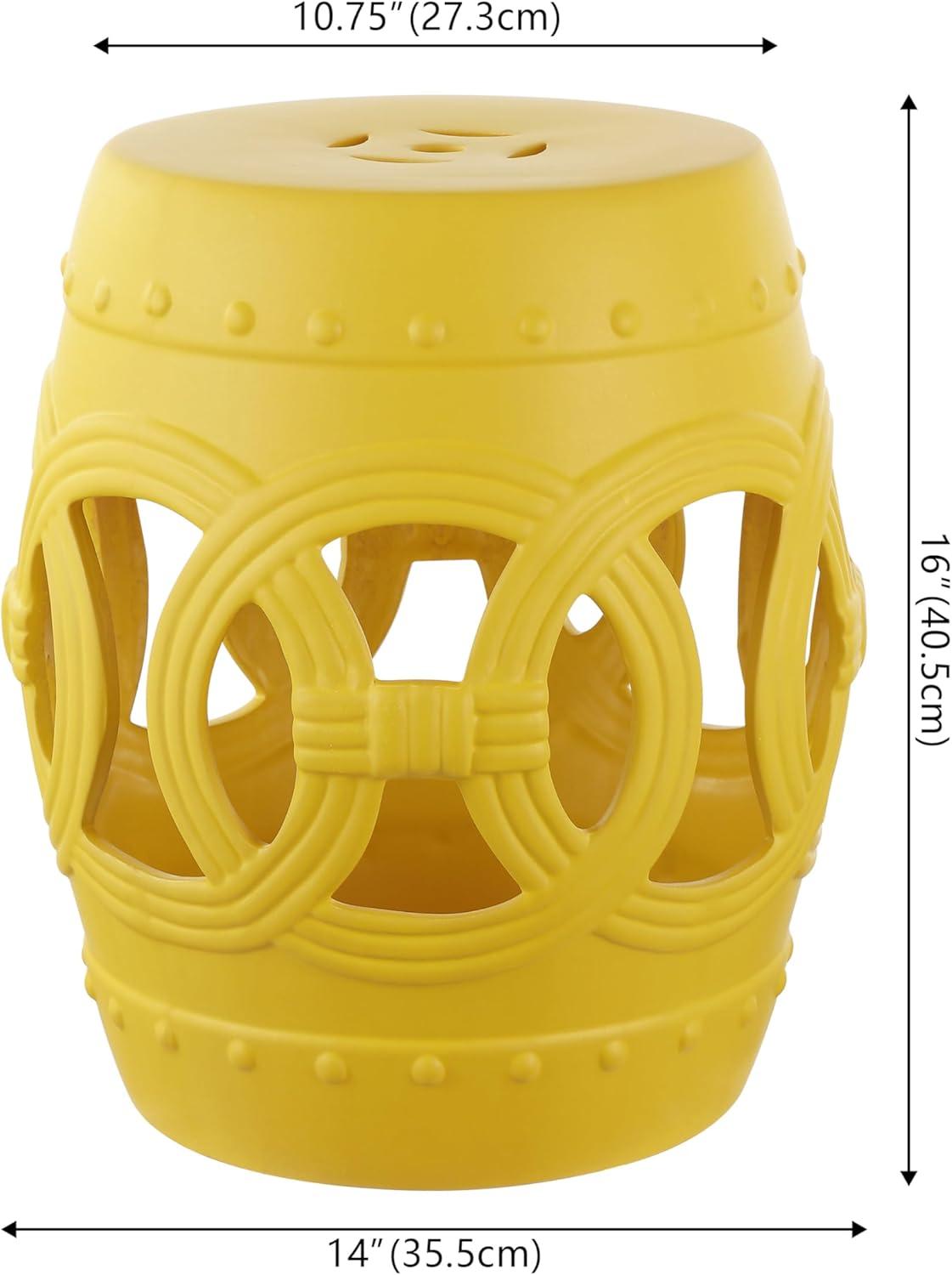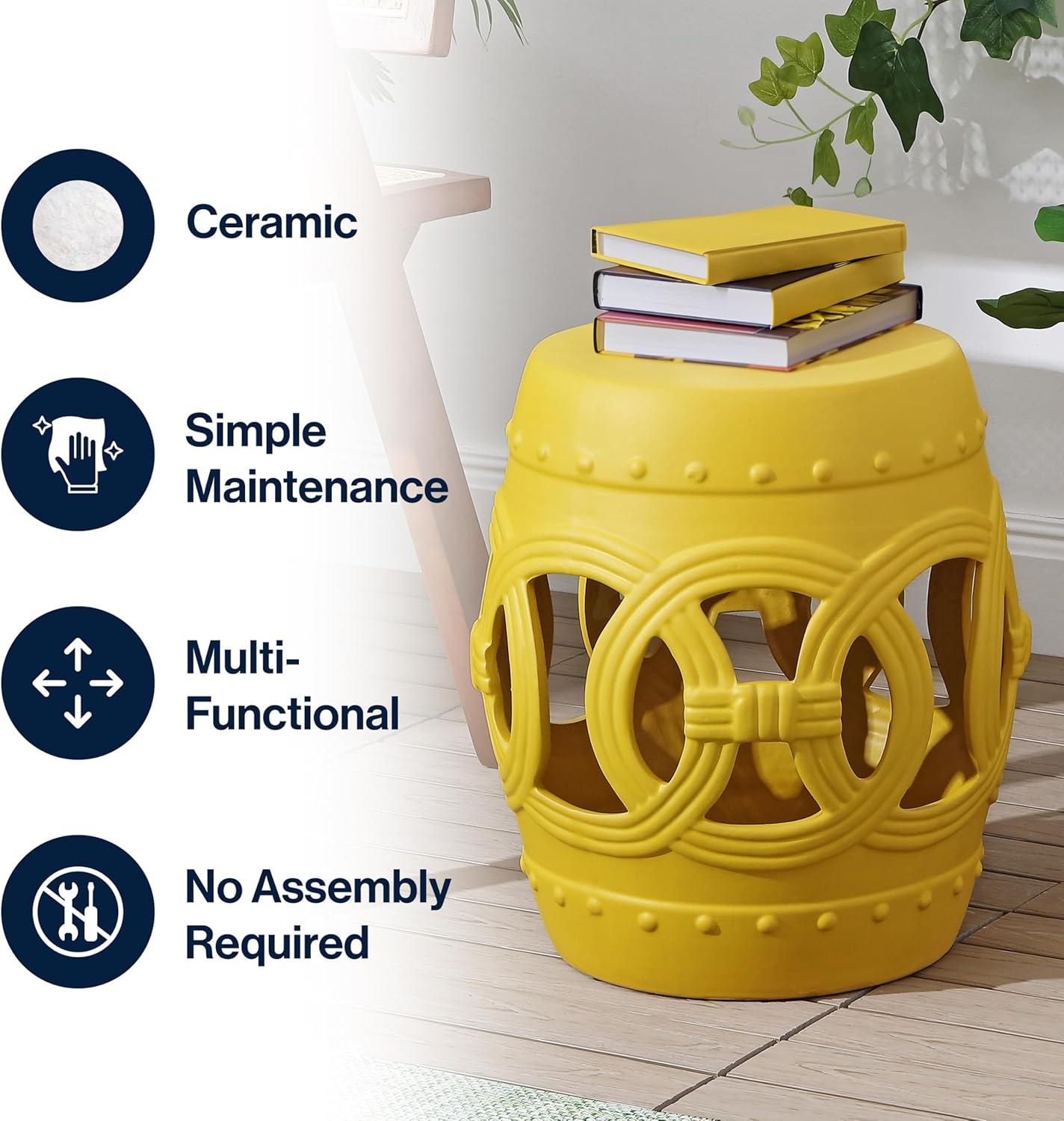 JONATHAN Y TBL1013B Double Happiness 18″ Chinoiserie Ceramic Drum Indoor/Outdoor Garden Stool Bohemian, Coastal, Classic, Cottage,Traditional, Patio, Garden, Bathroom, Living Room, Yellow/White(Yellow/White)