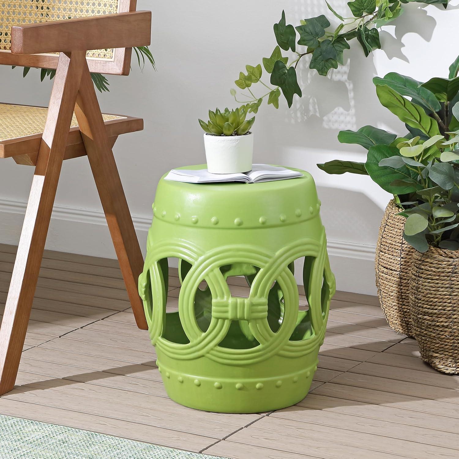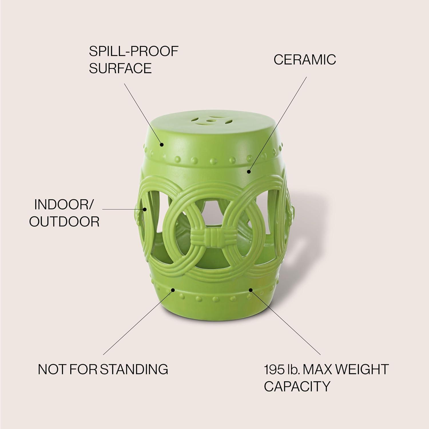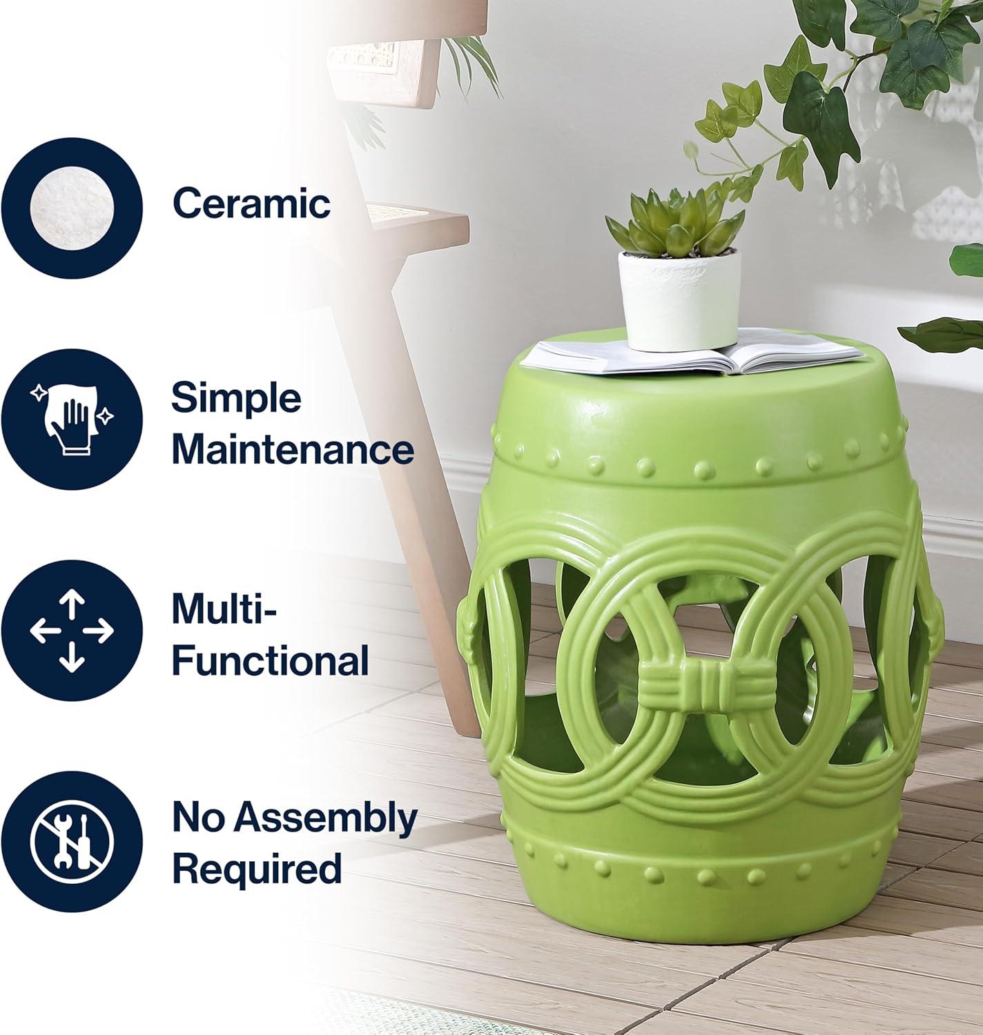 JONATHAN Y TBL1017C Cherry Blossom 17.75″ Ceramic Indoor/Outdoor Garden Stool Coastal, Contemporary, Transitional, Patio, Garden Room, Bathroom, Living Room, Green/White(Green/White)