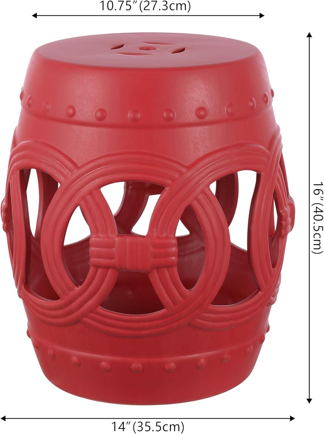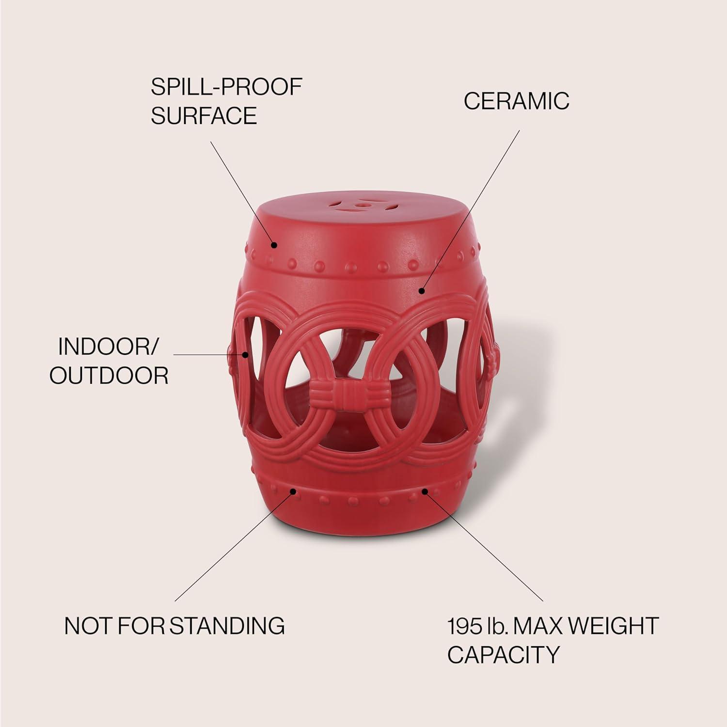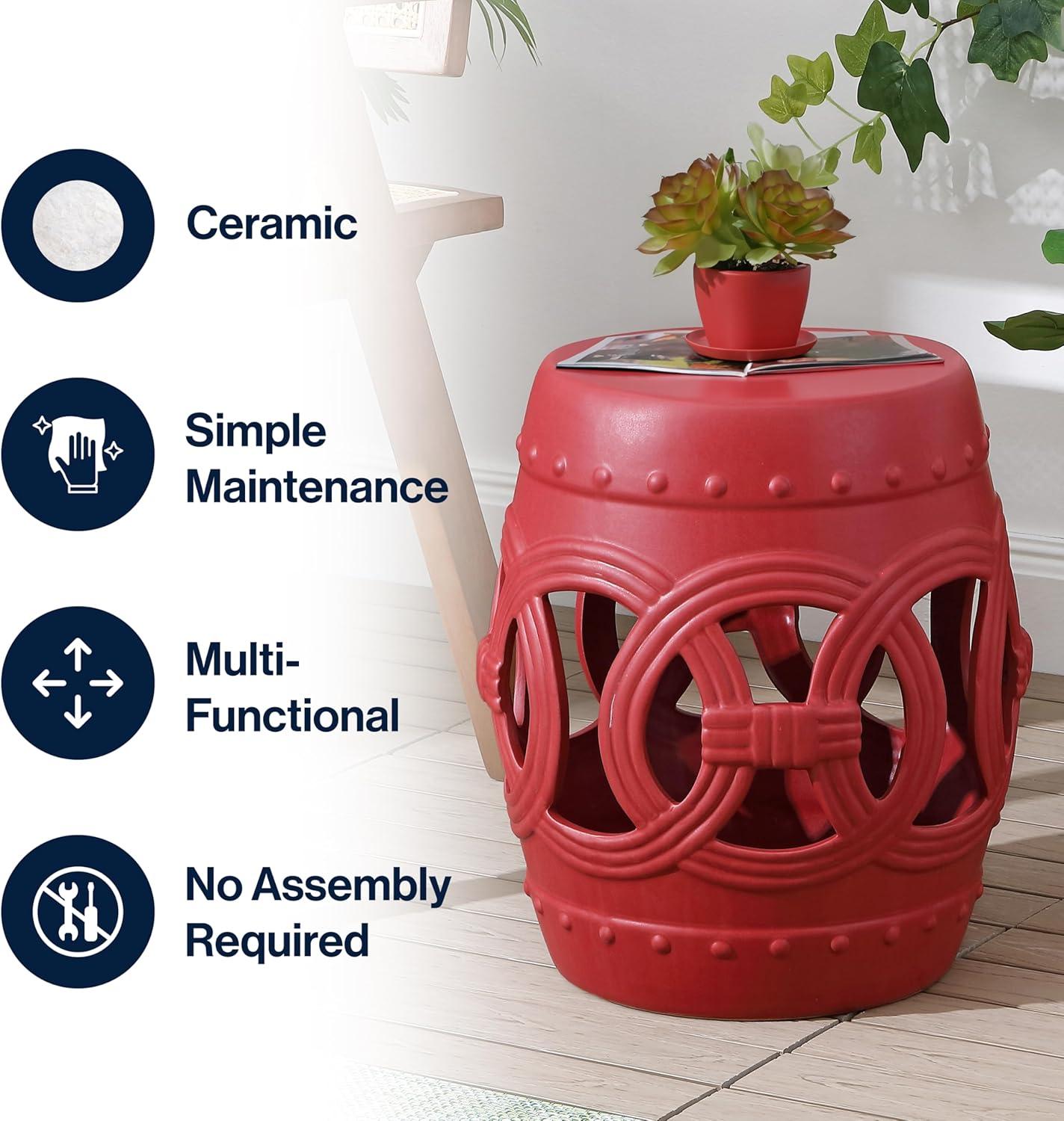 JONATHAN Y TBL1027A Lucky Coins 16″ Chinese Ceramic Drum Indoor/Outdoor Garden Stool Bohemian, Coastal, Classic, Cottage, French Country, Patio, Garden Room, Bathroom, Living Room, Blue/White(Matte Red)