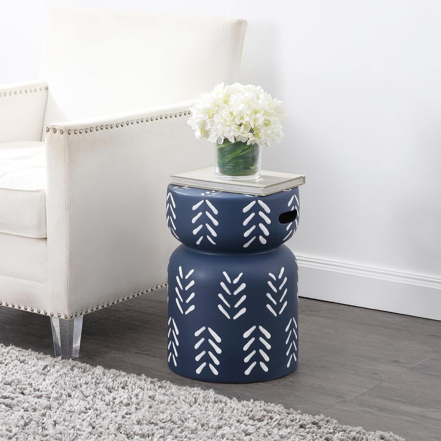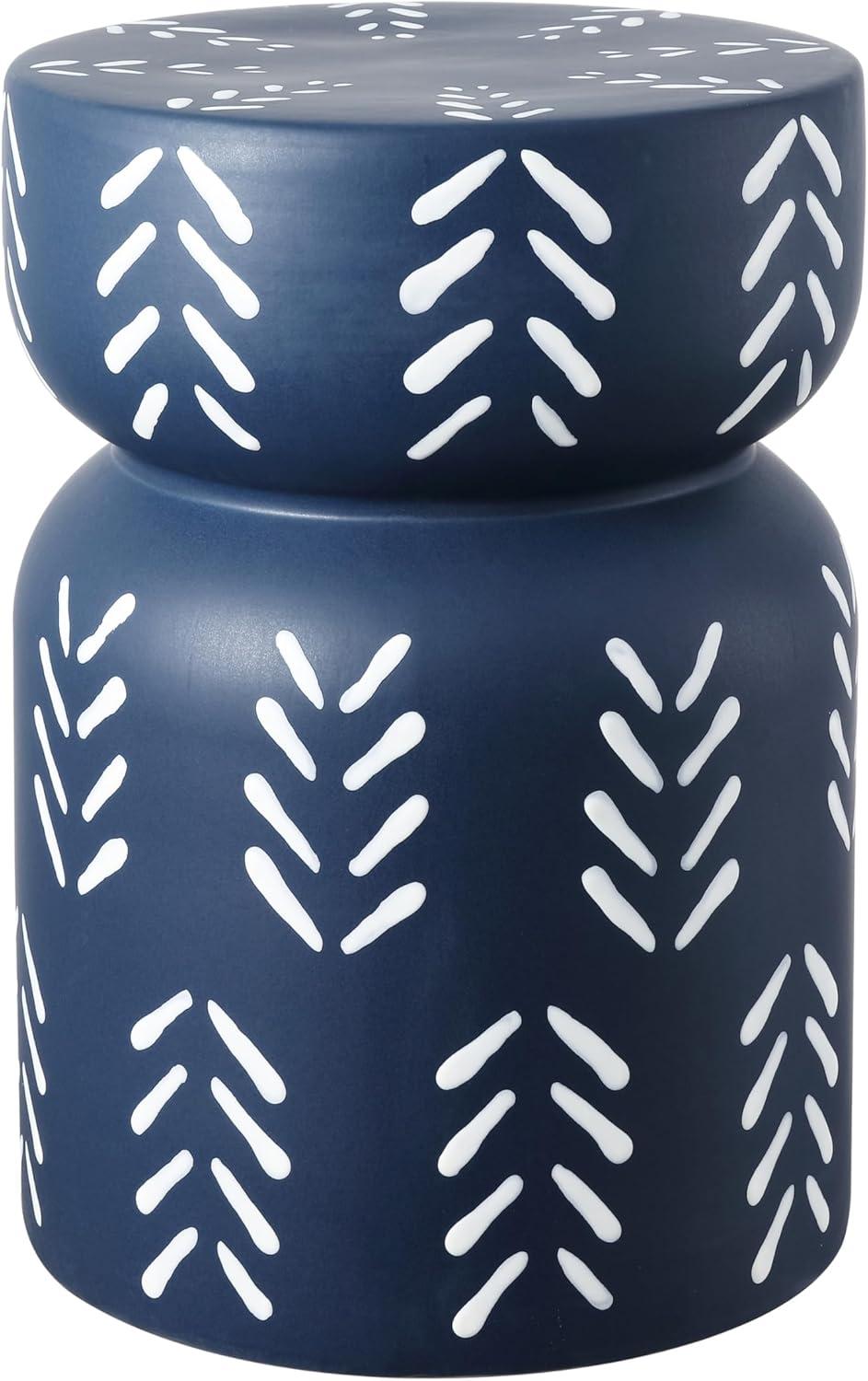 JONATHAN Y TBL1029A Kiri 18″ Modern Bohemian Arrow Pattern Drum Indoor/Outdoor Garden Stool, Navy/White