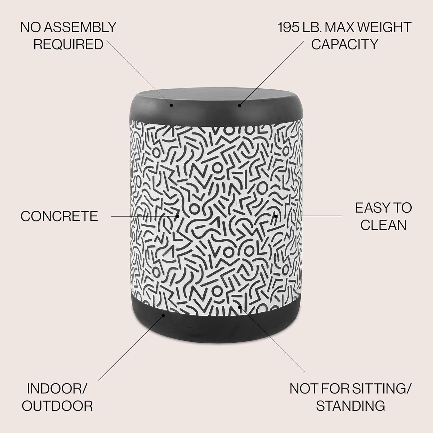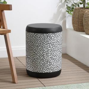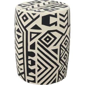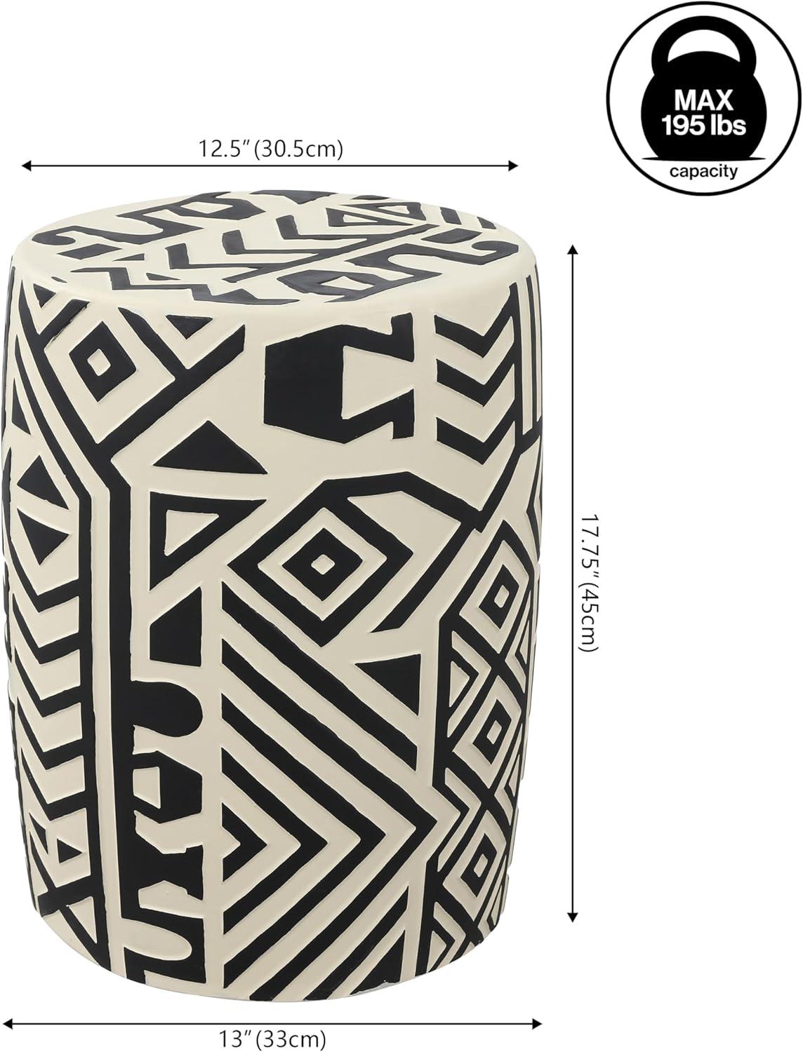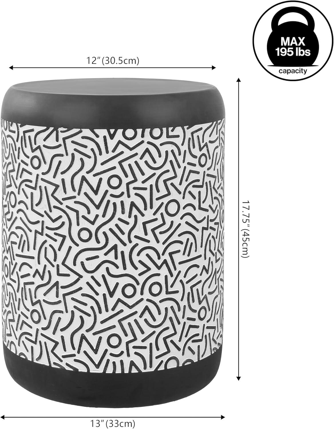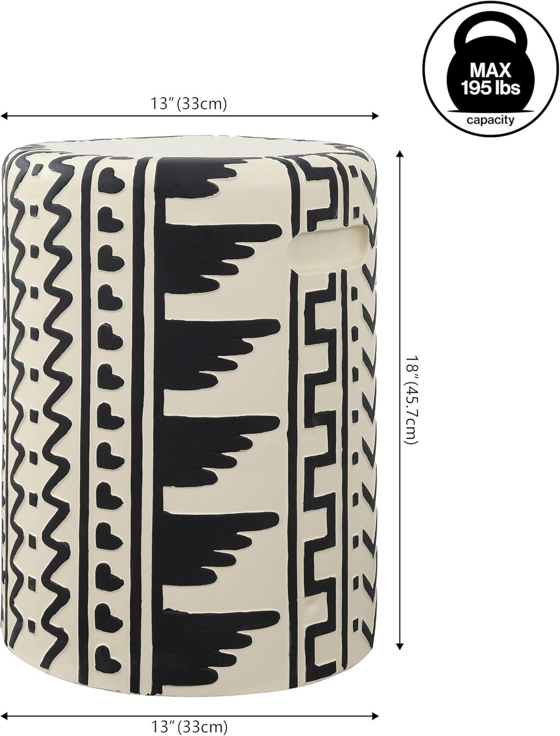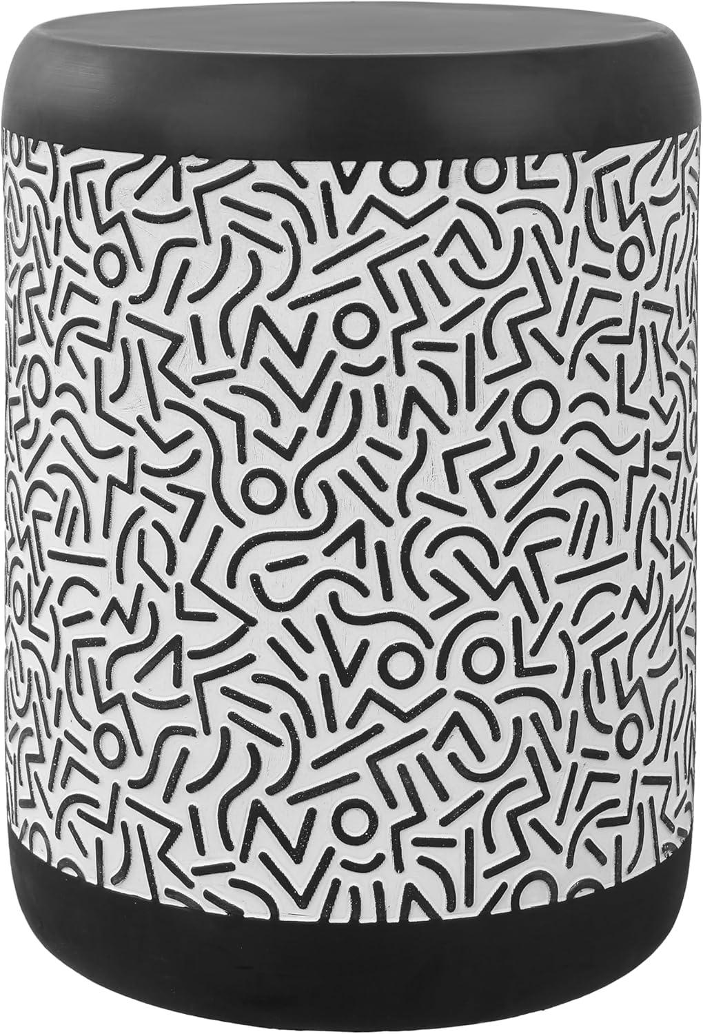 JONATHAN Y TBL1028A Indi 17.75″ Modern Bohemian Geometric Drum Garden Stool, Black/White
