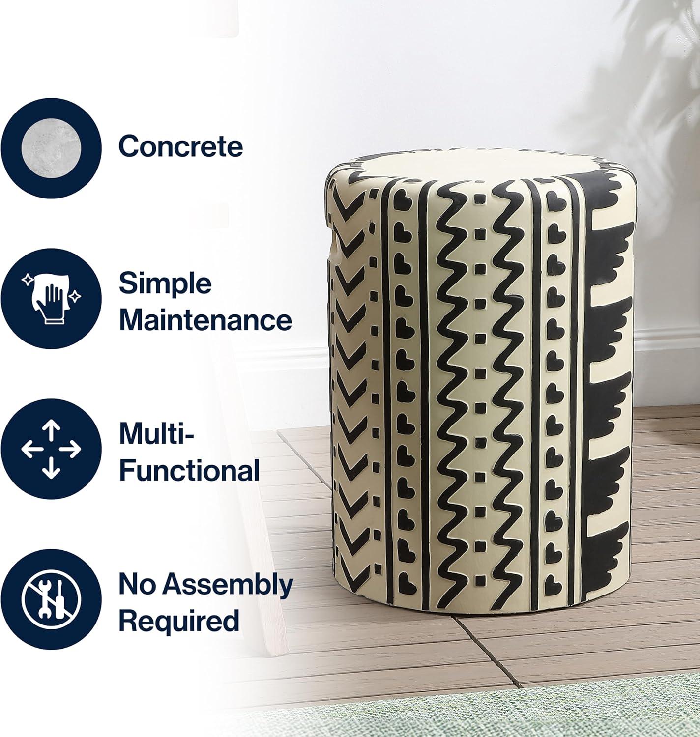 JONATHAN Y TBL1030A Rafi 17.75″ Transitional Bohemian Geometric Drum Garden Stool, Cream for Patio, Porch, Backyard(Black/Cream)