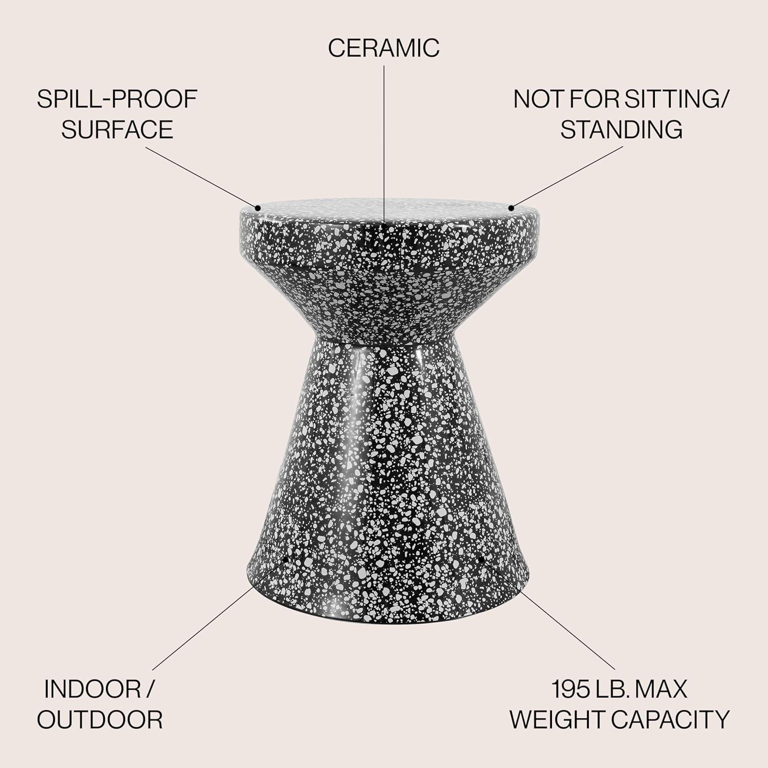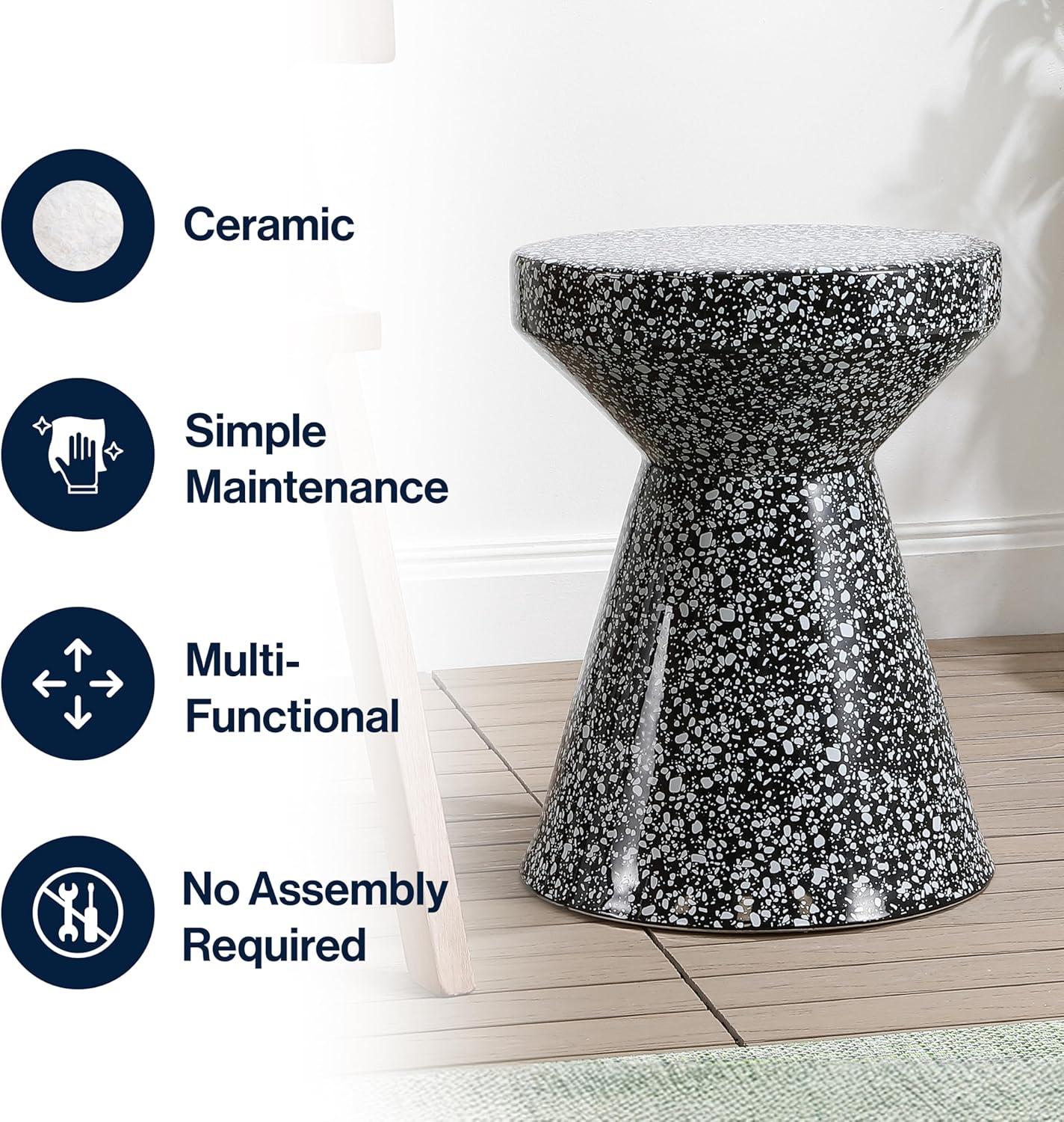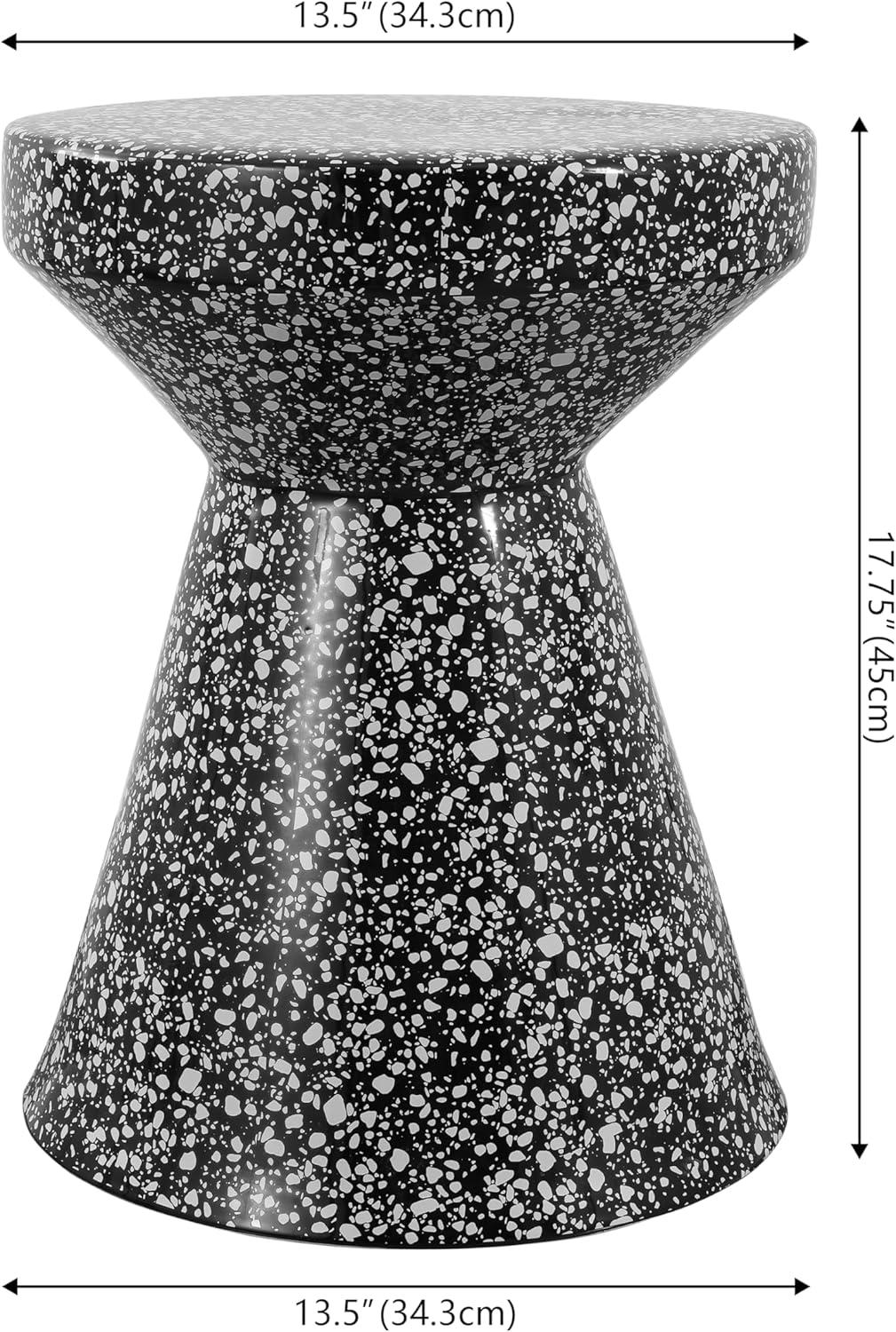 JONATHAN Y TBL1032A Xenia 17.75″ Modern Bohemian Terrazzo Indoor/Outdoor Drum Accent Table, Multi for Patio, Porch, Backyard(Black/White)